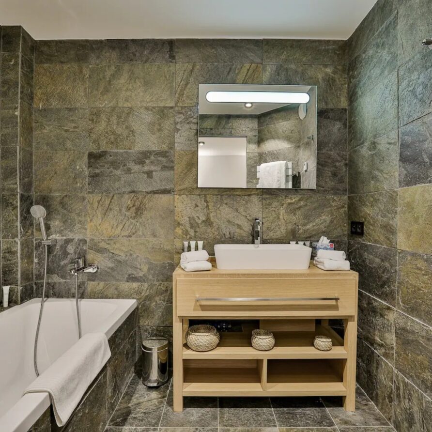 Luxury Chalet Annecy with pool features a great selection of rejuvenating wellness facilities to ensure you fully unwind on your luxury holiday. Refresh yourself in the indoor swimming pool with jet stream, or relax in the sauna after a long day. Alternatively, guests can take part in a spot of yoga or a spin class by streaming their preferred class on the in-mirror TV.