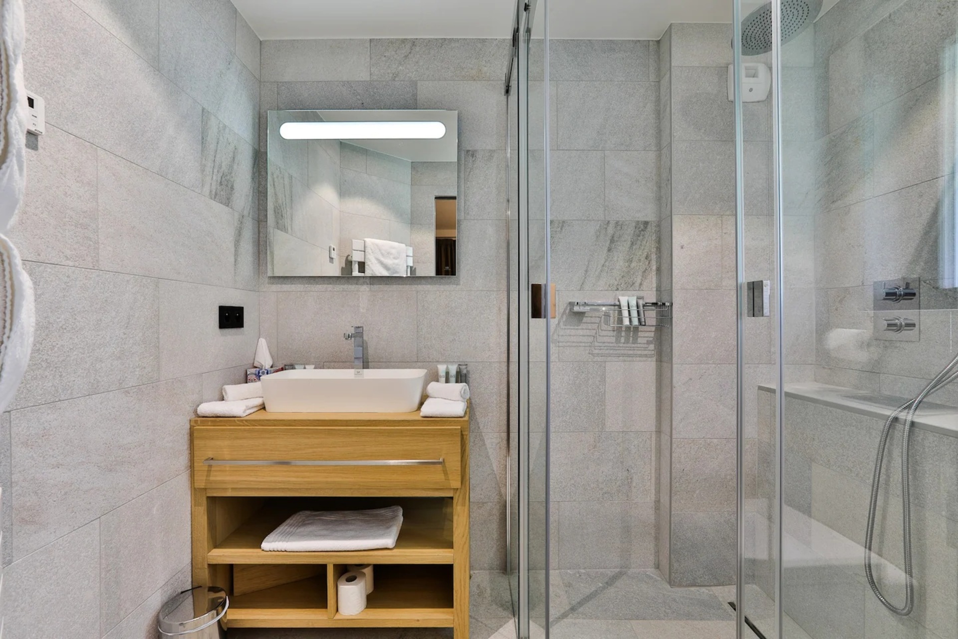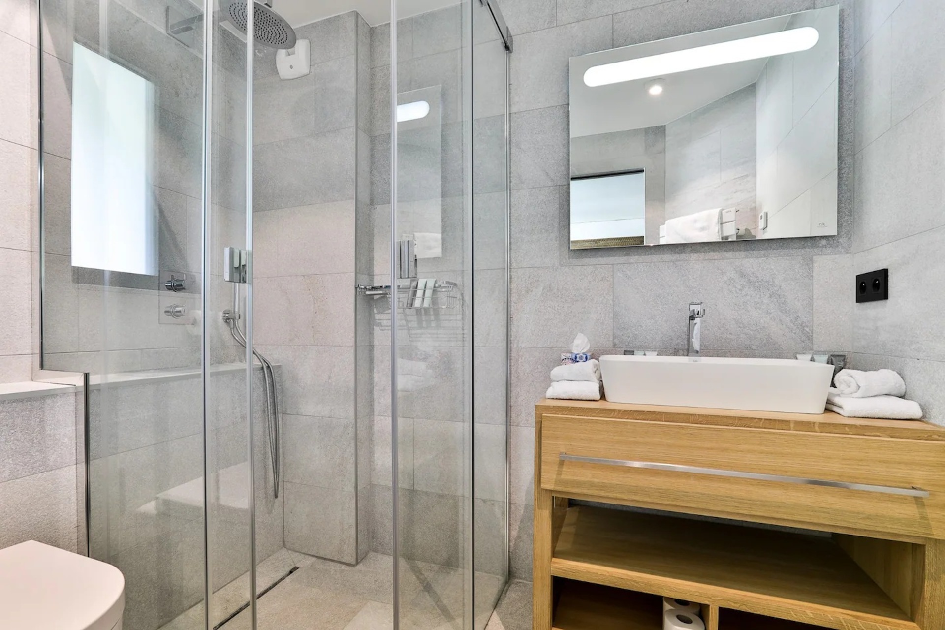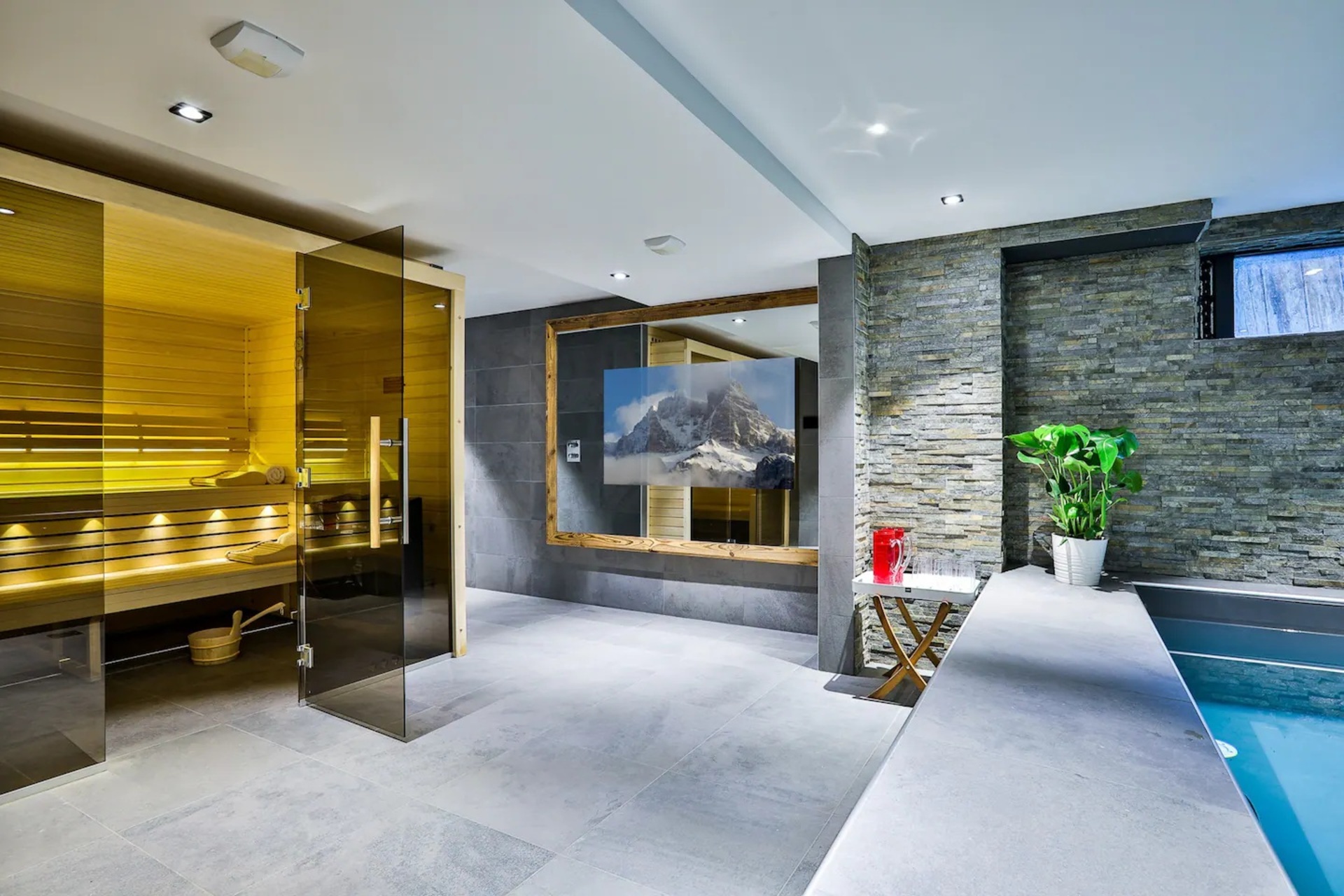 Luxury Chalet Annecy with pool features a great selection of rejuvenating wellness facilities to ensure you fully unwind on your luxury holiday. Refresh yourself in the indoor swimming pool with jet stream, or relax in the sauna after a long day. Alternatively, guests can take part in a spot of yoga or a spin class by streaming their preferred class on the in-mirror TV.