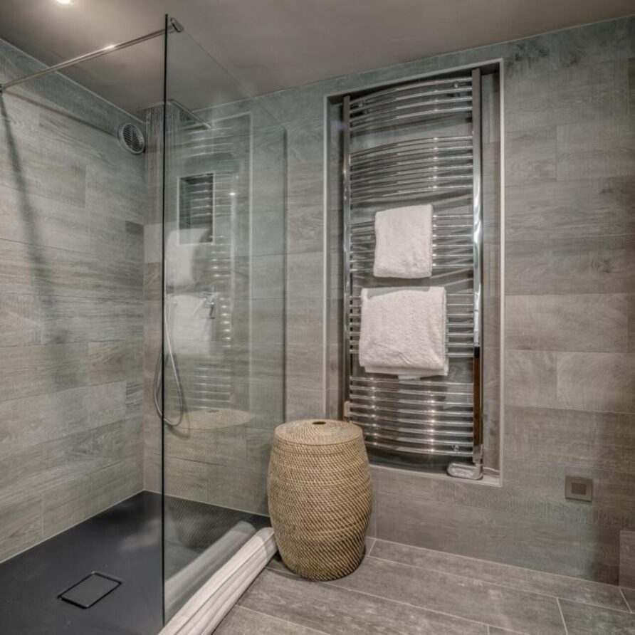 The spa area is located on the middle floor of the chalet with floor to ceiling glass windows; it comprises of a sunken Jacuzzi complete with stepping stones. There is a further relaxation zone to enjoy the sweeping valley views.