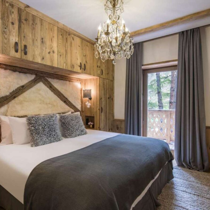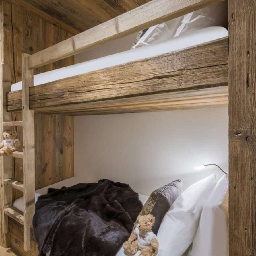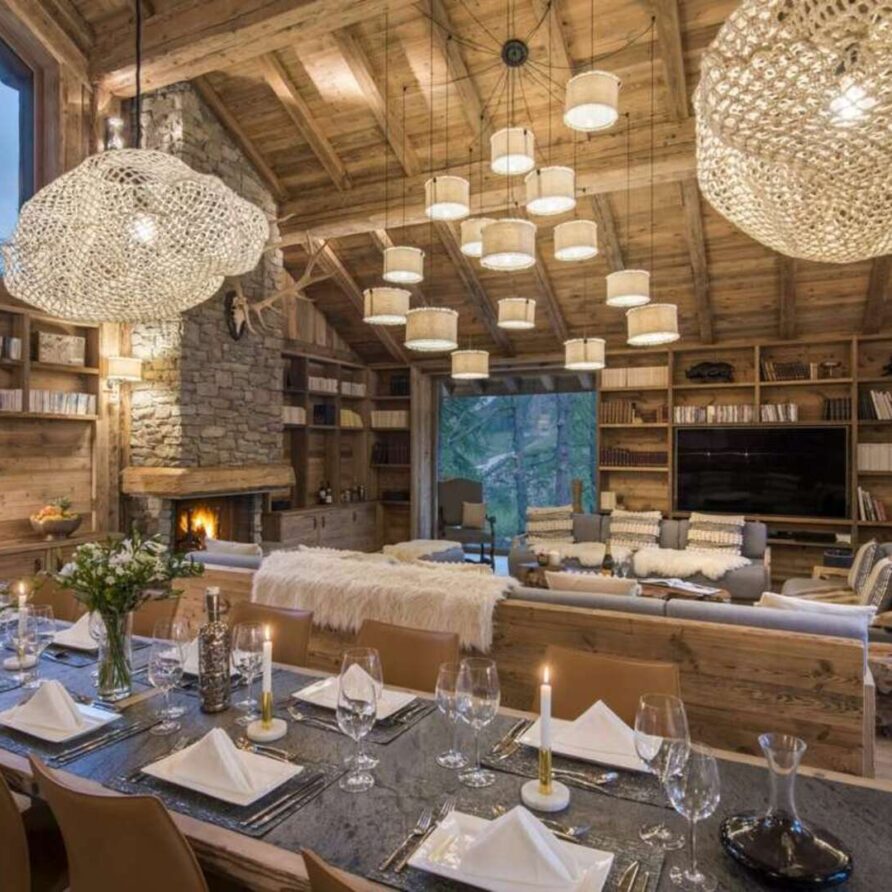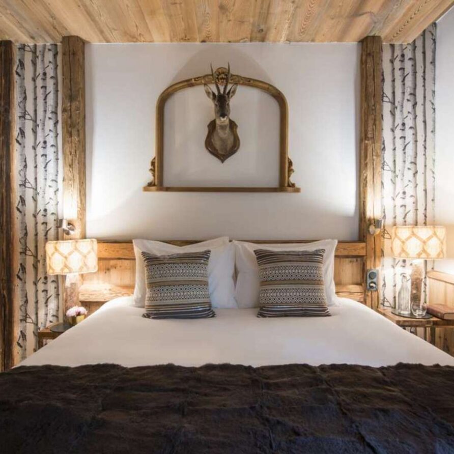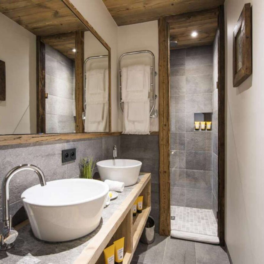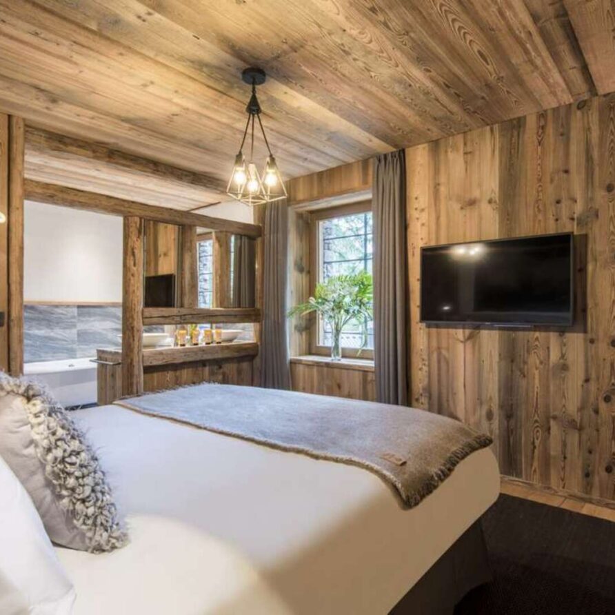This outstanding large-group luxury chalet with spa is the perfect mix of opulence, elegance, tradition, tech and cutting-edge design. This six-bedroom property can accommodate 12 guests, two youngsters in a dedicated children’s room. The setting is superb: a short drive to the facilities of the village but very private with a woodland setting and fantastic views.