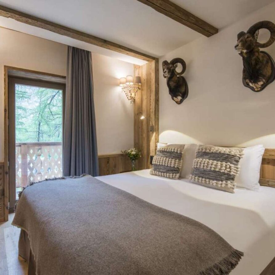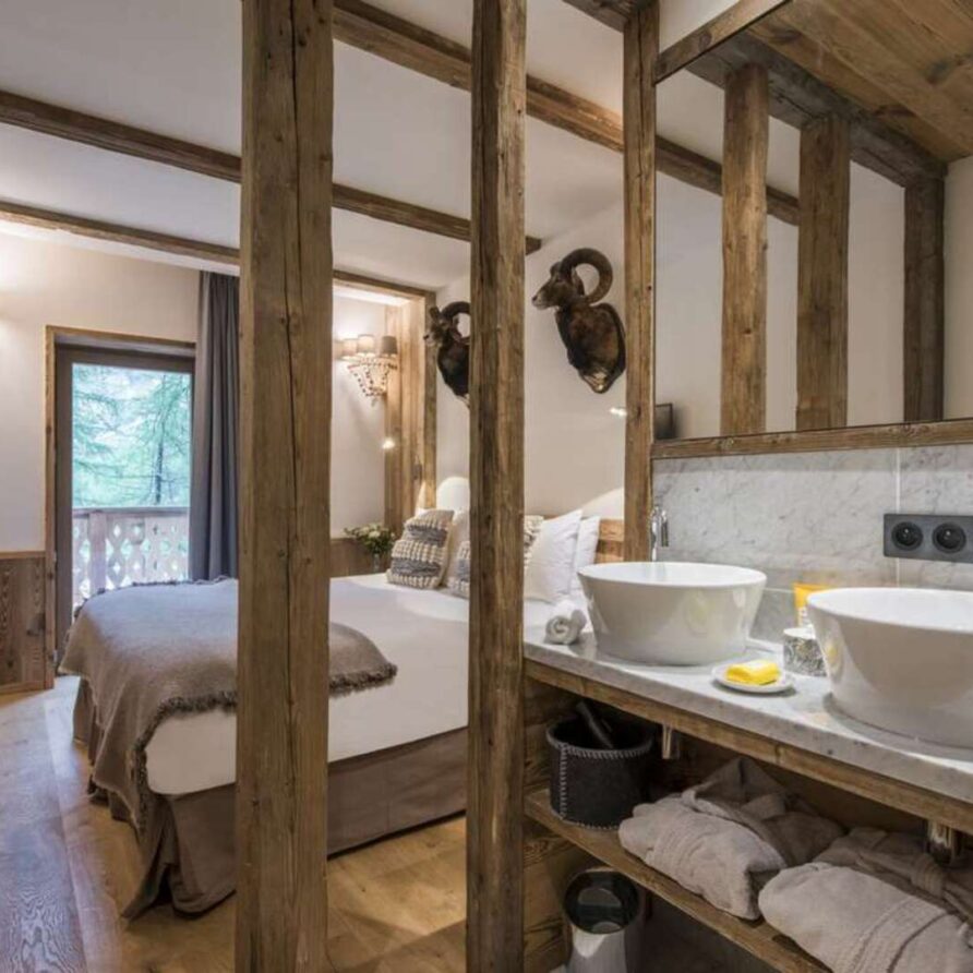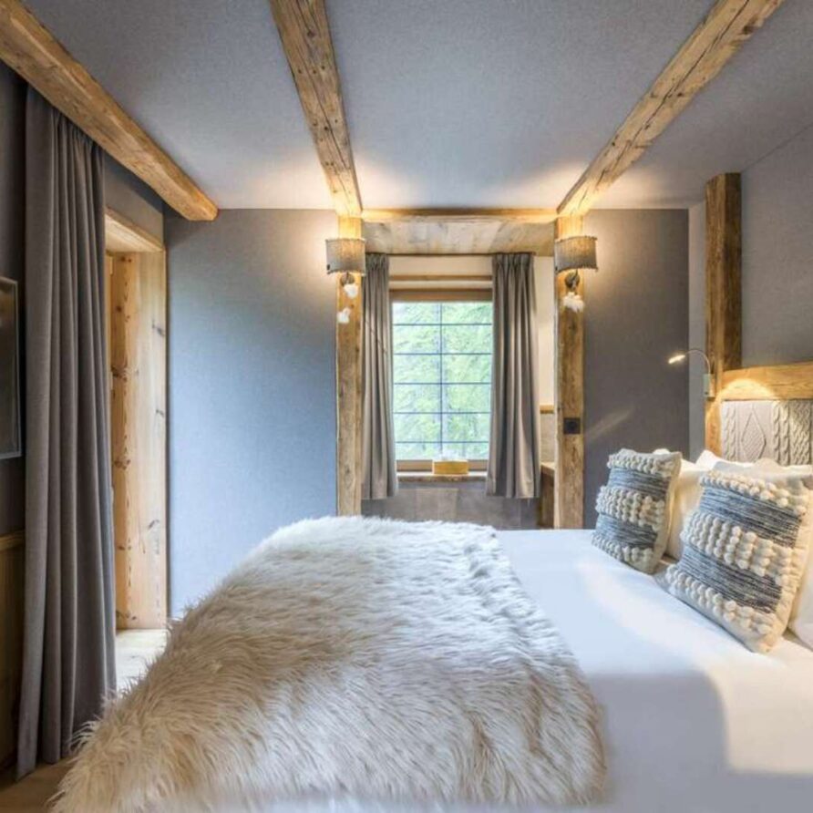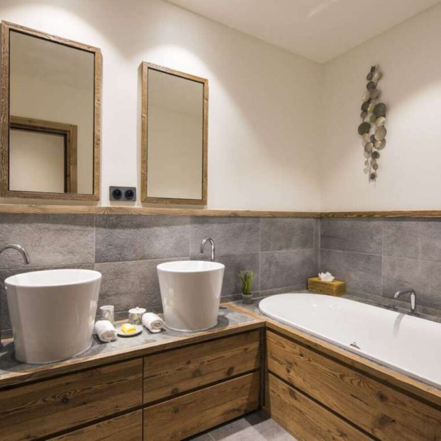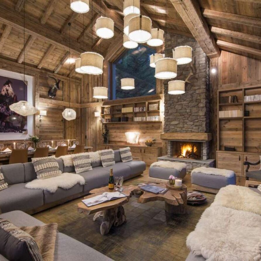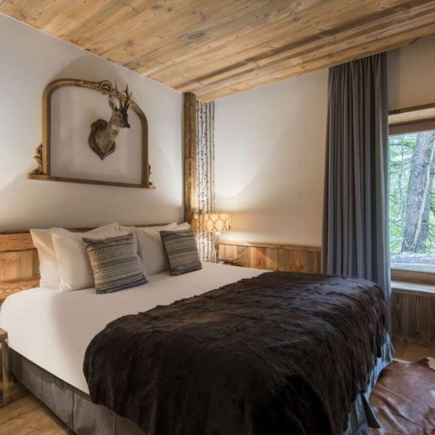 This outstanding large-group luxury chalet with spa is the perfect mix of opulence, elegance, tradition, tech and cutting-edge design. This six-bedroom property can accommodate 12 guests, two youngsters in a dedicated children’s room. The setting is superb: a short drive to the facilities of the village but very private with a woodland setting and fantastic views.