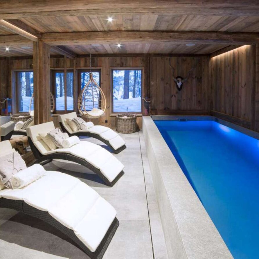 All have en-suite bathrooms and one of the twin/doubles has a private terrace. The rest of the bedrooms are on the ground floor, with a family suite of two twin/double rooms with en-suite shower rooms, and the children’s bunk room for two. The treatment and wellness area is also on this floor. A high-quality spa facility is a must have for many luxury chalet guests today. Your rest and relaxation plans can include swimming in an indoor pool, relaxing steam saunas, and working with visiting therapists in the comfortable massage room.