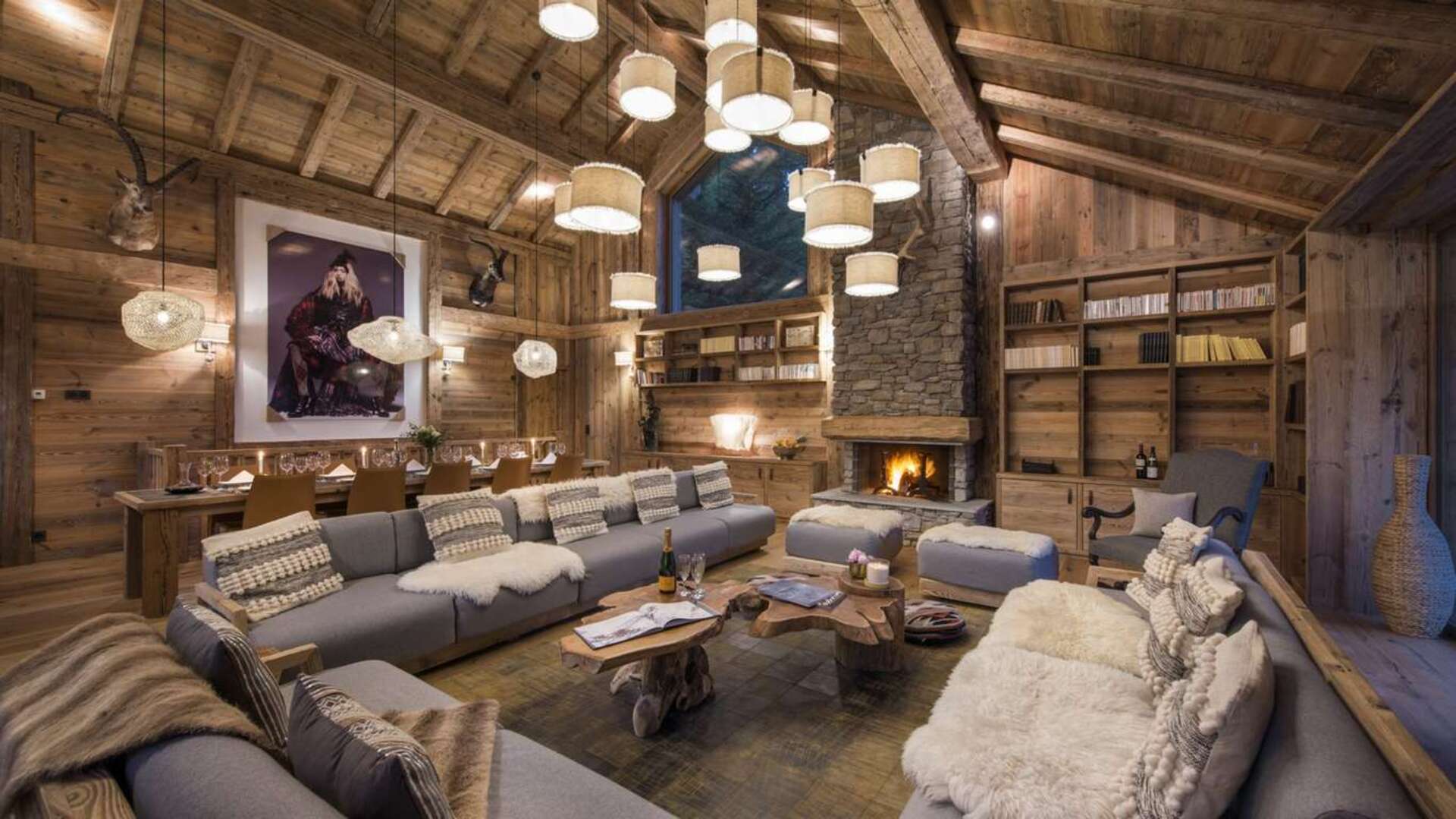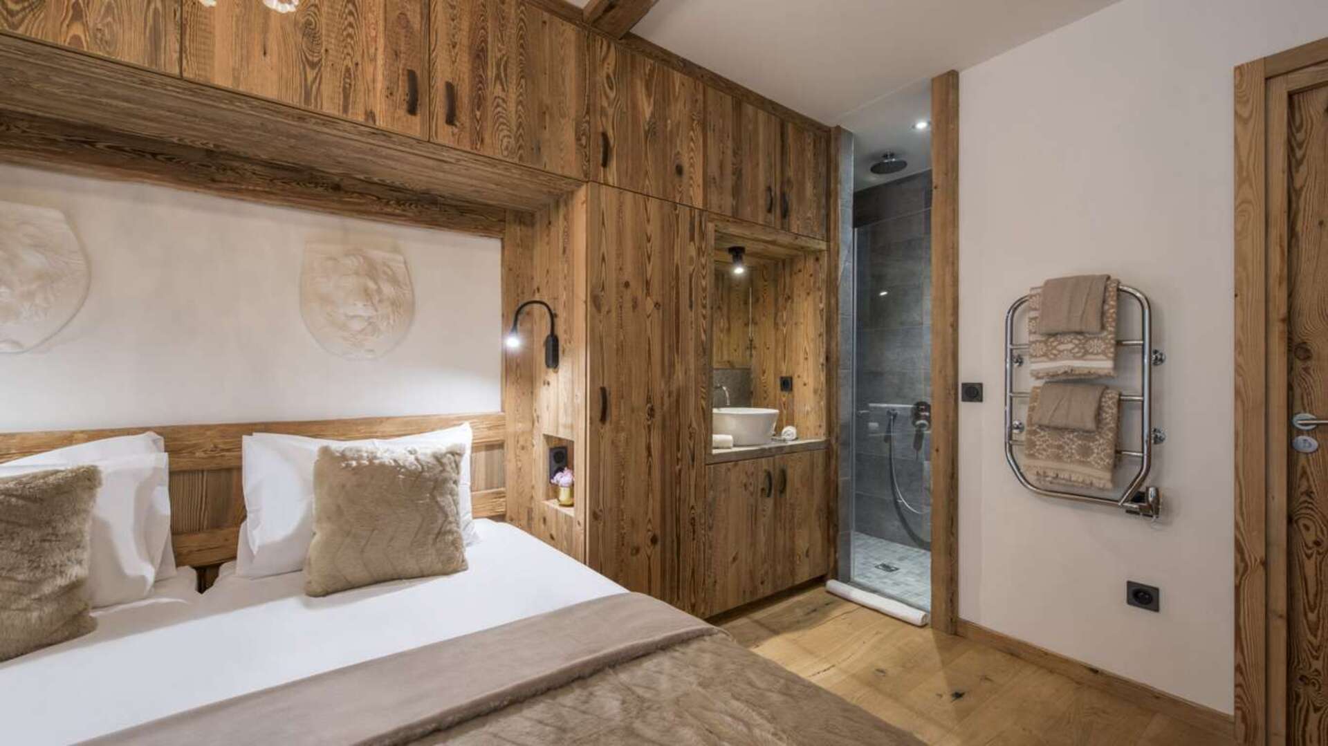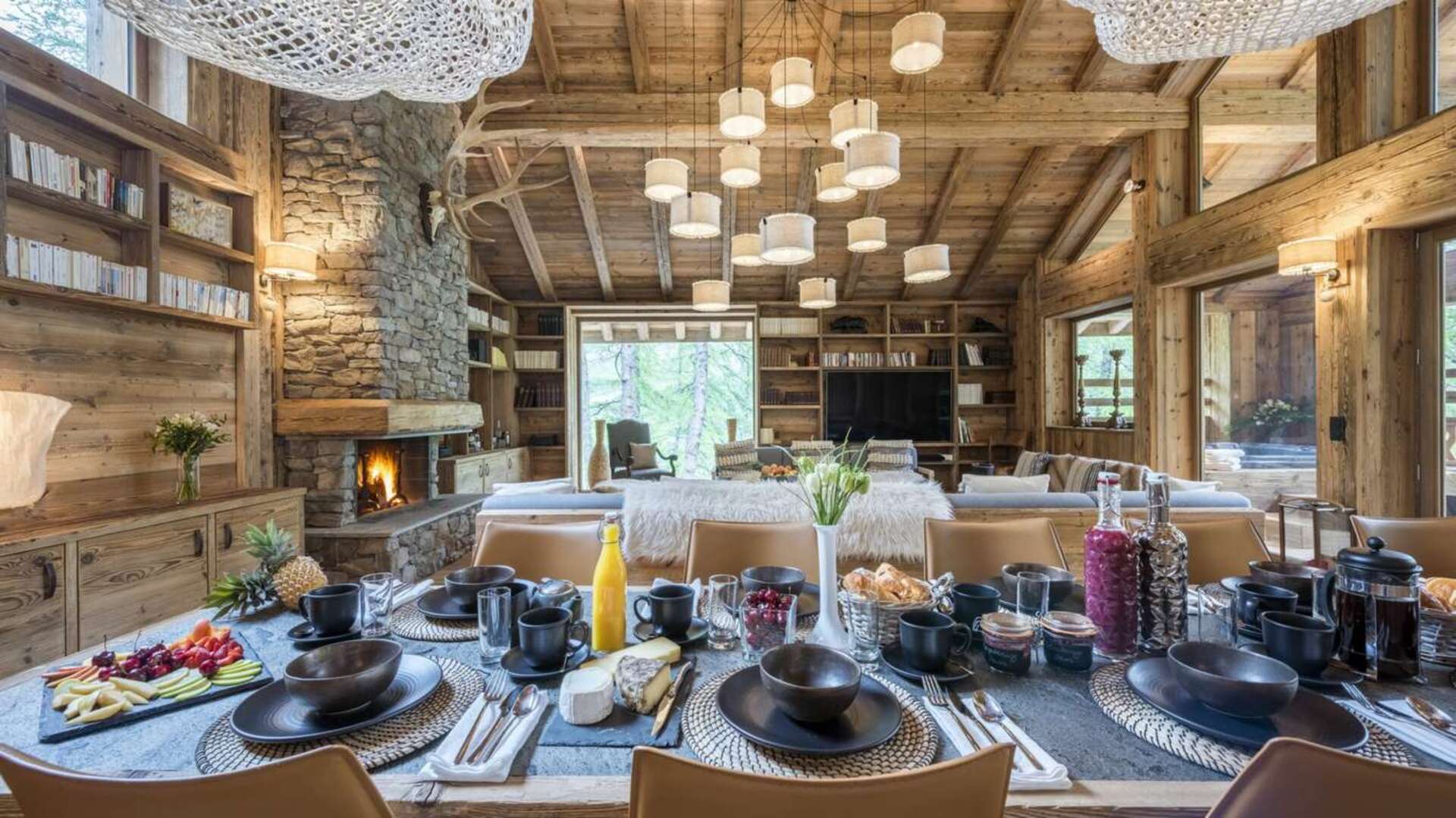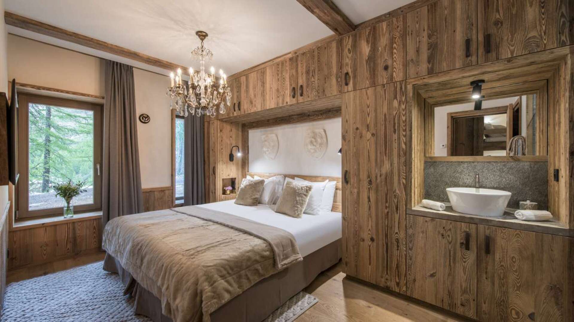 This outstanding large-group luxury chalet with spa is the perfect mix of opulence, elegance, tradition, tech and cutting-edge design. This six-bedroom property can accommodate 12 guests, two youngsters in a dedicated children’s room. The setting is superb: a short drive to the facilities of the village but very private with a woodland setting and fantastic views.
