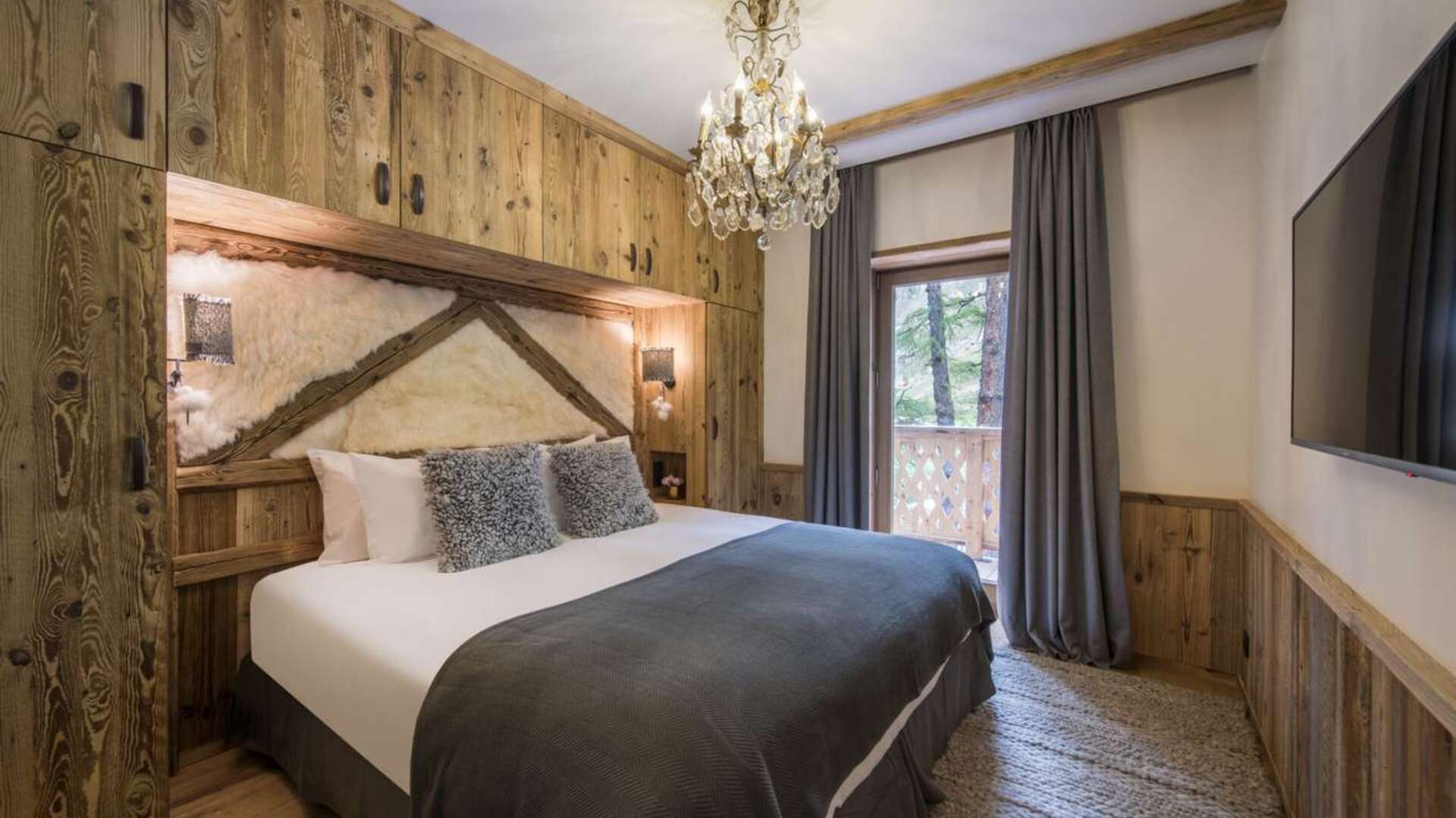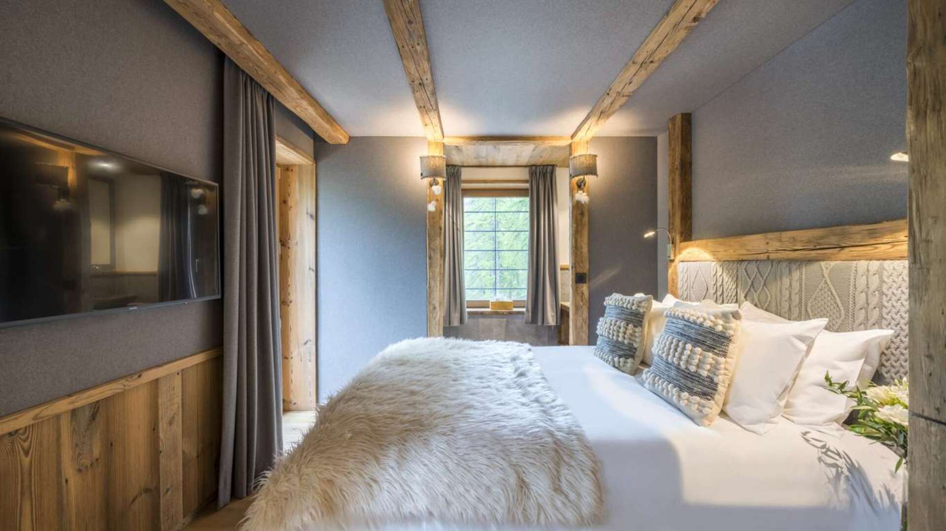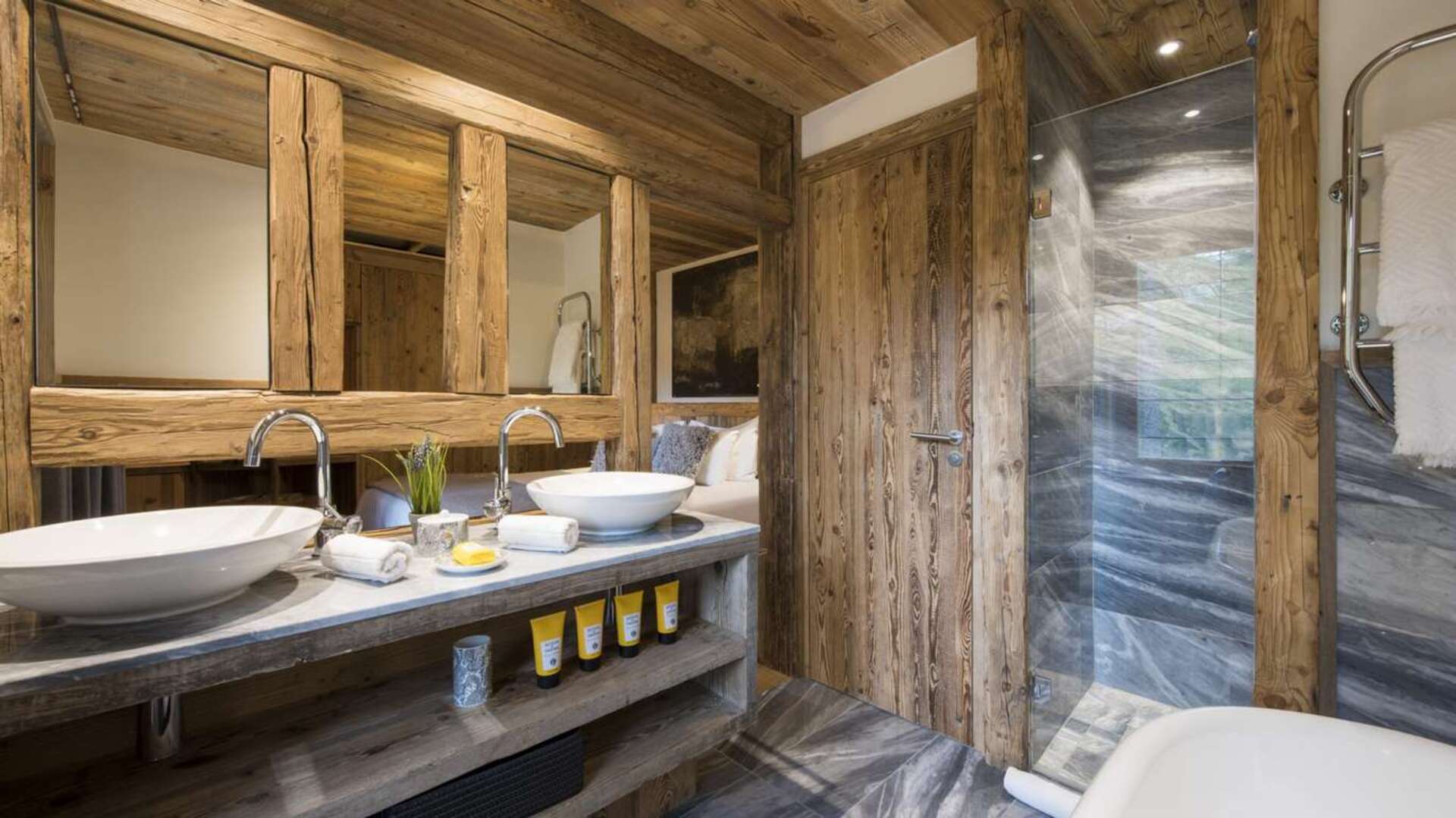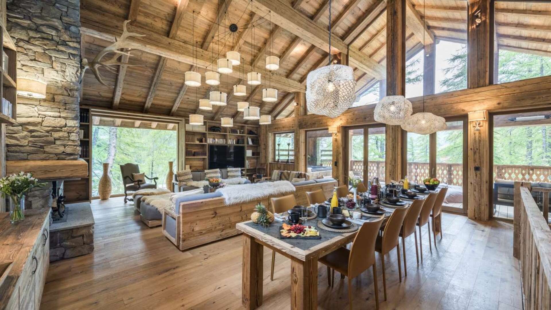 This outstanding large-group luxury chalet with spa is the perfect mix of opulence, elegance, tradition, tech and cutting-edge design. This six-bedroom property can accommodate 12 guests, two youngsters in a dedicated children’s room. The setting is superb: a short drive to the facilities of the village but very private with a woodland setting and fantastic views.