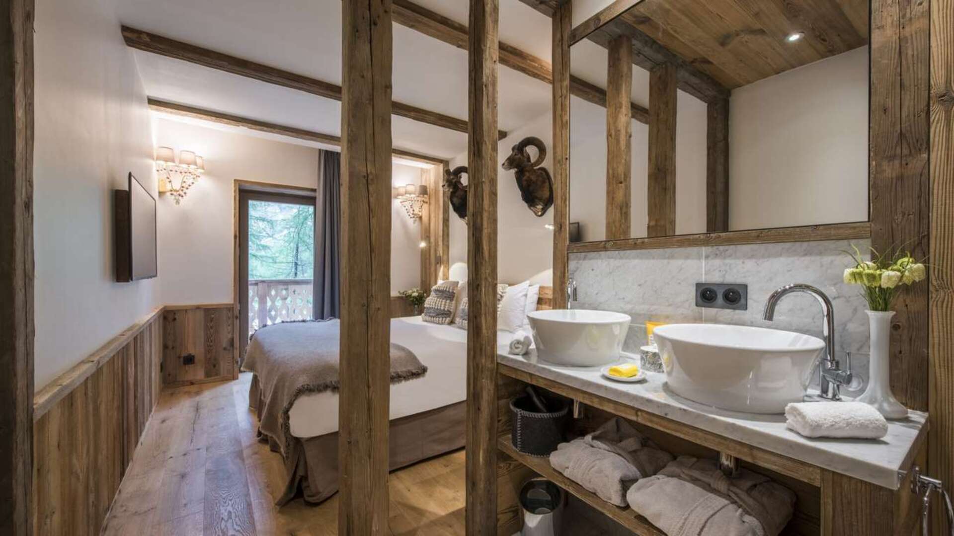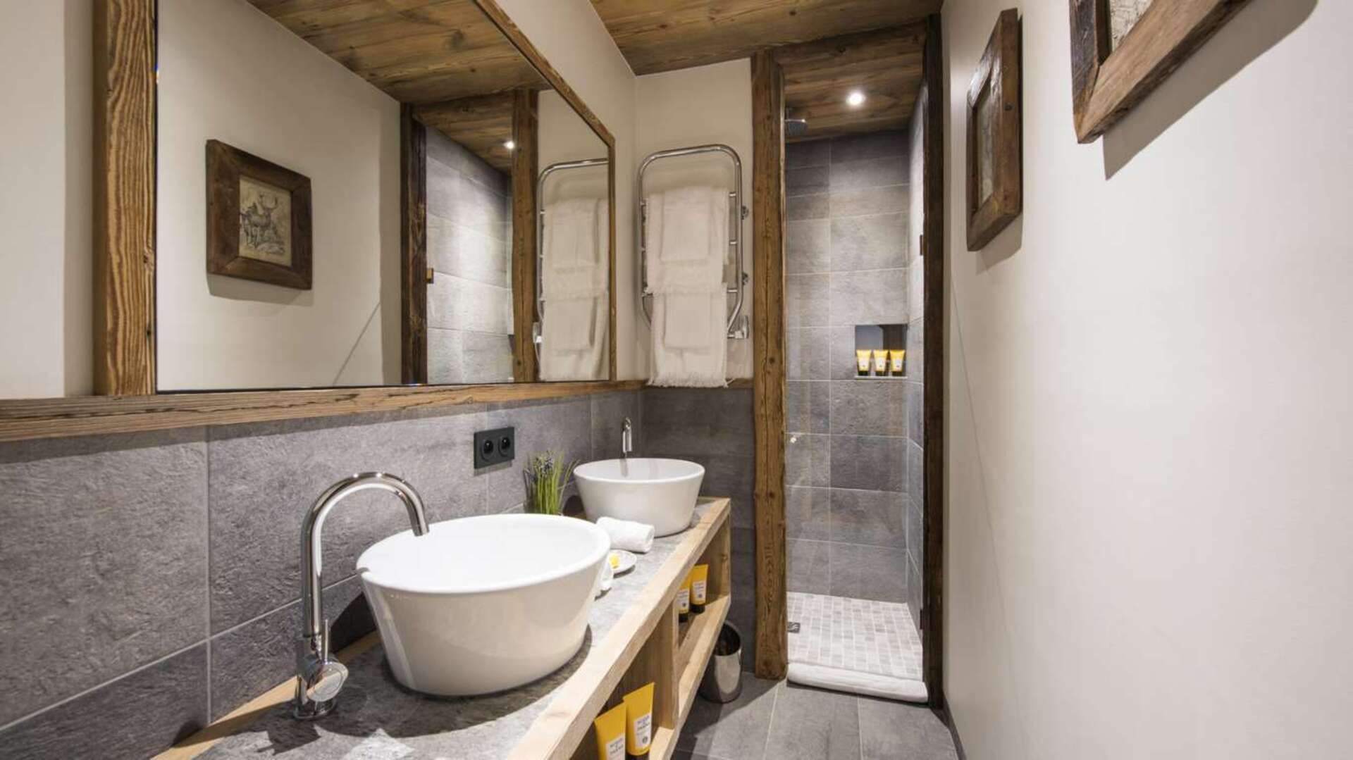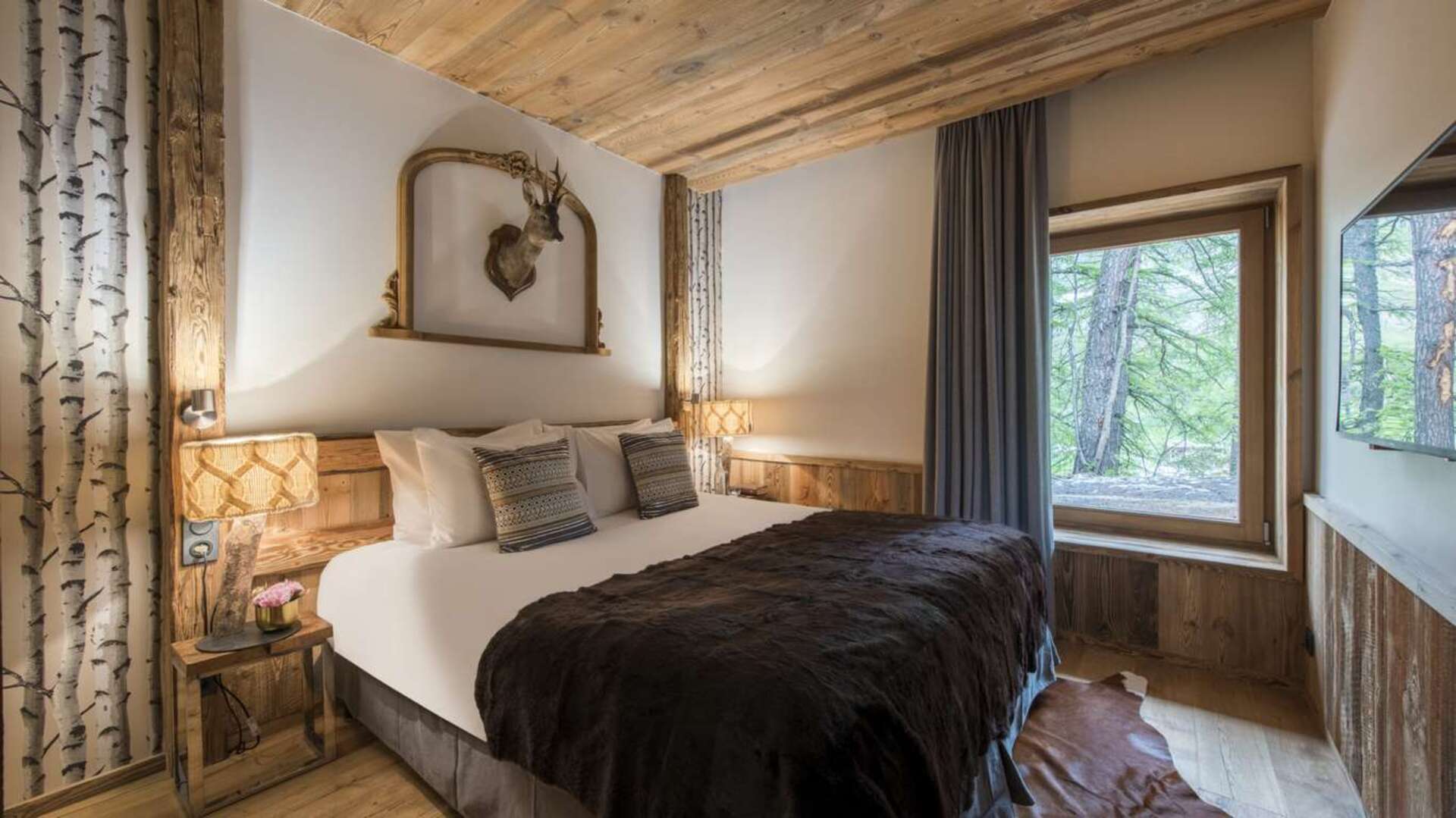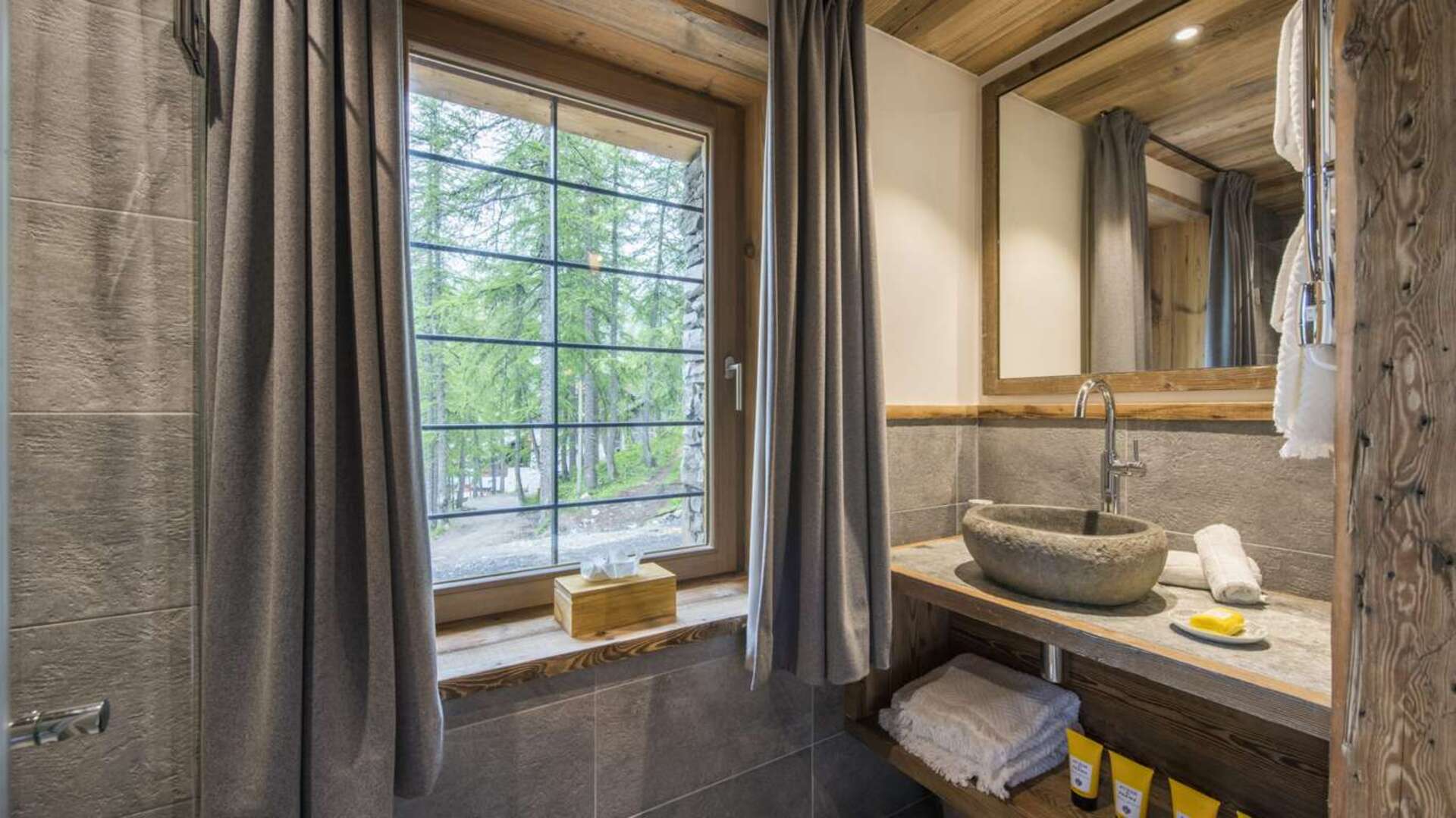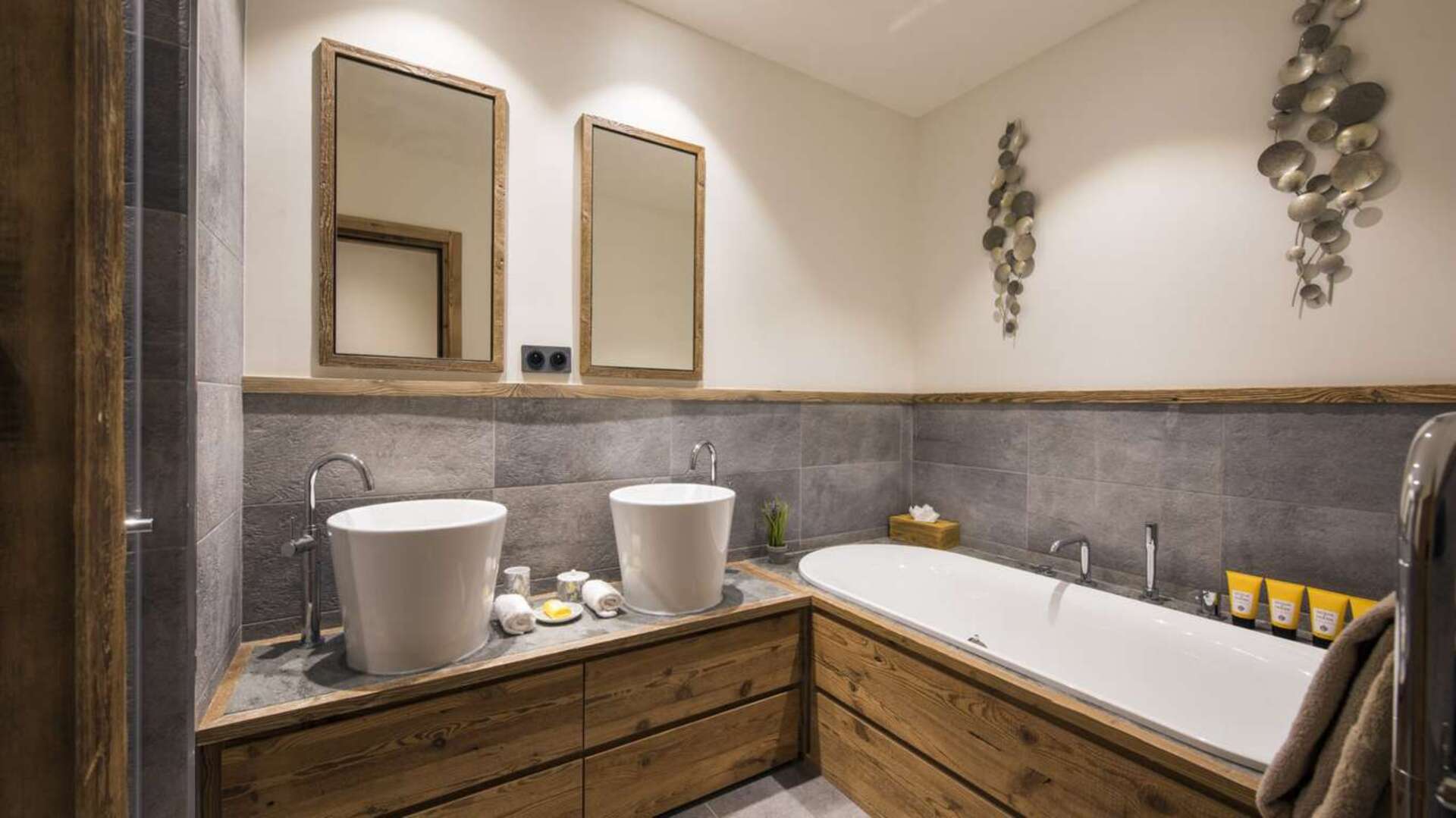 This outstanding large-group luxury chalet with spa is the perfect mix of opulence, elegance, tradition, tech and cutting-edge design. This six-bedroom property can accommodate 12 guests, two youngsters in a dedicated children’s room. The setting is superb: a short drive to the facilities of the village but very private with a woodland setting and fantastic views.