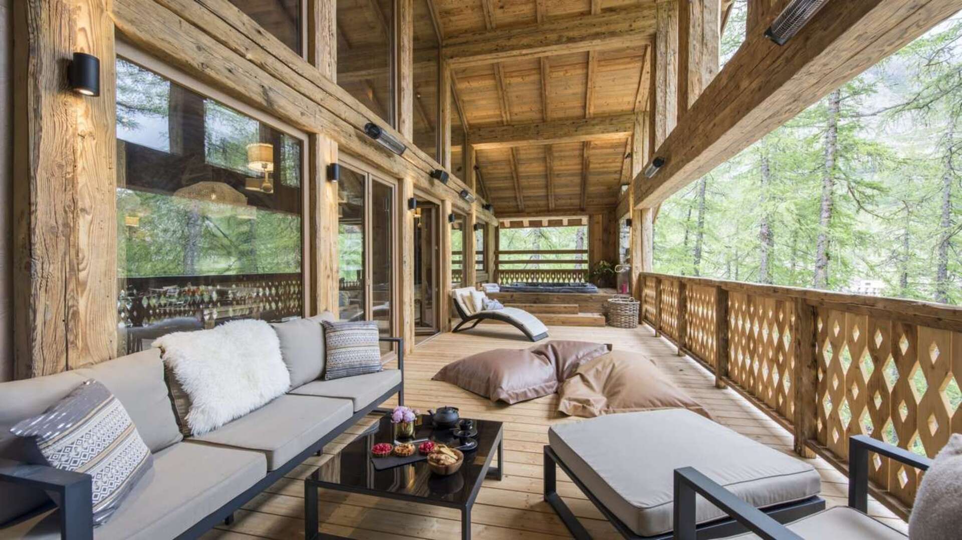 You can watch the snow fall or the stars sparkle in perfect comfort from a balcony hot tub, or gather round a fire pit as the sun goes down over the trees around you. Throughout the Chalet you will find the latest in entertainment technology: cable TV and Apple TV, a chalet-wide integrated sound system, DVD players, and Wi-Fi.