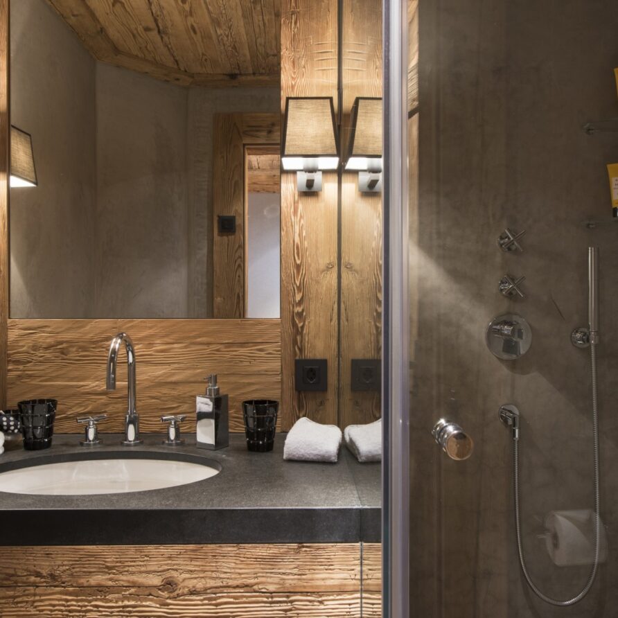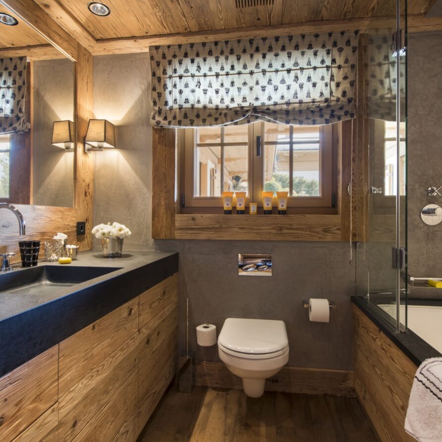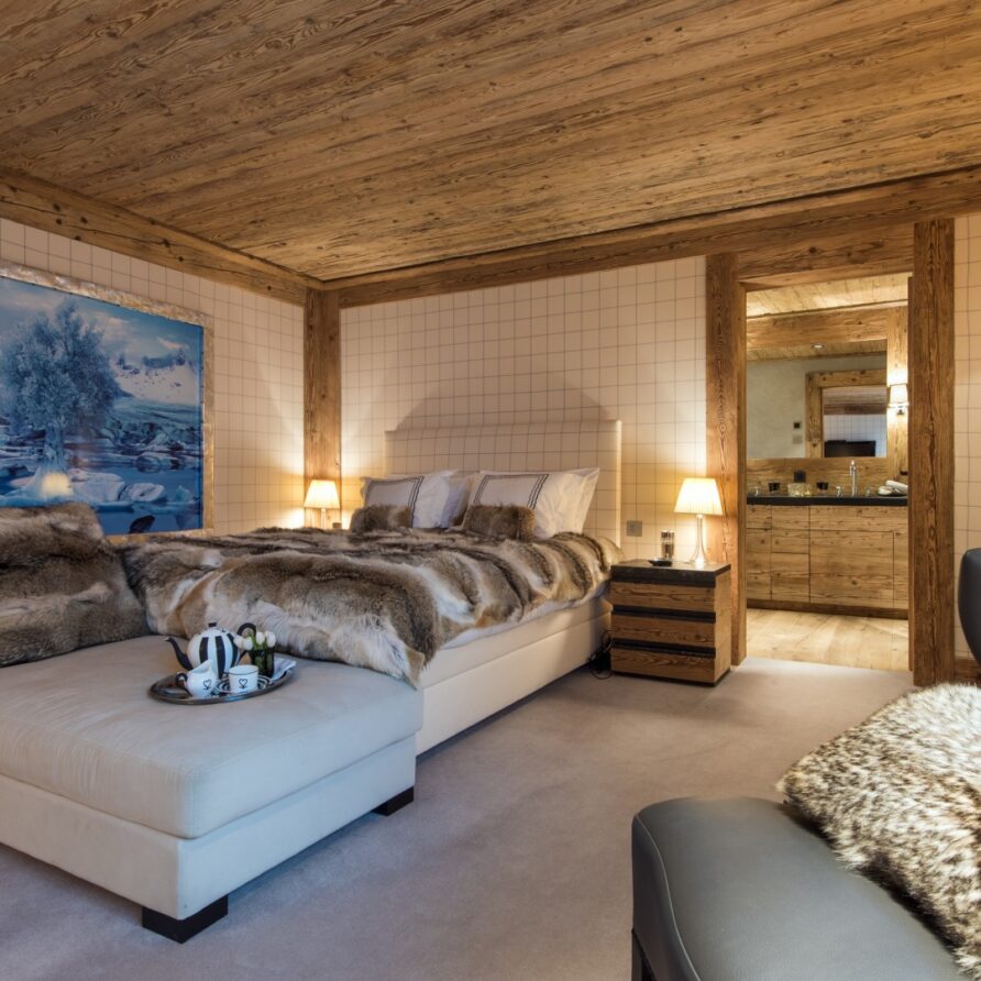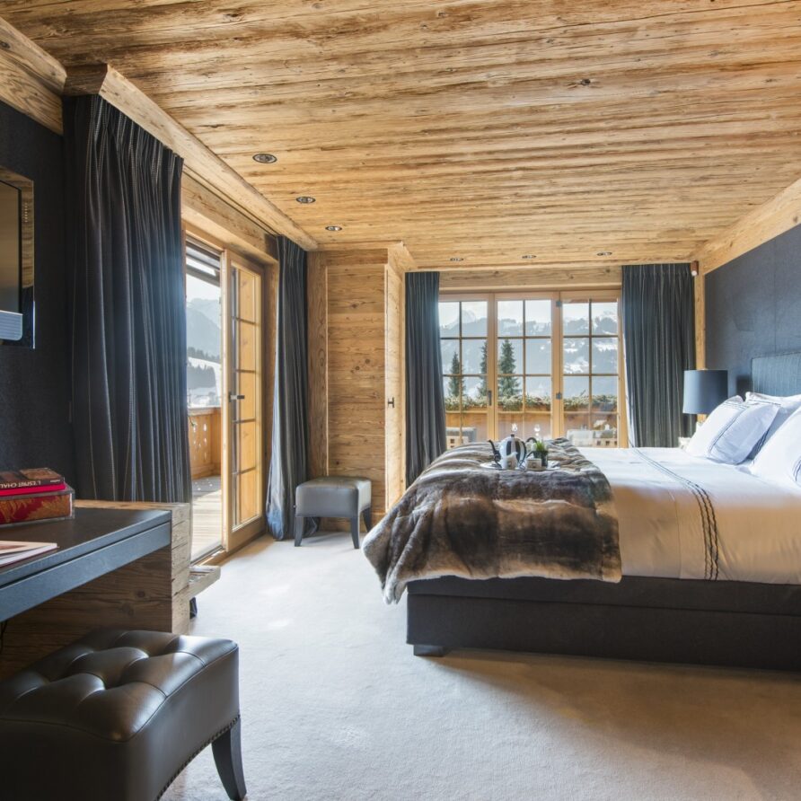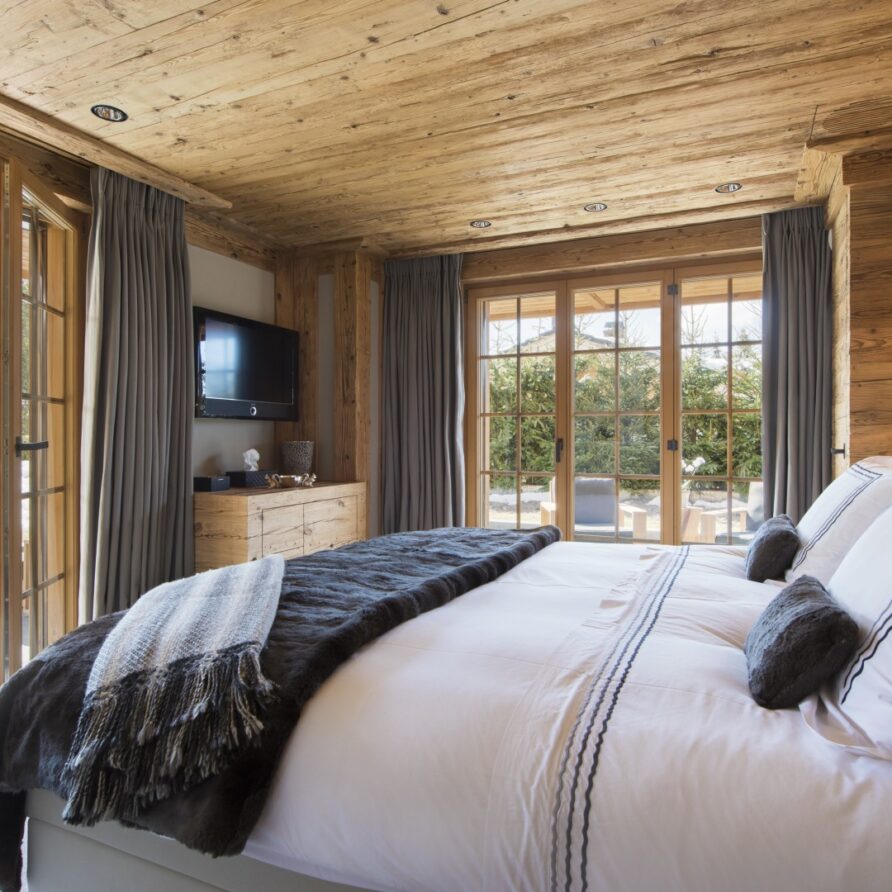 All the bedrooms in the chalet have desks, flat screen TVs with international channels, iPod docking stations and DVD players. On the ground floor, there are two double bedrooms, both with en-suite bathrooms and French windows which open out onto the beautiful terrace and garden.