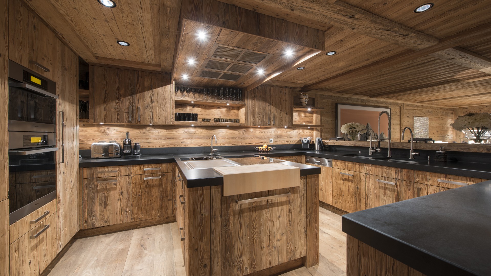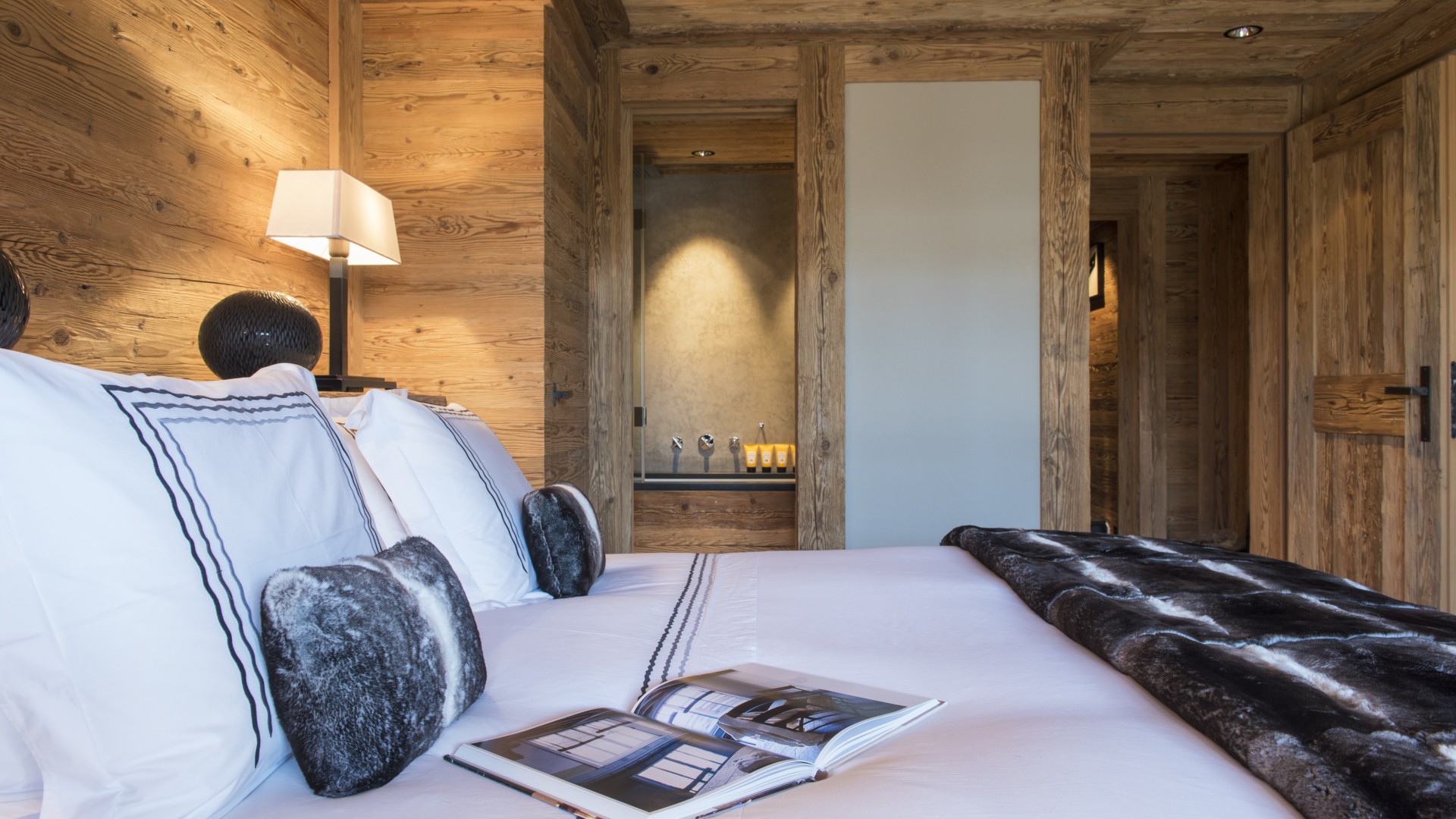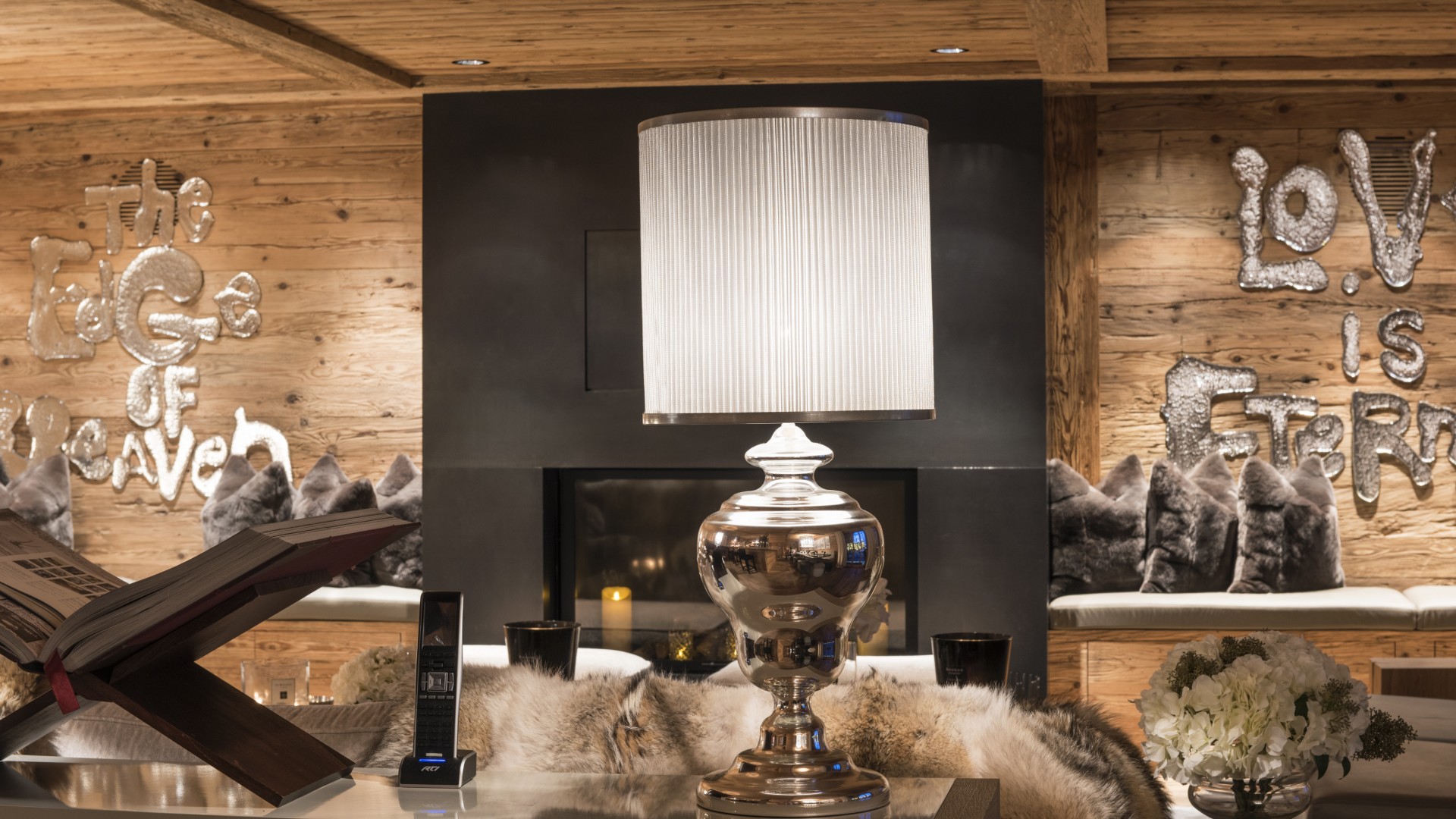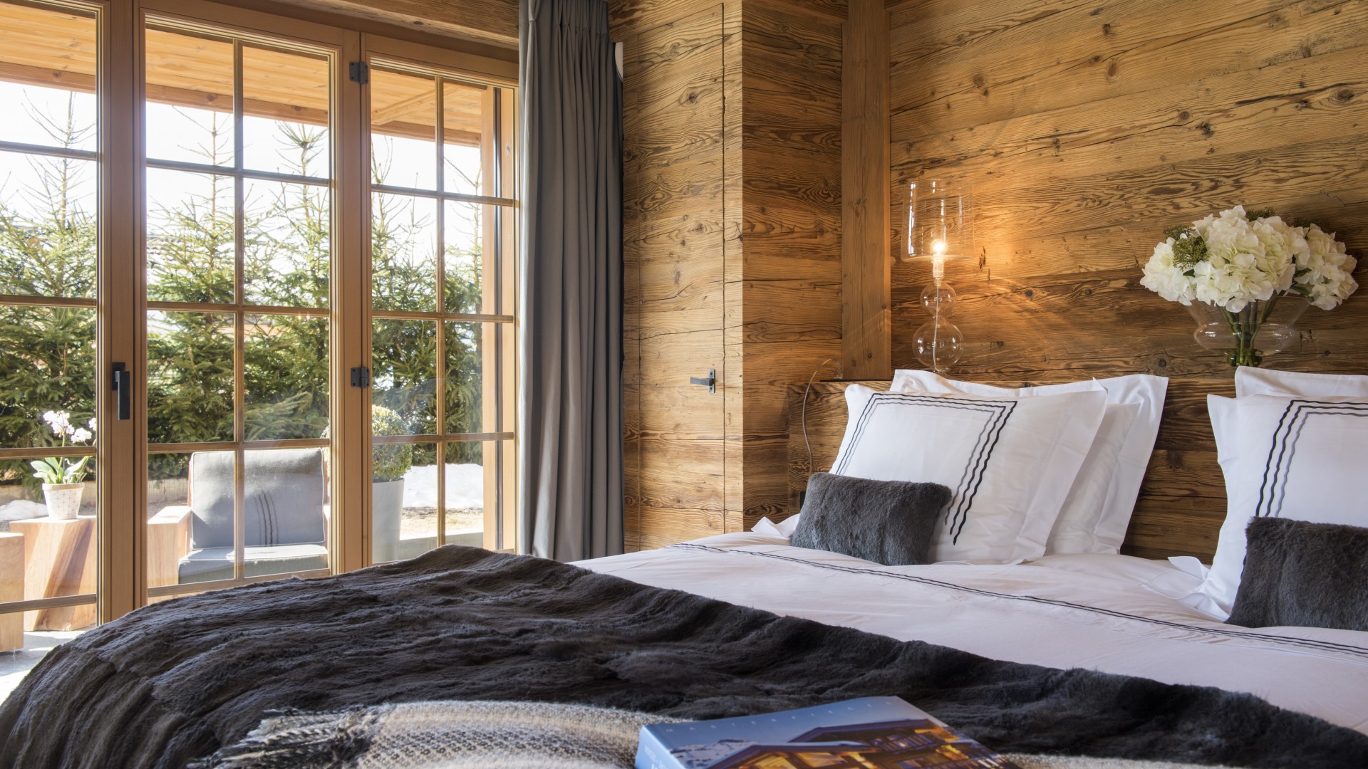 Surrounded by panoramic views of a breathtaking mountain scene, there is a large outdoor barbecue area on this level with a contemporary fireplace and comfy seating. The chalet is an impressive alpine retreat for the most discerning client.