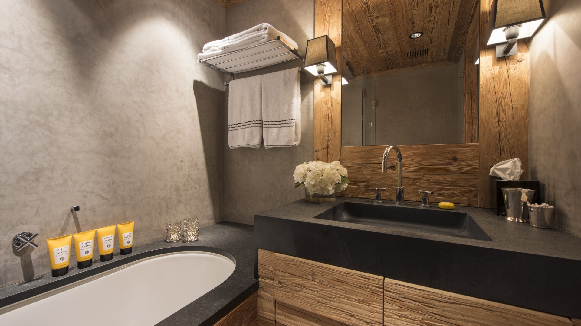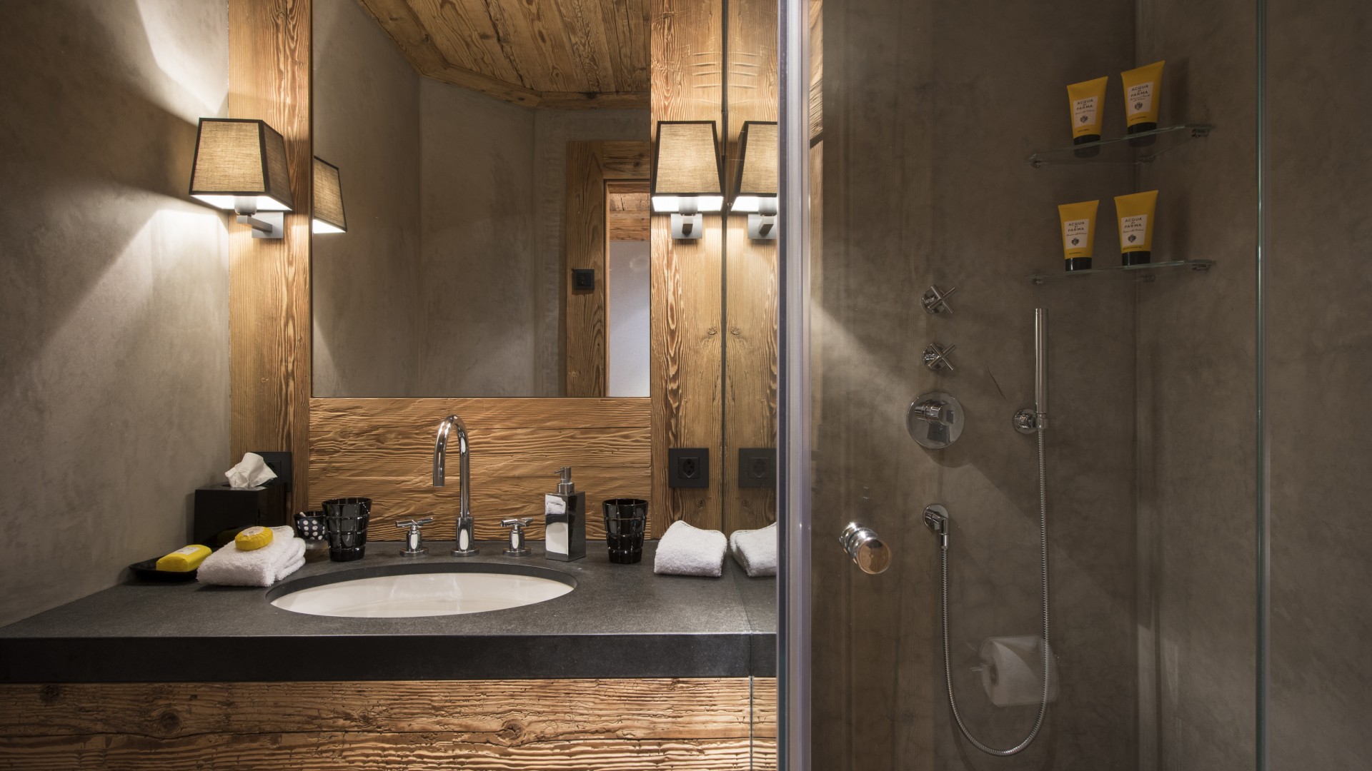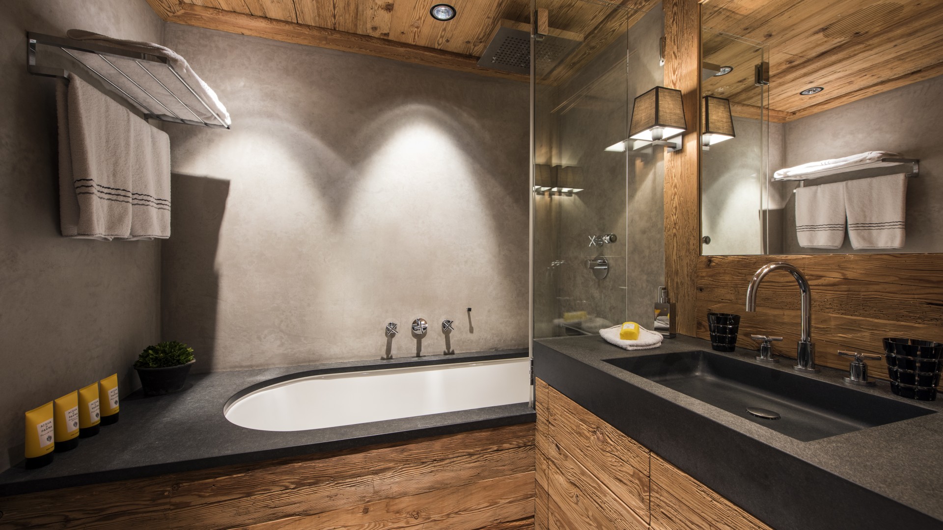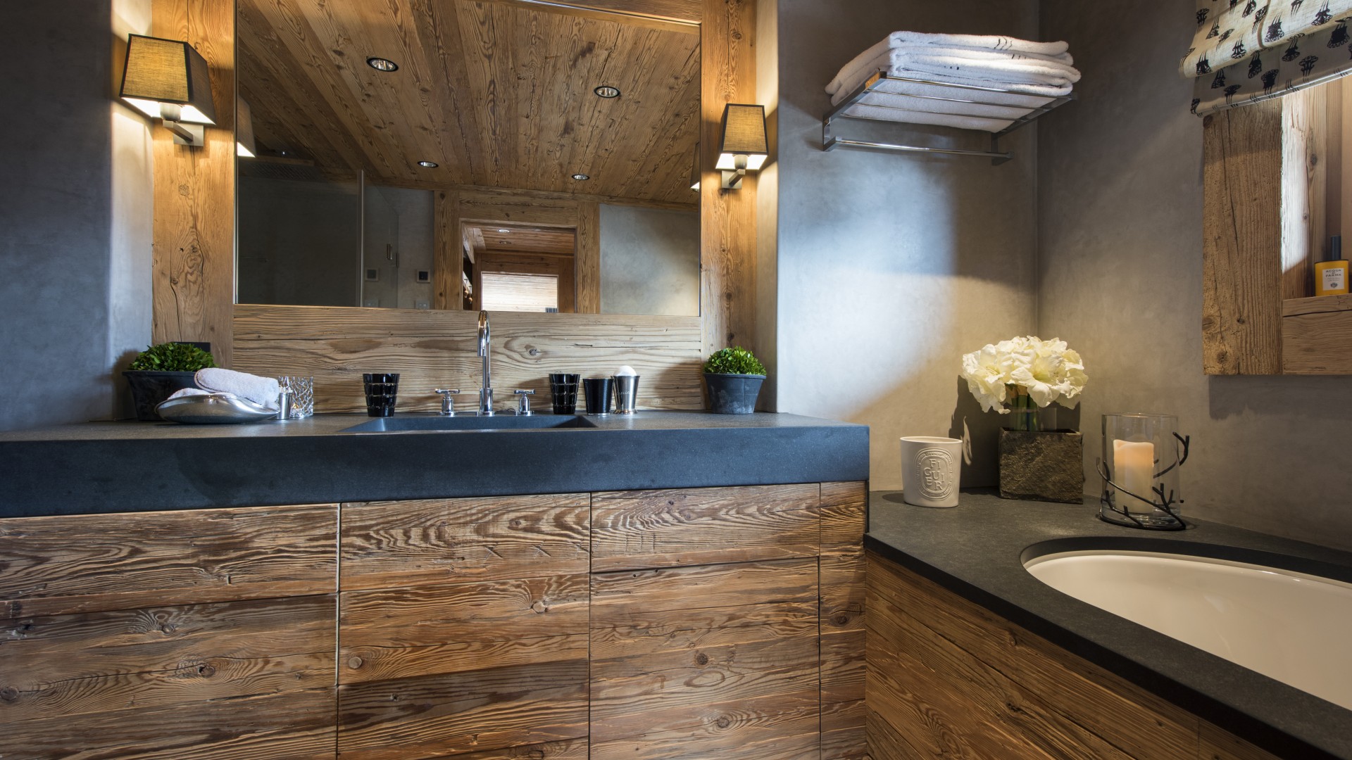 All the bedrooms in the chalet have desks, flat screen TVs with international channels, iPod docking stations and DVD players. On the ground floor, there are two double bedrooms, both with en-suite bathrooms and French windows which open out onto the beautiful terrace and garden.