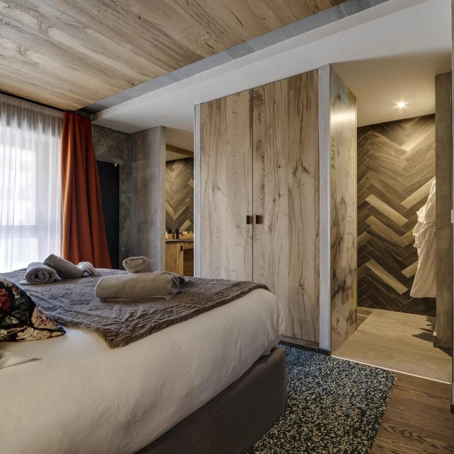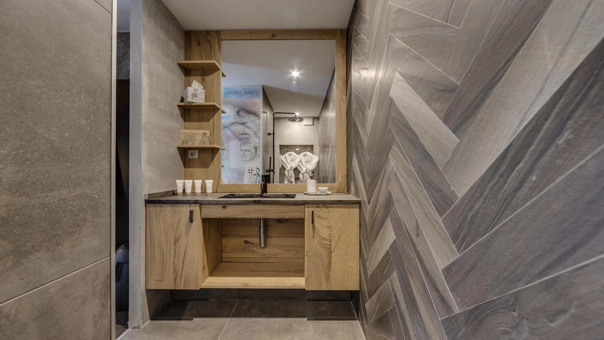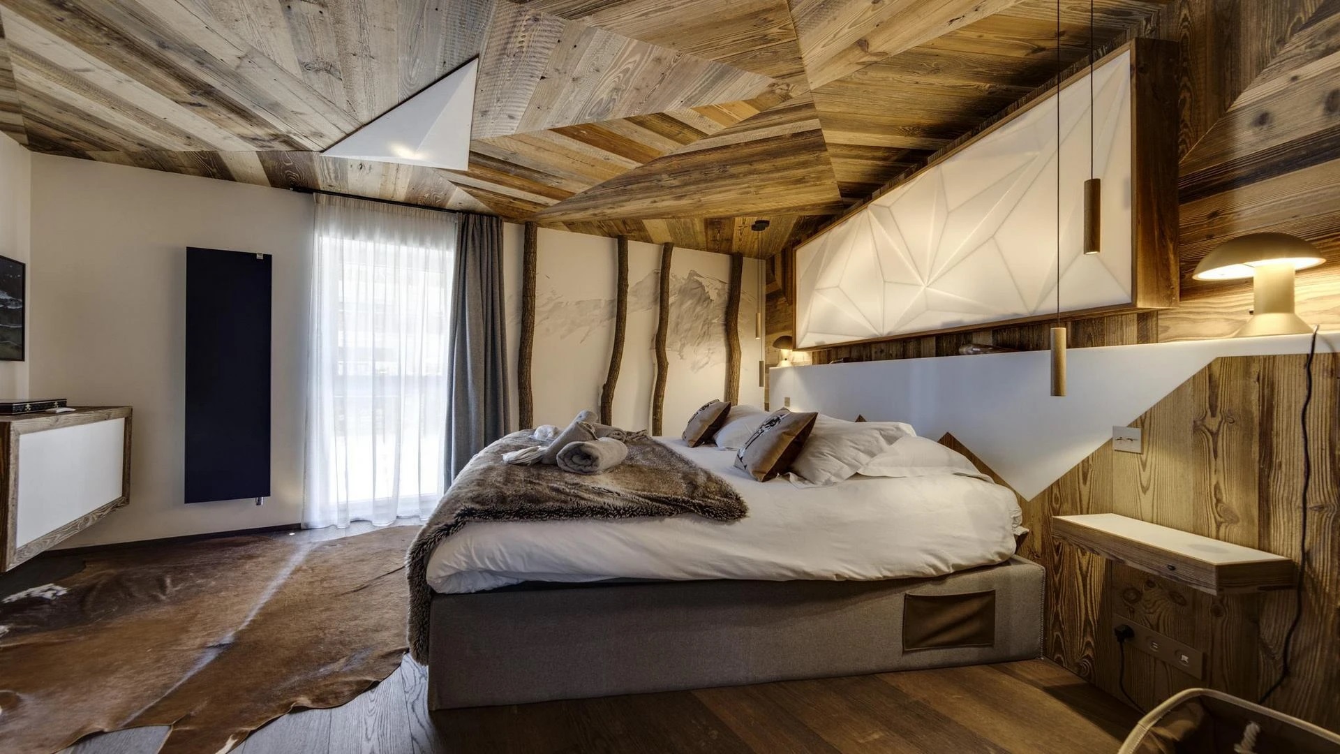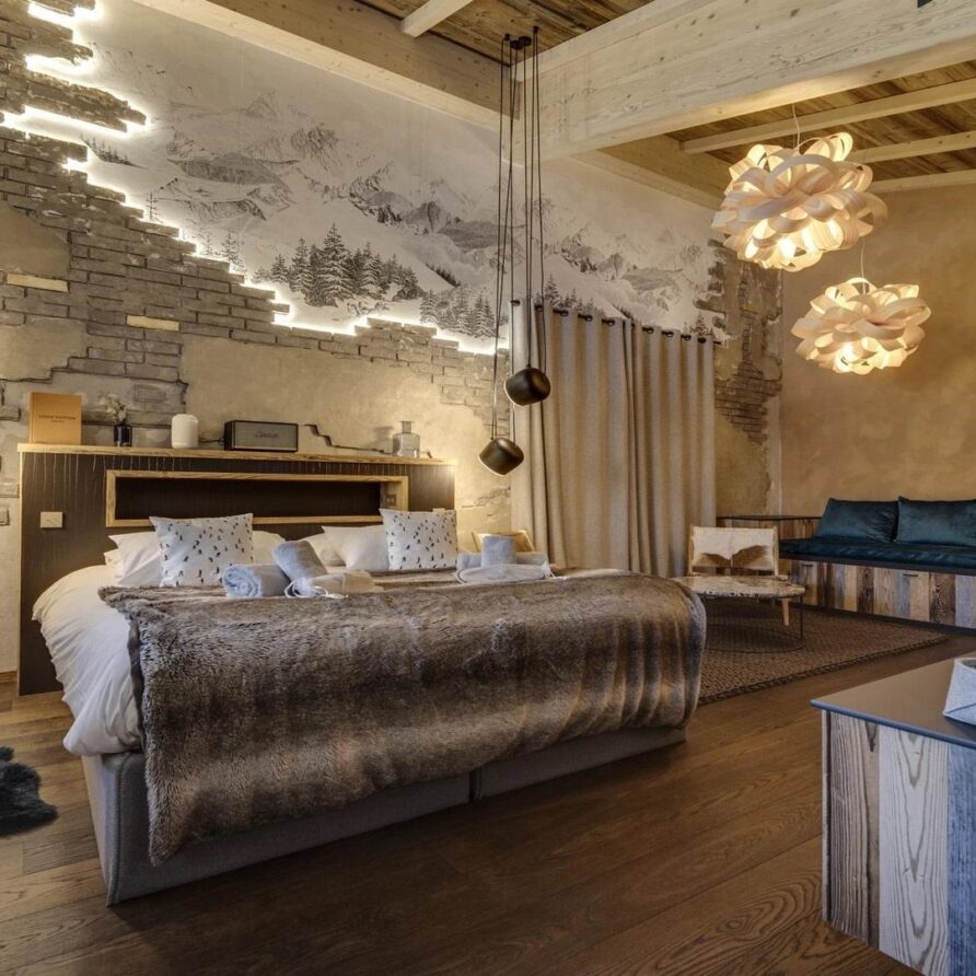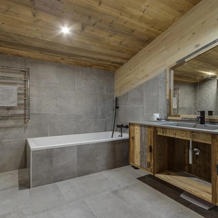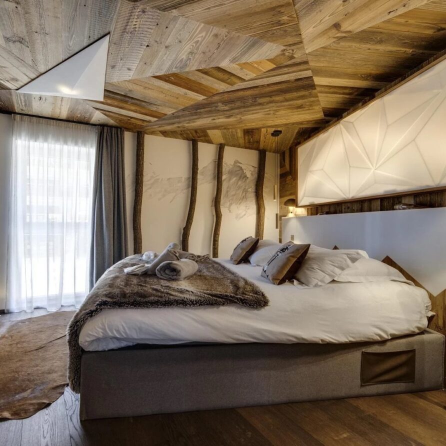 The chalet comfortably accommodates up to 10 guests across five beautifully-appointed double or twin bedrooms, making it the perfect retreat for a luxurious family ski holiday. Each bedroom is equipped with its own bath or shower room featuring walk-in showers, and one particularly charming suite boasts a unique aquarium headboard, adding a playful touch. The master bedroom and a second on-level bedroom come with seating areas and with the exception of two bedrooms, the bedchambers are equipped with flat-screen TV’s.