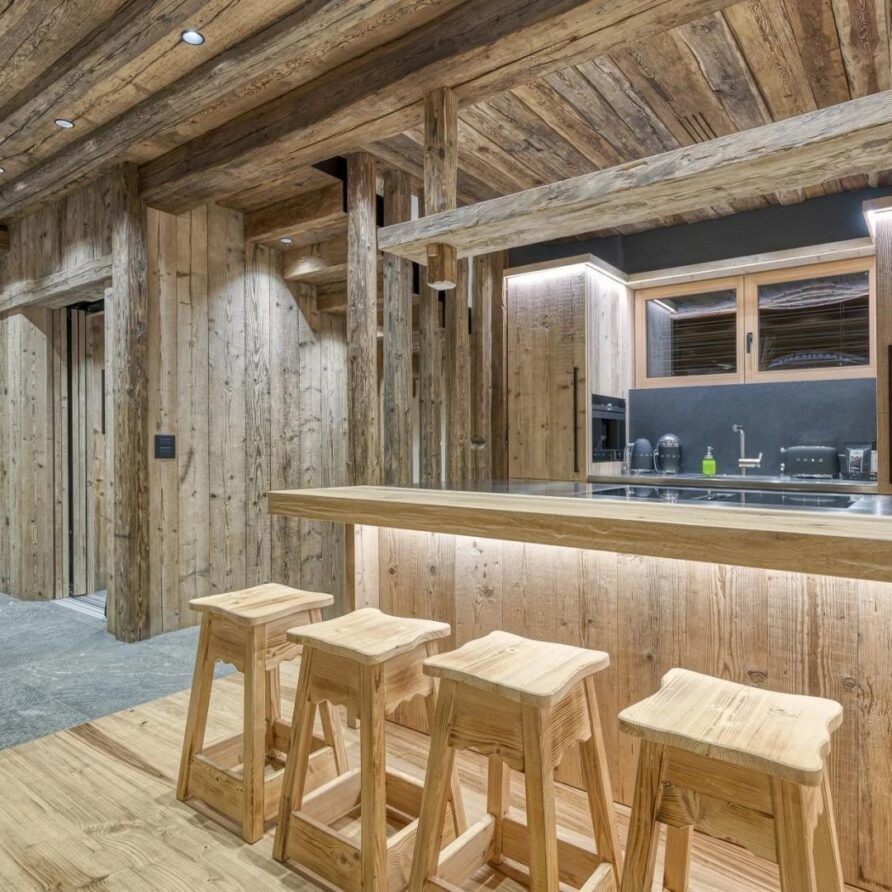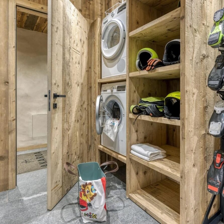 Beyond the spa, the chalet provides practical amenities to enhance your stay. There is a ski room equipped with boot warmers, ensuring your gear is ready for the next day’s adventure. Laundry facilities are also available for added convenience. For your vehicles, the garage offers parking for two cars, while an internal provides easy access across the three main floors of the chalet, combining luxury with practicality to make your stay as comfortable as possible.