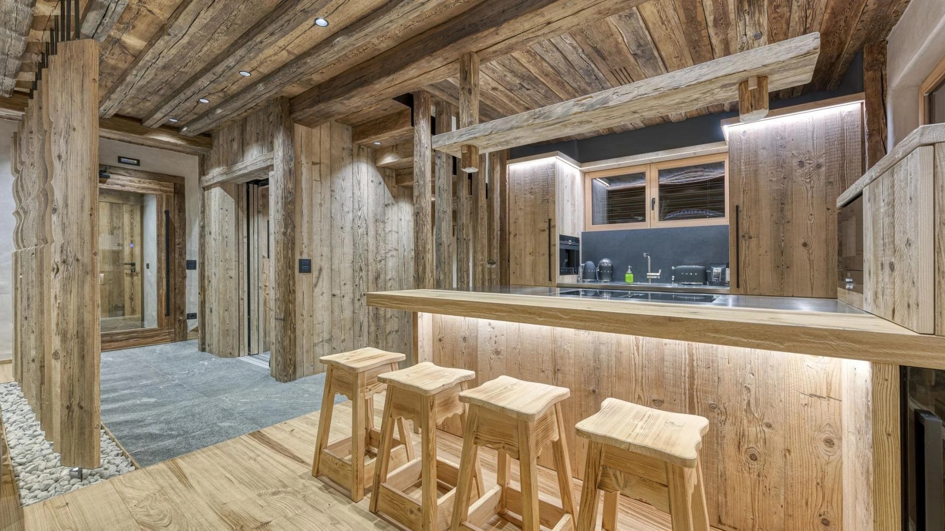 After a day on the slopes, head to the basement, where a luxurious spa awaits. The wellness area offers a superb assortment of facilities designed to rejuvenate and relax you. Dive into the swim-spa, equipped with soothing massage jets and a counter current system, allowing you to adjust the experience to your liking. Indulge in the warmth of the sauna or the steam of the Hammam, followed by a refreshing session in the emotional showers, which provide a multi-sensory experience. To complete your relaxation, a dedicated massage room is available, offering a tranquil space to unwind and soothe tired muscles after your day in the mountains.