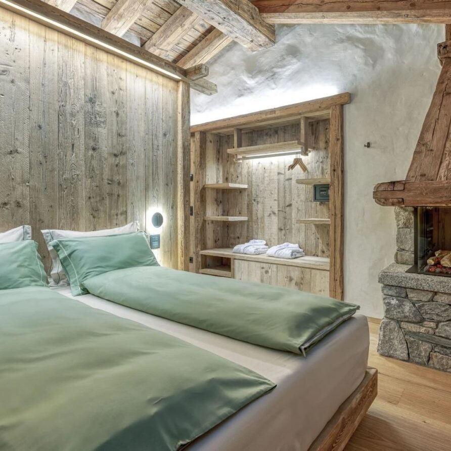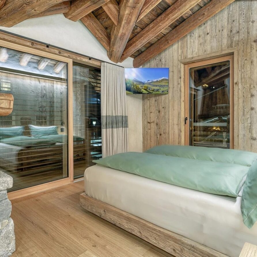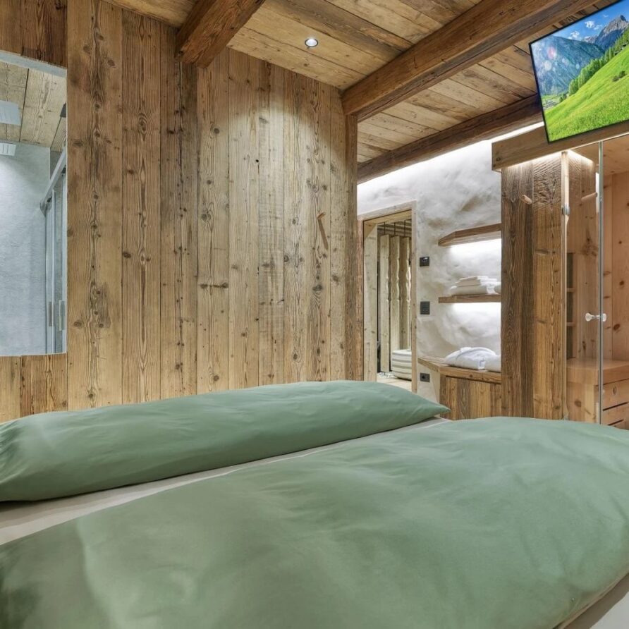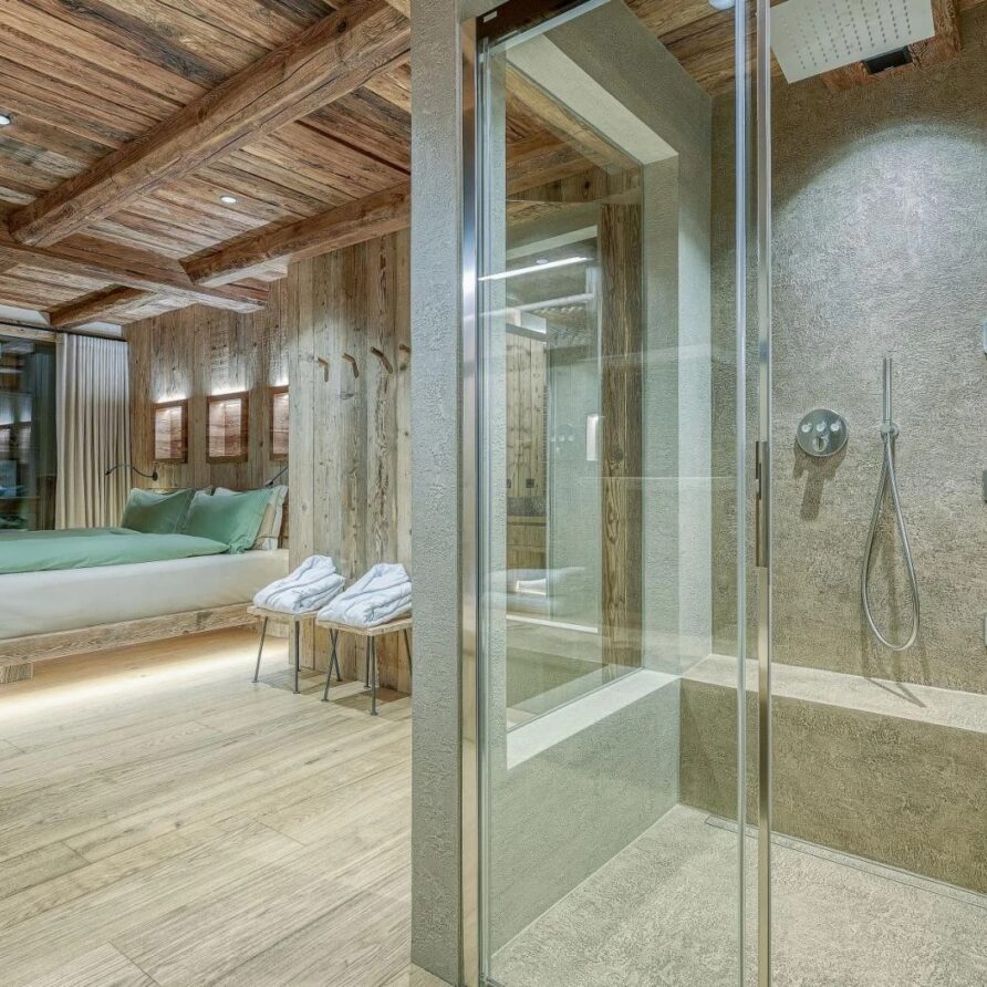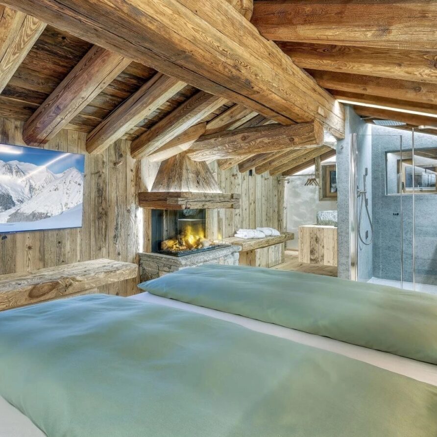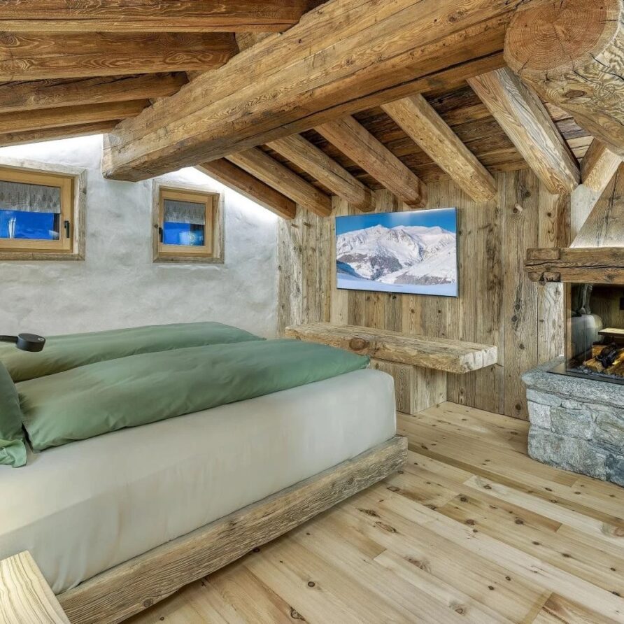 Five beautifully designed bedrooms await you, thoughtfully spread across three stunning floors, each offering unique charm and luxurious amenities. On the top floor, you’ll find a serene double bedroom featuring a cozy fireplace that adds a warm ambiance to your stay. This room is complemented by an open-plan shower room, providing an inviting retreat after a day on the slopes. The first floor boasts three additional bedrooms, perfect for accommodating families or groups. A spacious double bedroom with private balconies, where you can savor your morning coffee while enjoying breathtaking views. This room also includes a charming fireplace, and an en-suite bathroom equipped with a double shower, ensuring a comfortable and indulgent experience.