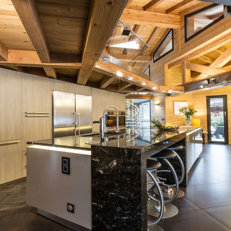 In the chalets communal areas the focus is on warmth, cosines, and indulgence. South-facing windows and a large terrace make the big open-plan living area an inviting place to enjoy the views. The terrace is a great place to dine outside – perhaps from the barbecue.