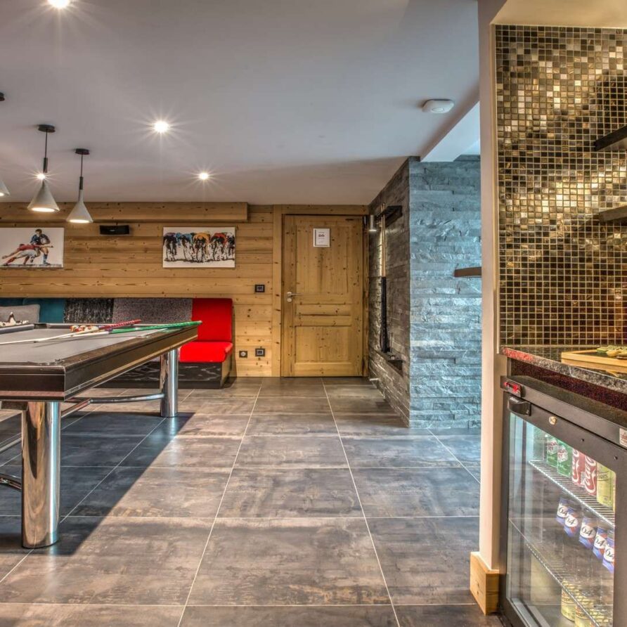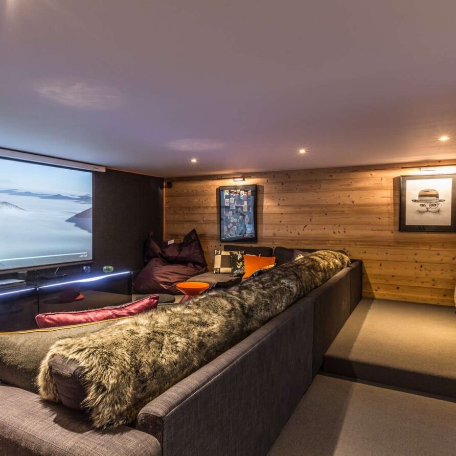 The chalet can accommodate up to 10 guests in five rooms, all in bespoke rooms. Though an individual design aesthetic gives each room a life of its own they are tied together by their comfort, quality, and wonderful use of materials – marble and wood play a big role. Each room has an en-suite bathroom with beauty products, access to the chalet’s Sonos sound system, international satellite TV, and Bluetooth connectivity. The entertainment can be a bonding group activity in a cinema room, while a pool table and bar make the play room and inviting place to get together in the evening.