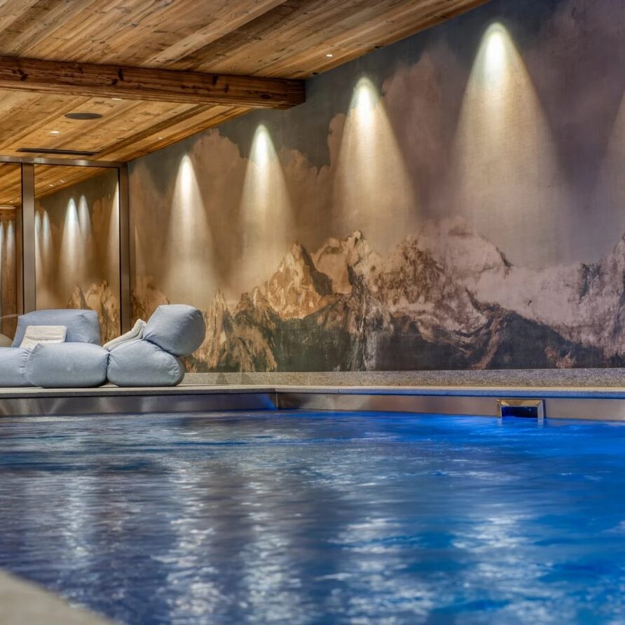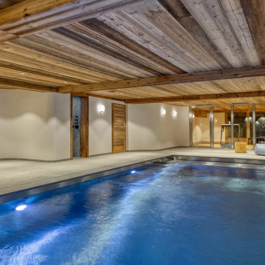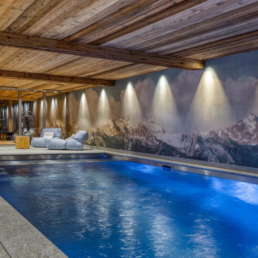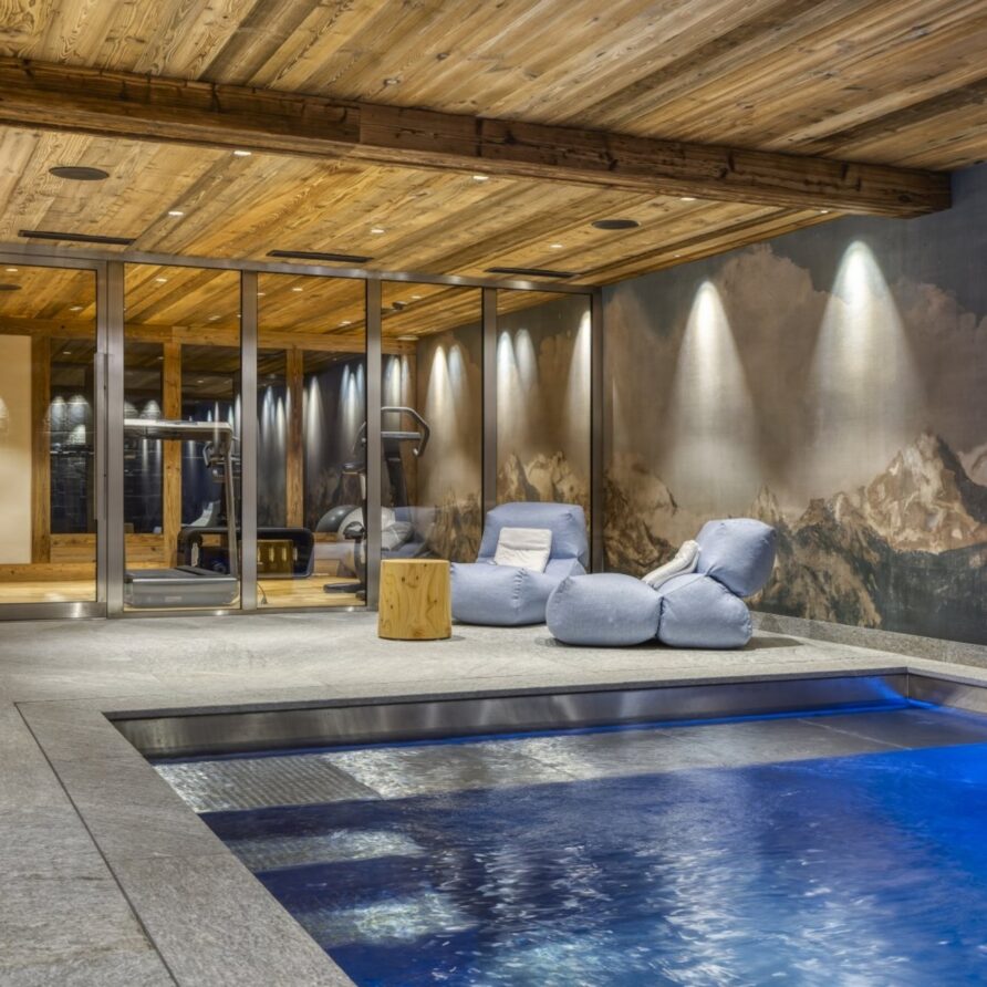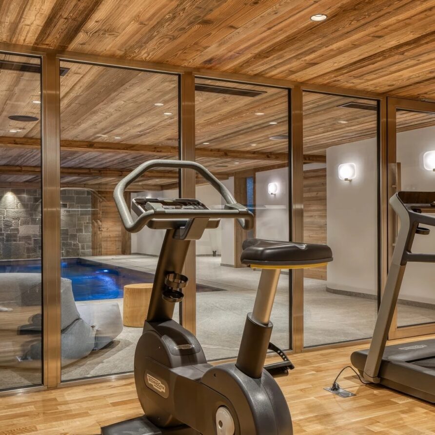 The chalet also has no lack of facilities for rejuvenation, rest, relaxation and the fitness needed to enjoy skiing to the fullest. The spa comes with an indoor swimming pool with jet streams, steam room and small gym. After visiting the wellness area, evenings can be spent in the cinema room, which is located next to the fitness room. To make a stay as pleasant as possible, luxury ski holiday chalet furthermore has a ski room, laundry room and four garage parking spaces.