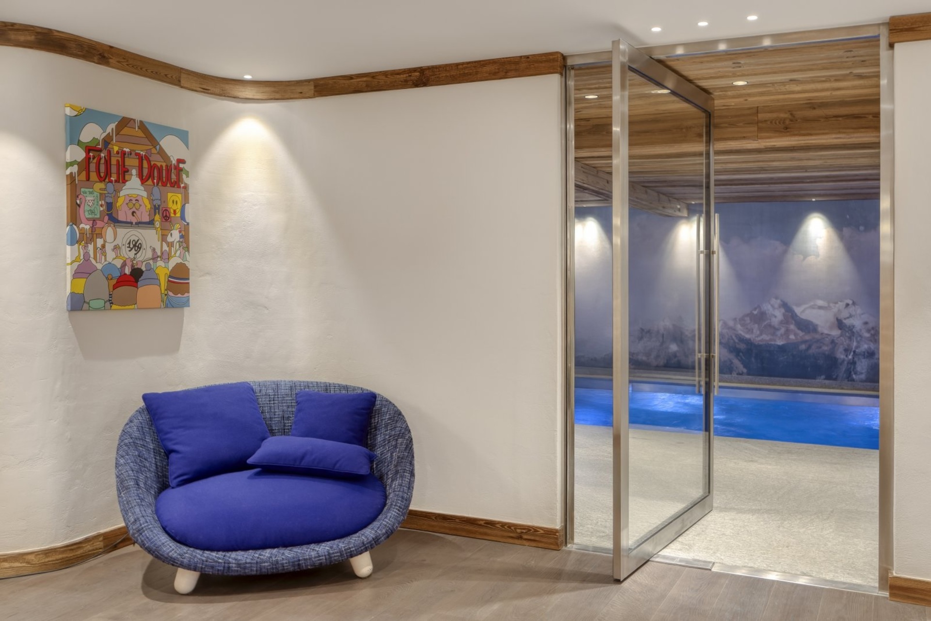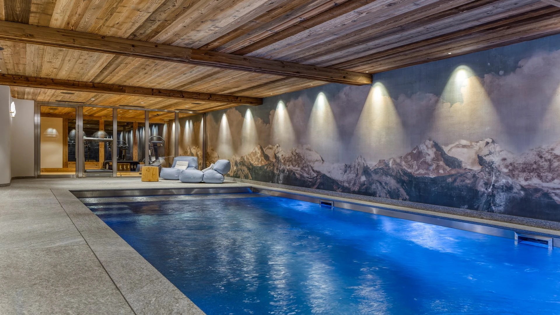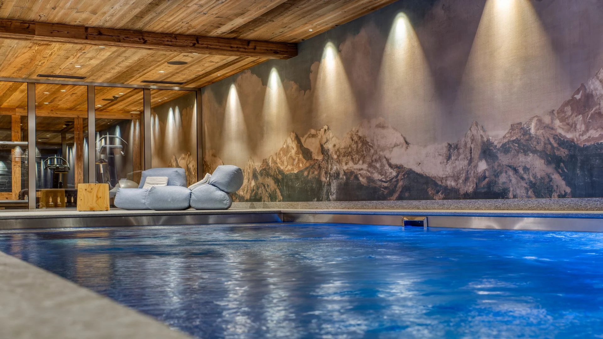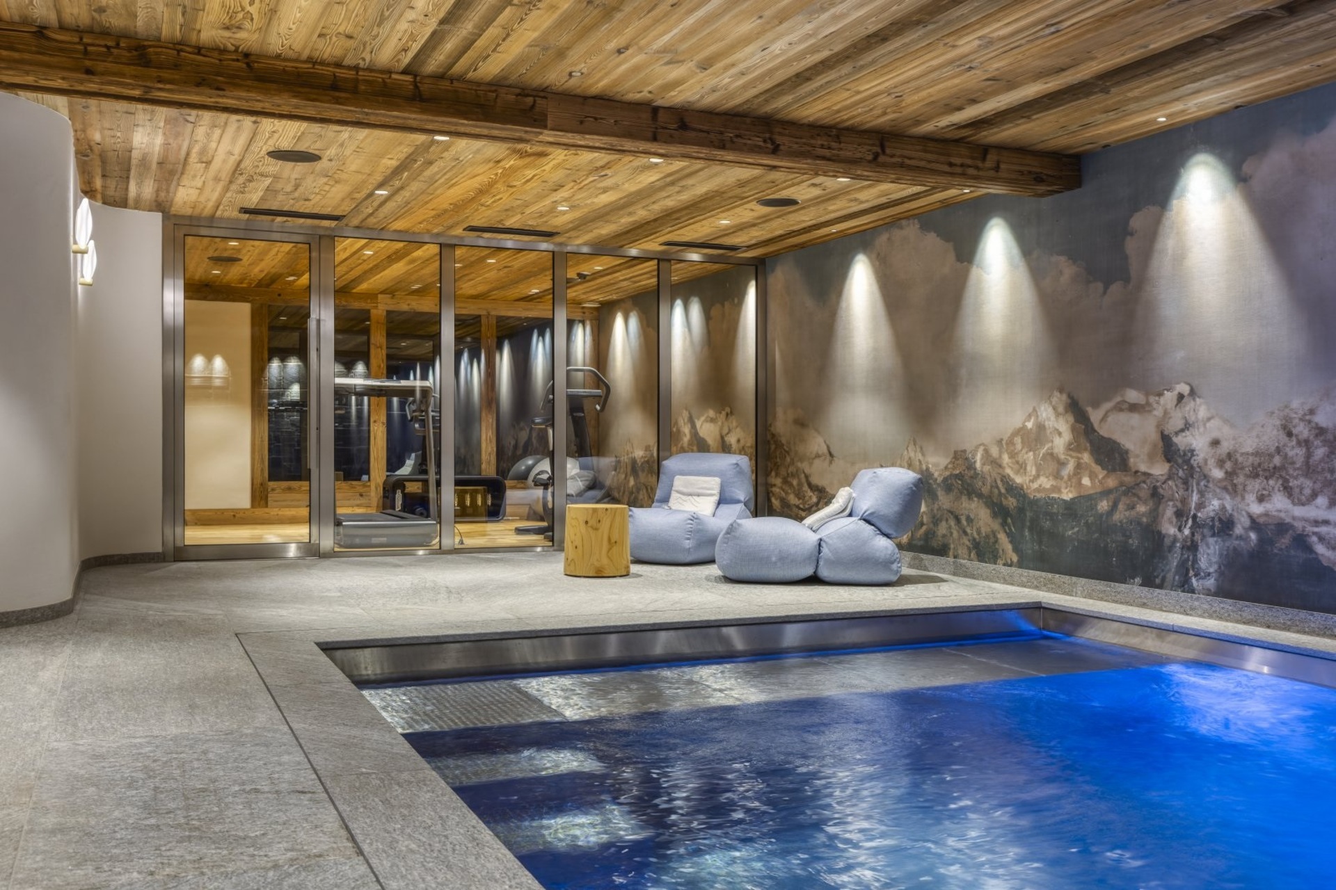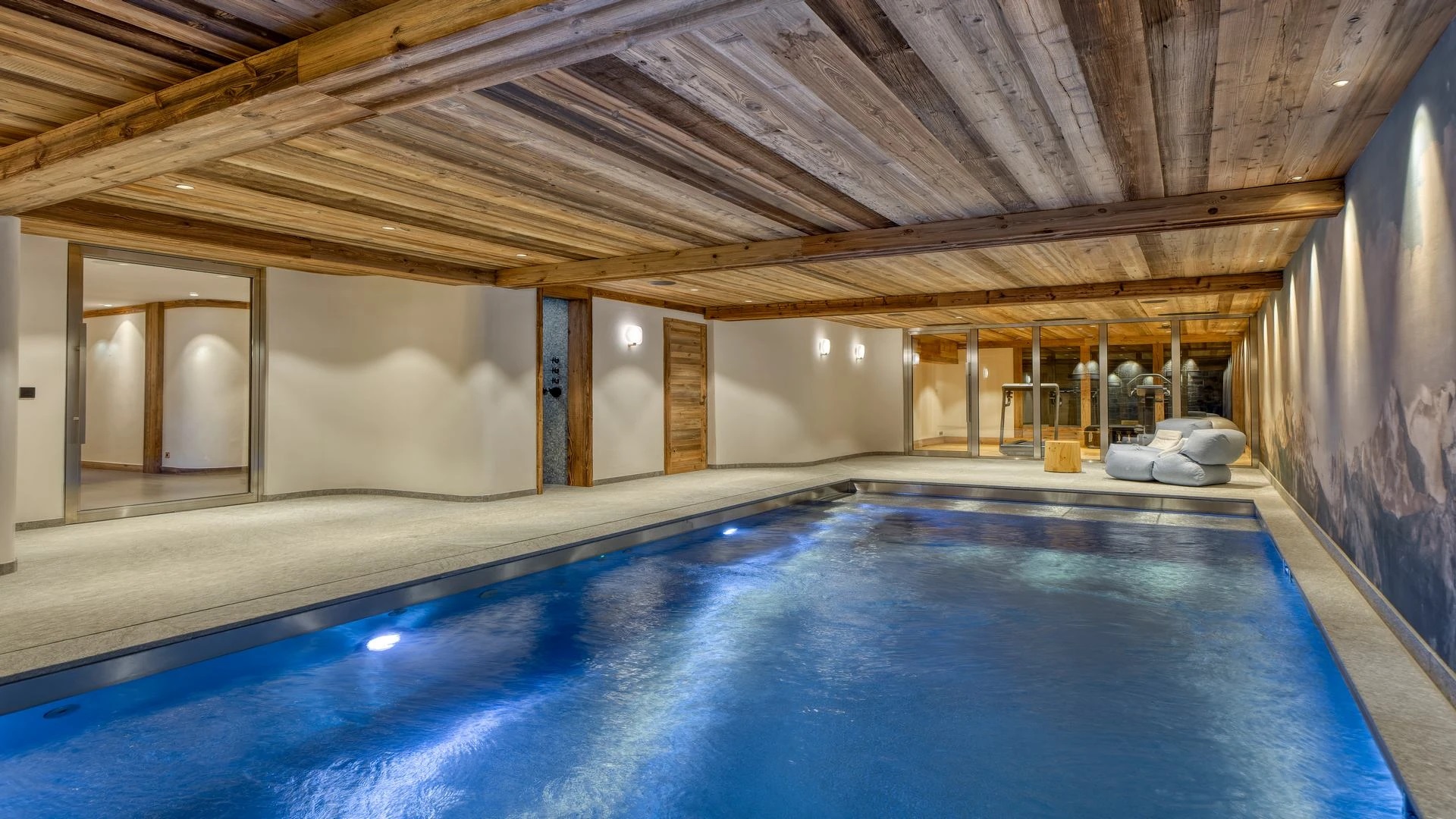 The chalet also has no lack of facilities for rejuvenation, rest, relaxation and the fitness needed to enjoy skiing to the fullest. The spa comes with an indoor swimming pool with jet streams, steam room and small gym. After visiting the wellness area, evenings can be spent in the cinema room, which is located next to the fitness room. To make a stay as pleasant as possible, luxury ski holiday chalet furthermore has a ski room, laundry room and four garage parking spaces.