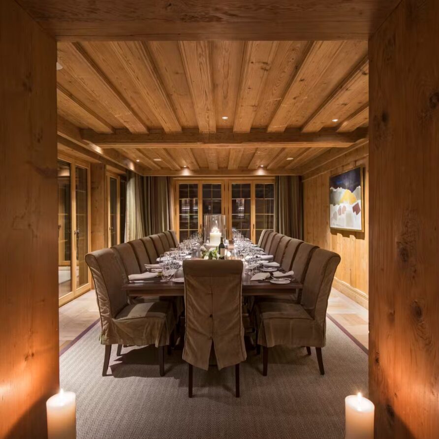 The chalet blending classic Swiss chalet architecture with stately British interior design to expert effect, this chalet comes with multiple living areas, fantastic spa and entertainment facilities and awe-inspiring views for everything you could ever wish for on a luxury ski holiday. With space for 16 adults and 4 children, this is the perfect chalet for extended families and larger groups.