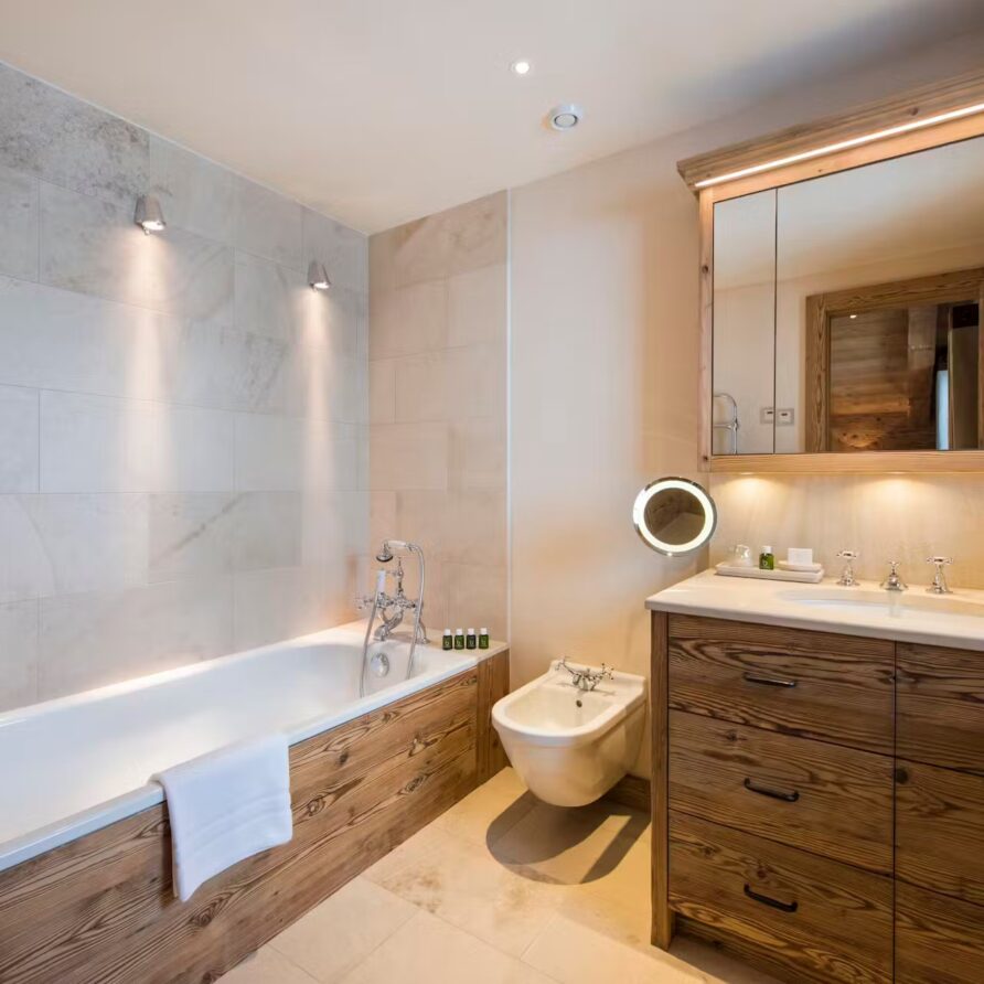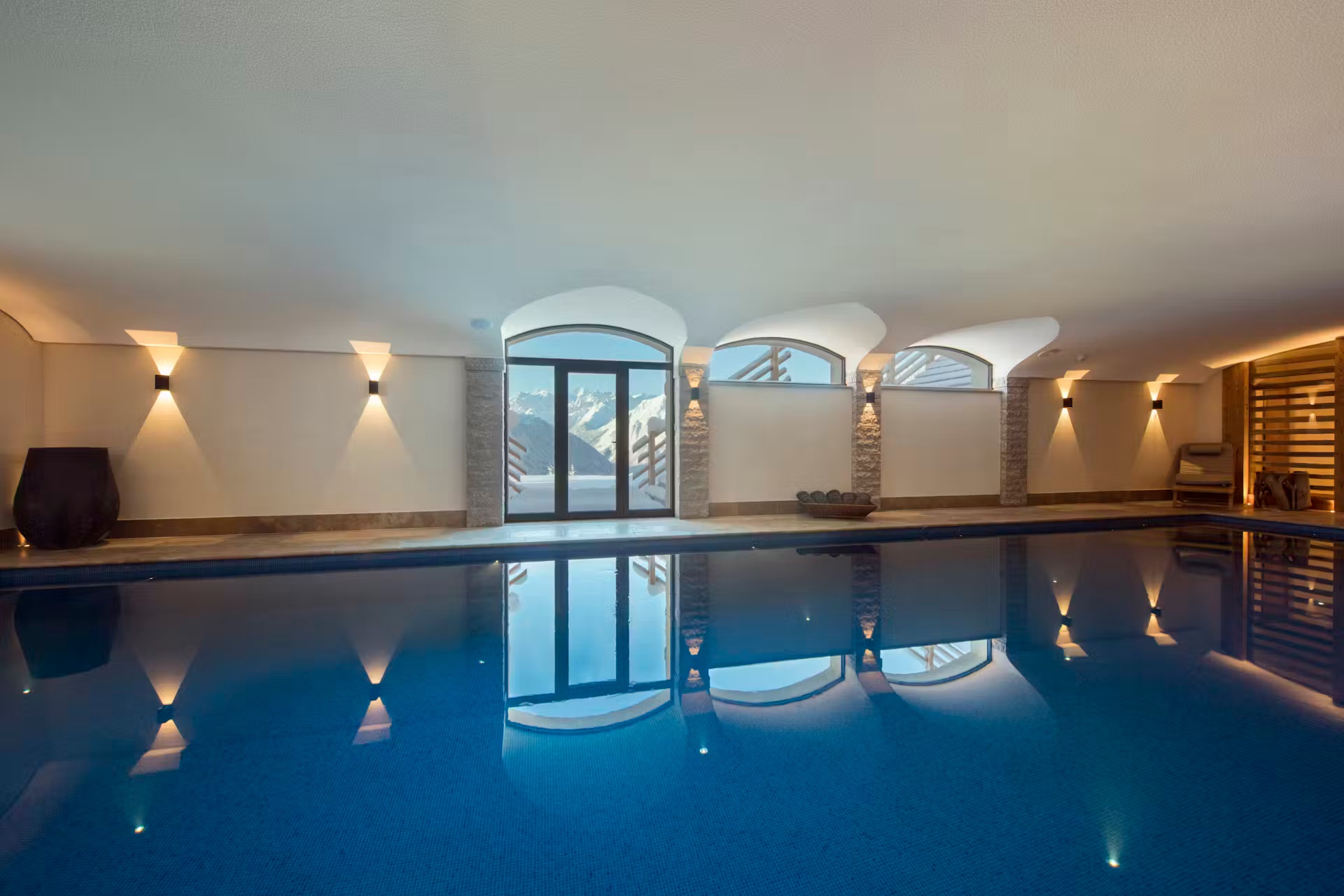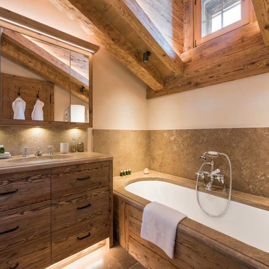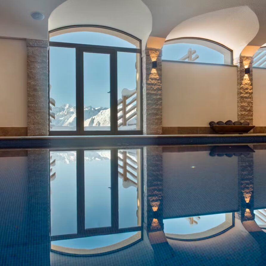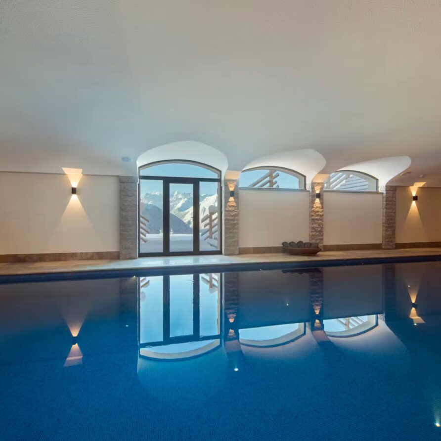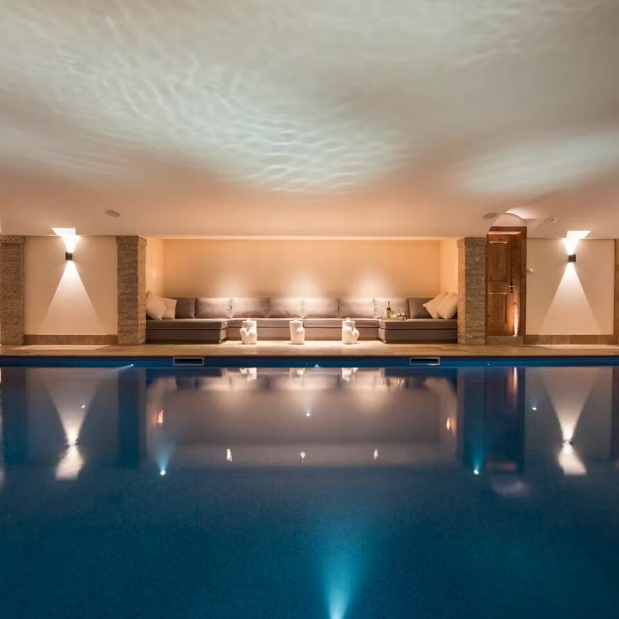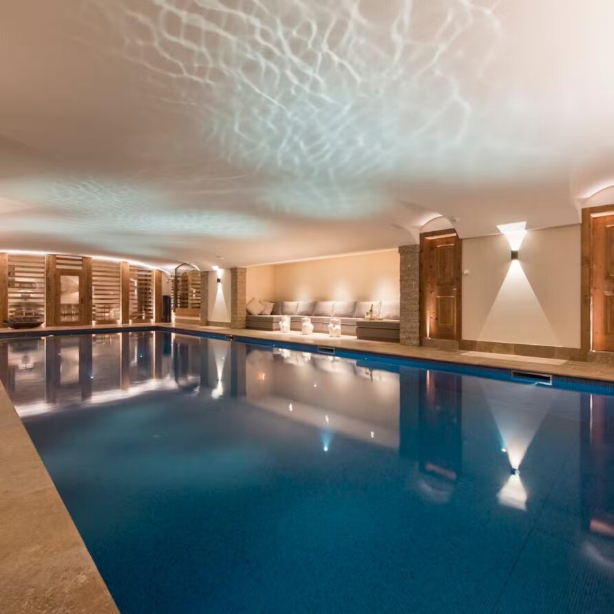 The spa facilities on offer at the chalet are some of the best. Head to the ground floor where you will find a 15m swimming in a cavernous room with plenty of extra space for relaxing beside it when not taking a dip. A hammam close by is also on hand for some stress-reducing ski recovery and cleansing treatments. Outside, a bubbling hot tub sunken into the ground not only provides a soothing spot for a relaxing dip, but also some of the most impressive scenery you can imagine.