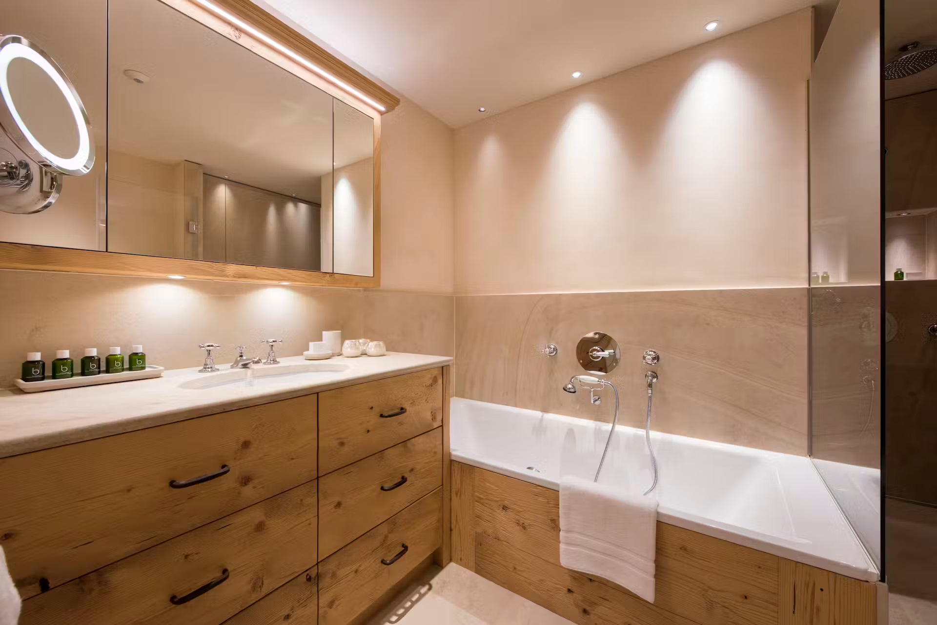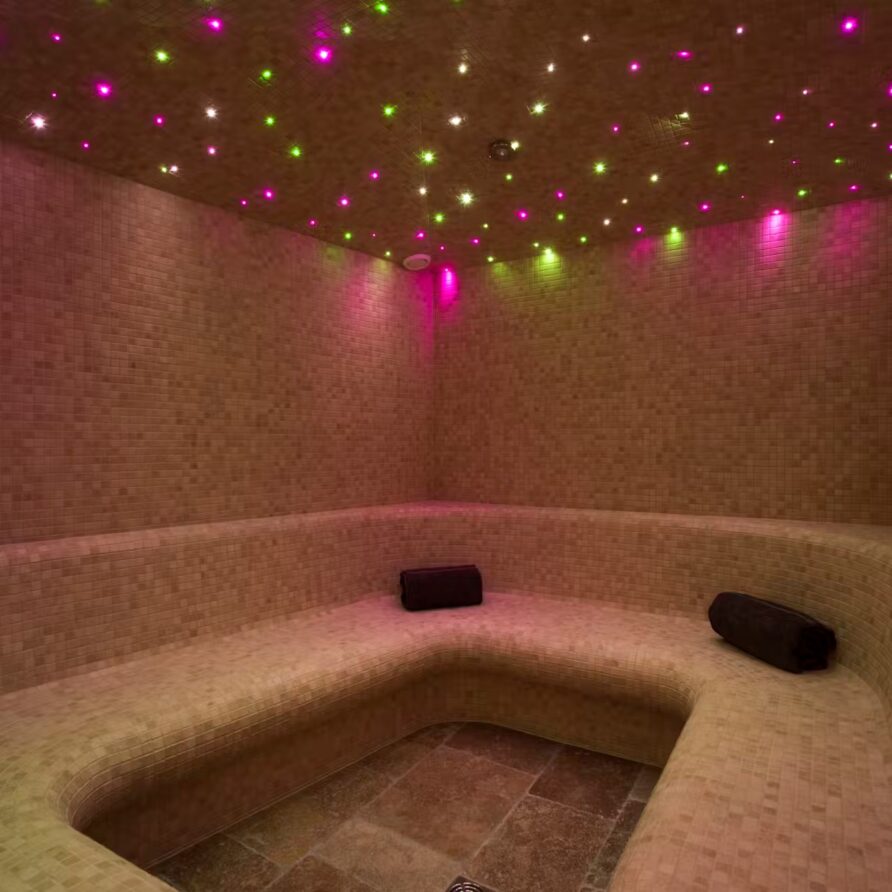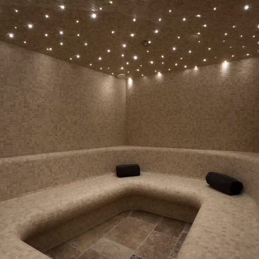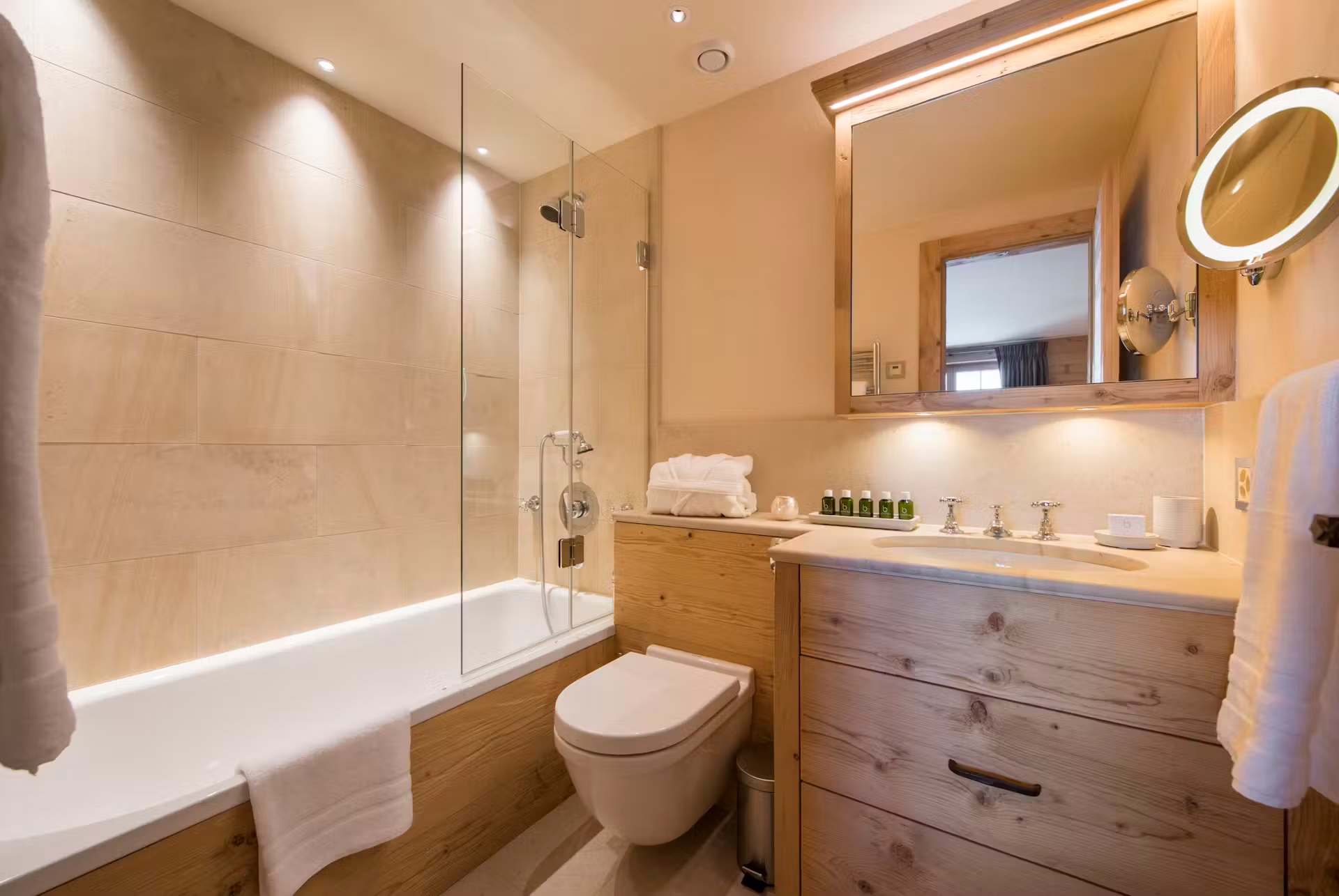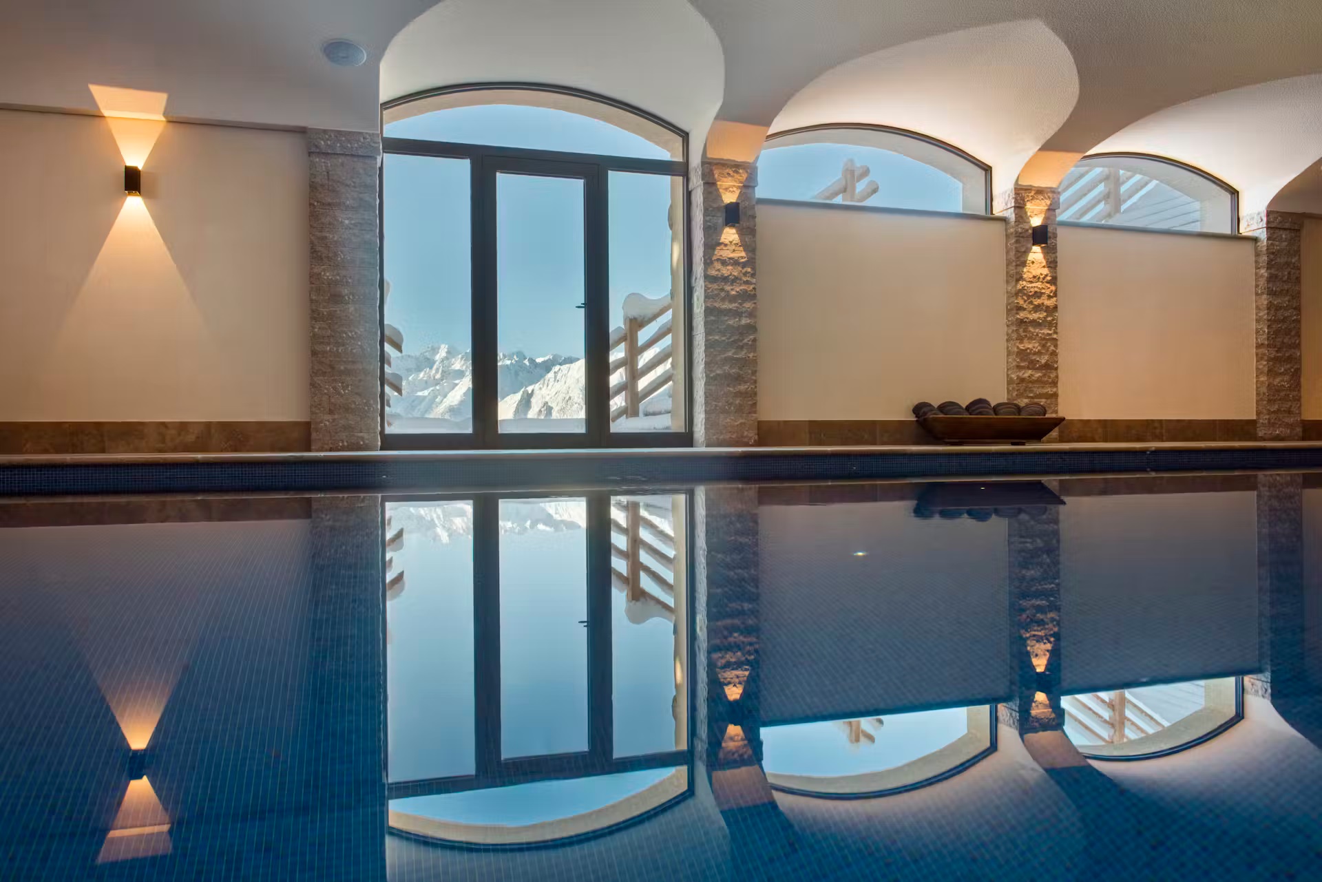 The spa facilities on offer at the chalet are some of the best. Head to the ground floor where you will find a 15m swimming in a cavernous room with plenty of extra space for relaxing beside it when not taking a dip. A hammam close by is also on hand for some stress-reducing ski recovery and cleansing treatments. Outside, a bubbling hot tub sunken into the ground not only provides a soothing spot for a relaxing dip, but also some of the most impressive scenery you can imagine.