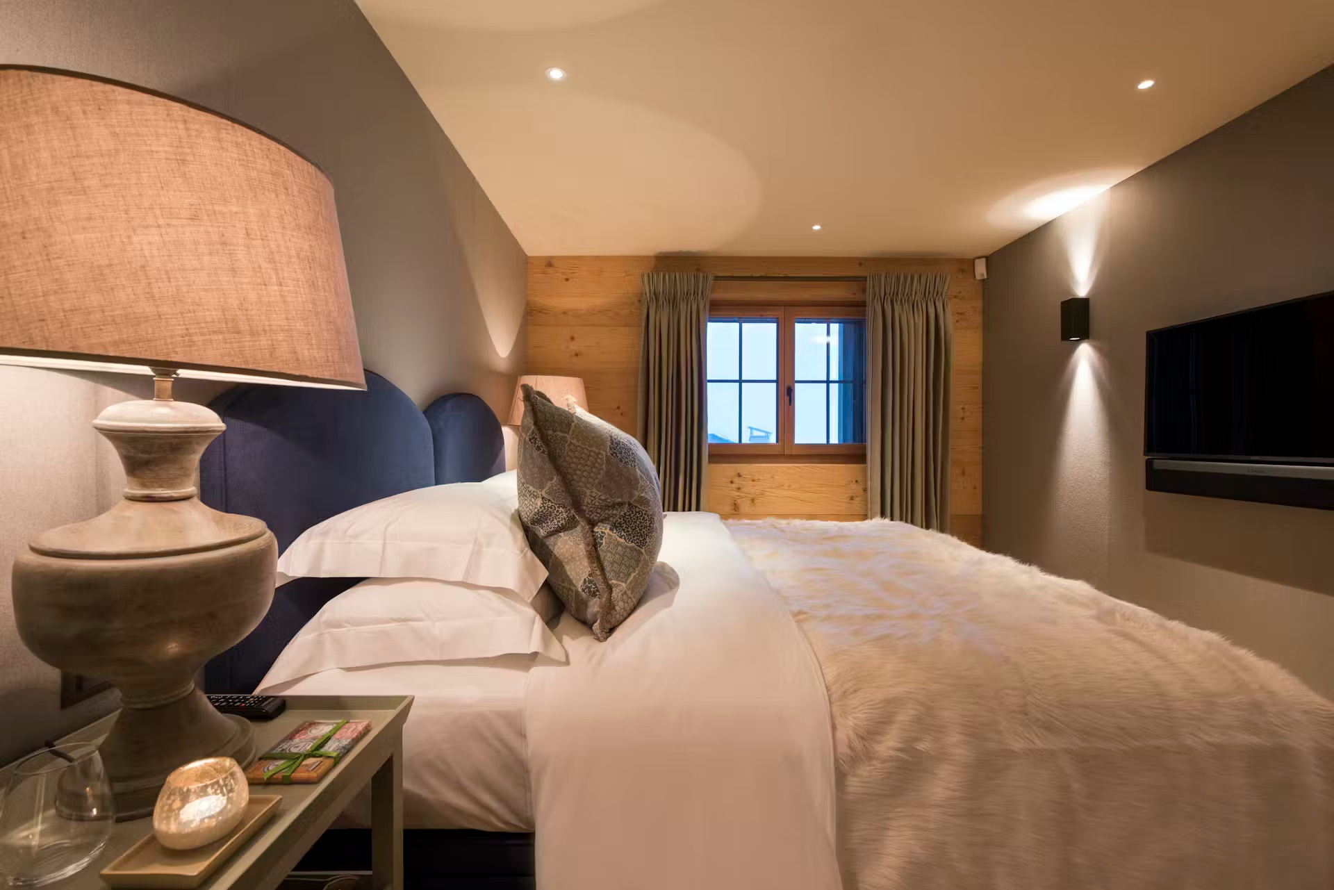 The chalet also has lots on offer for an evening of entertainment. The chalet cinema room provides comfortable chairs to sink into as you watch your favorite blockbuster film. If the movie choice of the night is not for you, you can always head next door to the vibrant TV lounge, where a bar and wine cellar will provide the drinks for the night.