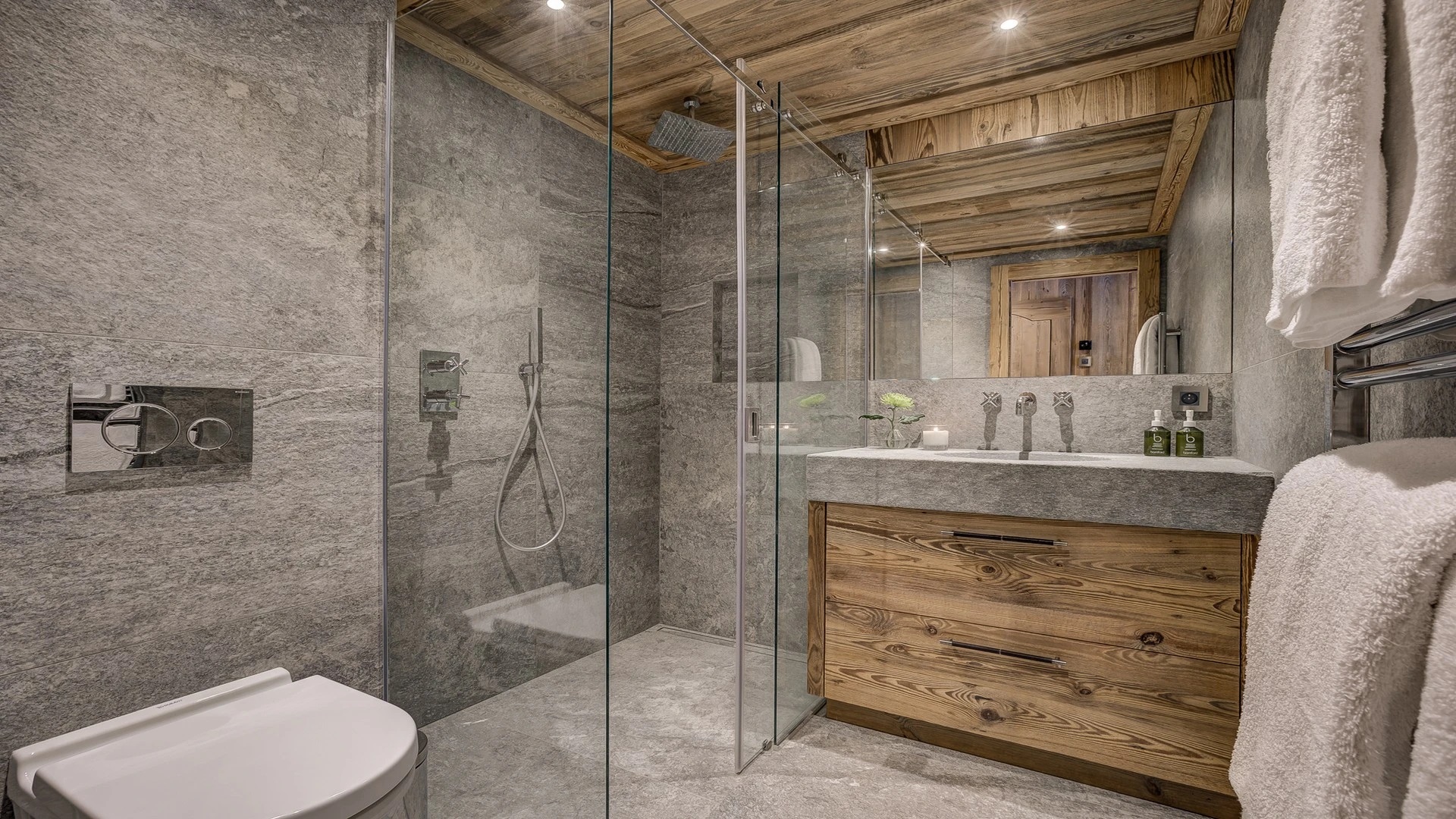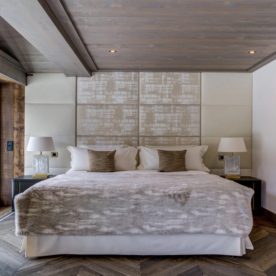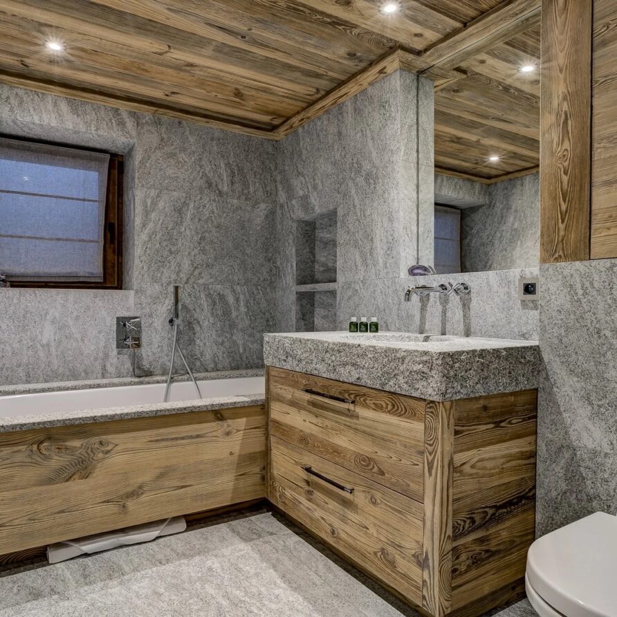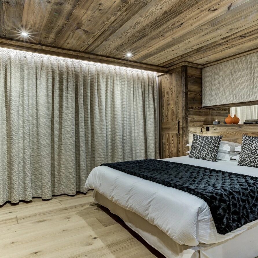 The chalet has six bedrooms and can accommodate up to 14 guests, perfect for groups and families. The luxurious mountain chalet has been built with a mix of traditional materials mixed with a lovely design and exclusive finishes.