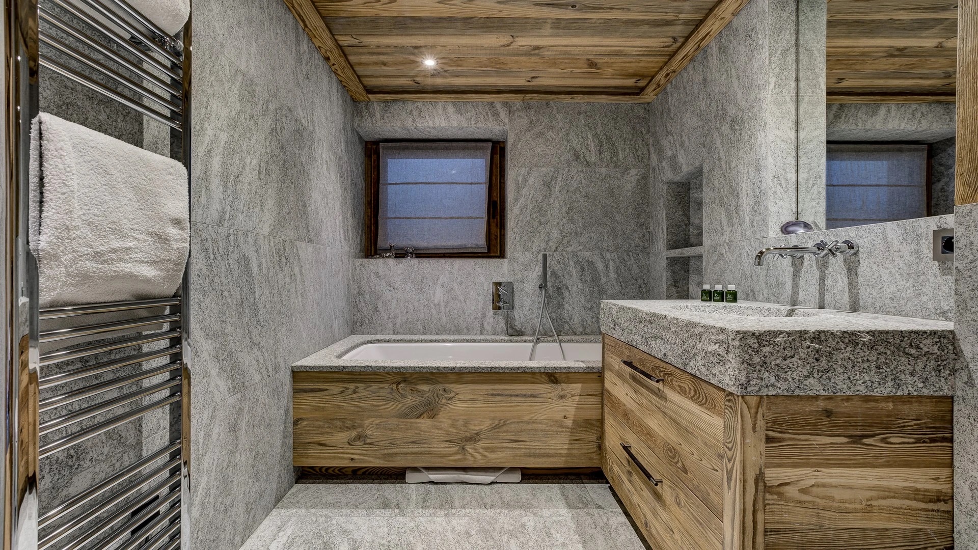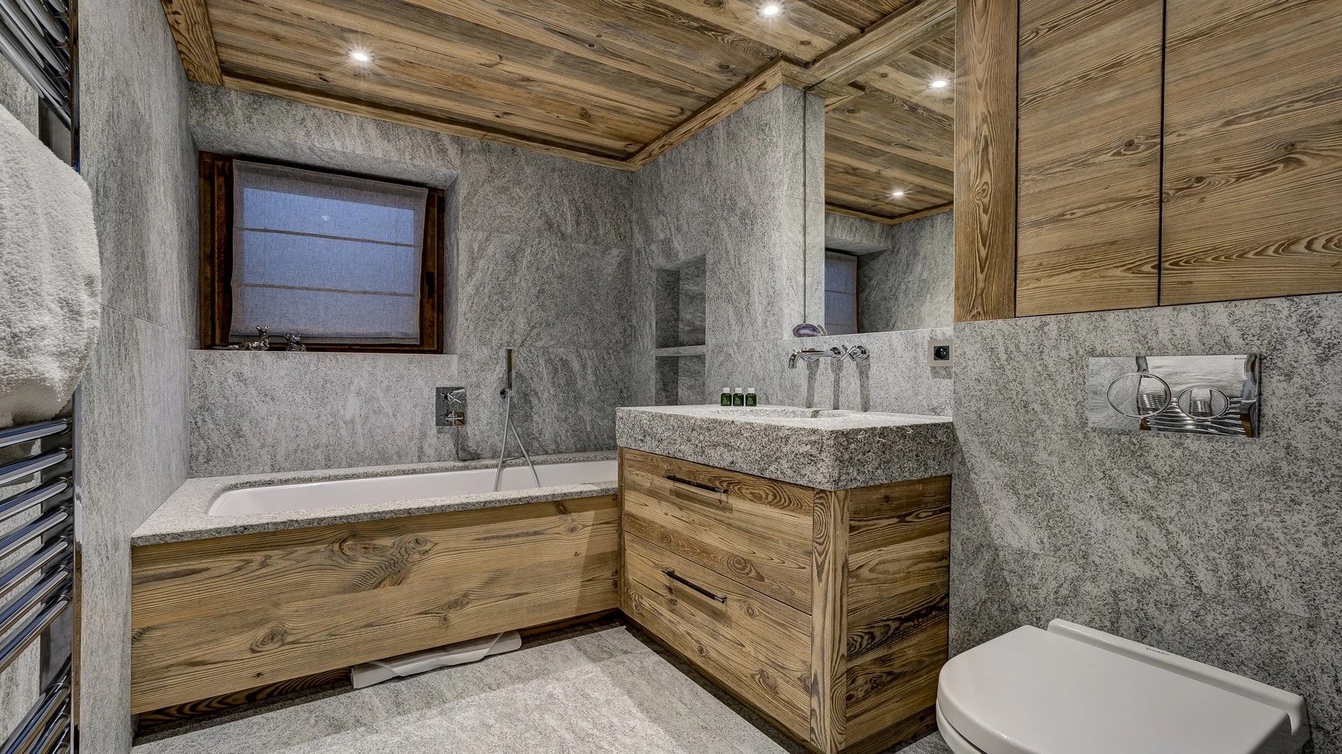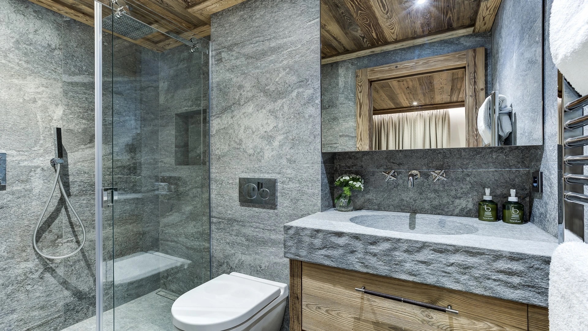 The chalet has six bedrooms and can accommodate up to 14 guests, perfect for groups and families. The luxurious mountain chalet has been built with a mix of traditional materials mixed with a lovely design and exclusive finishes.