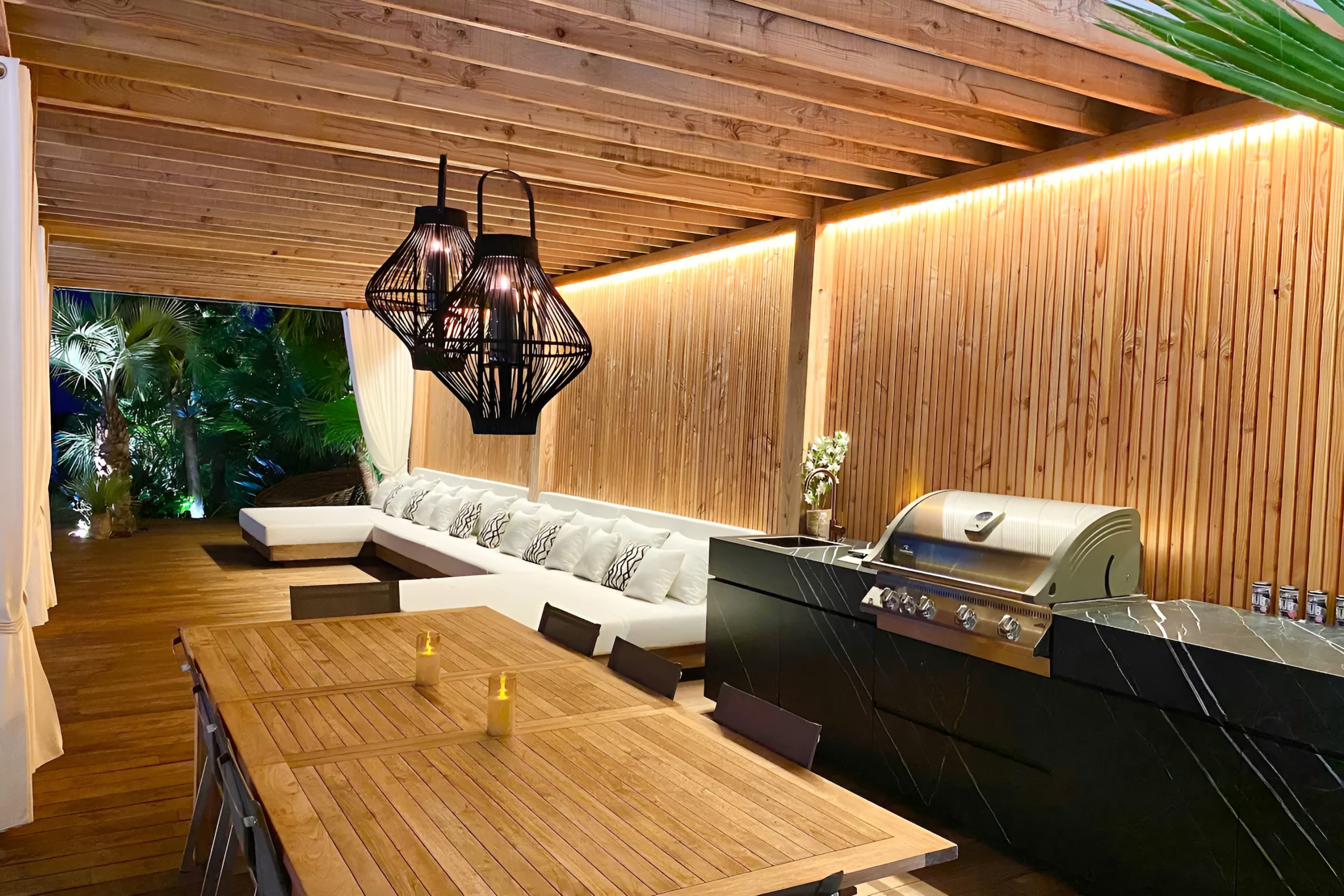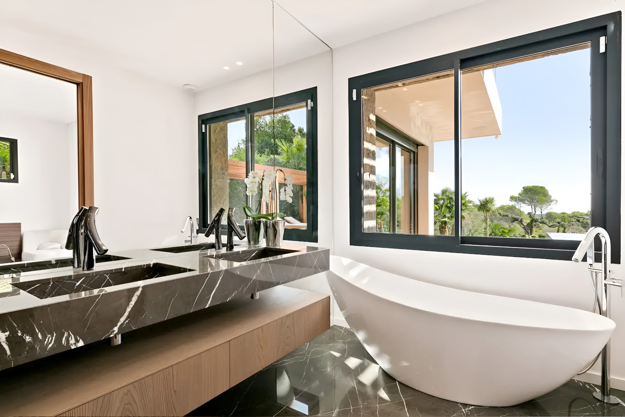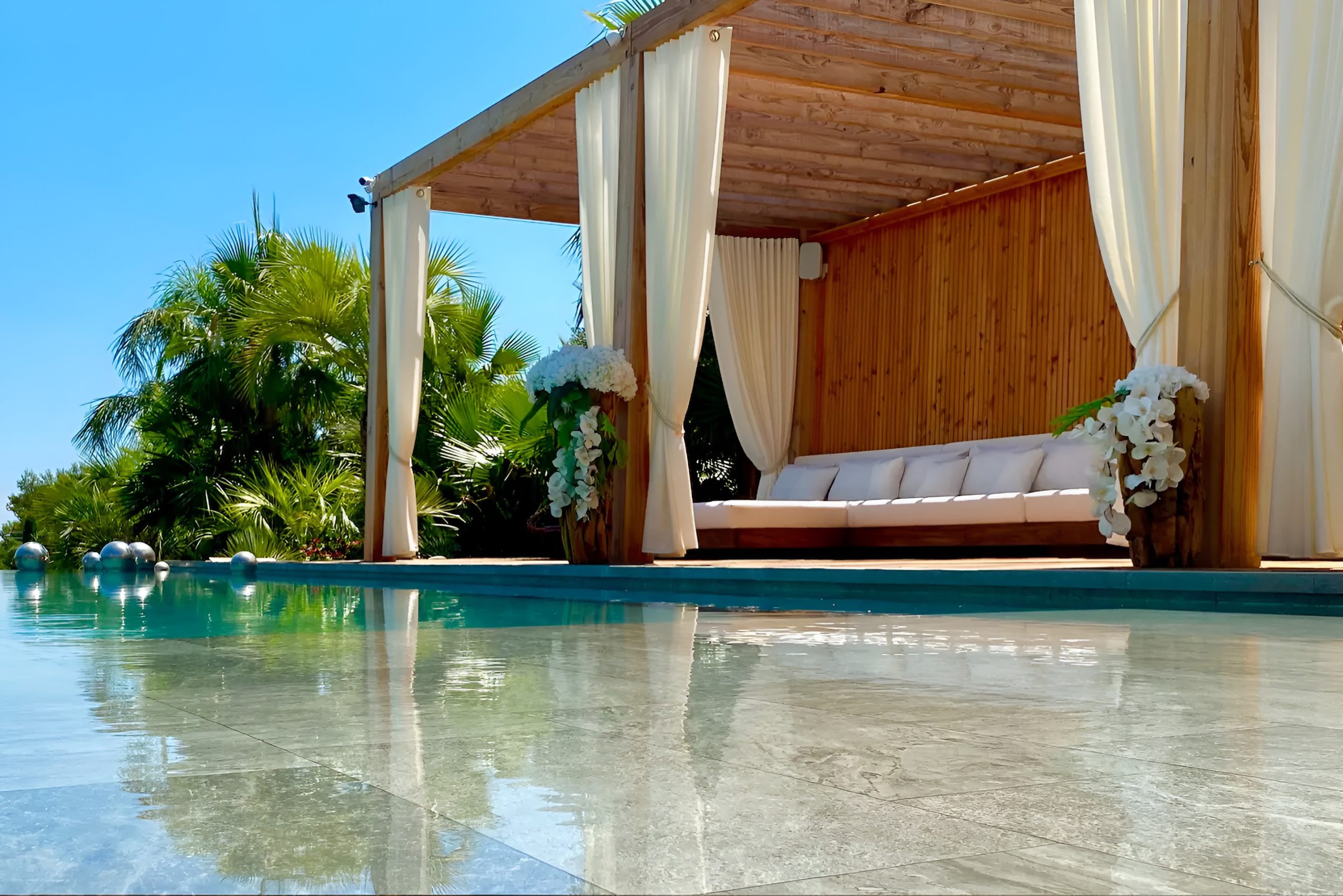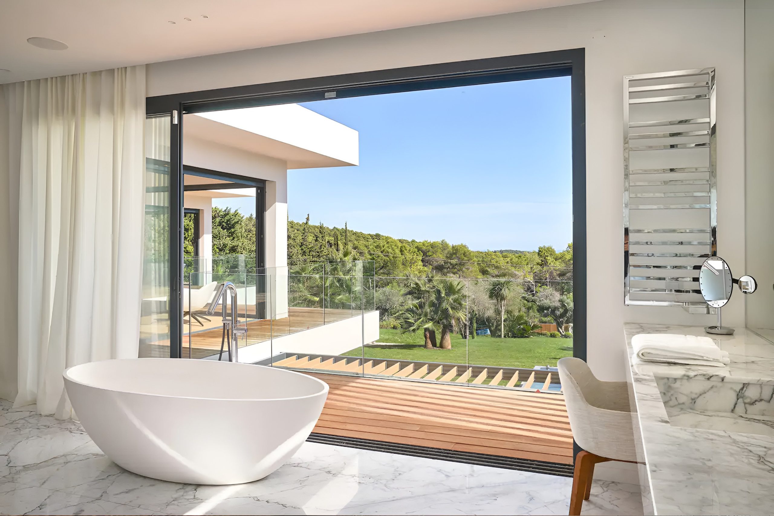 Beautiful location, style and decor. The calm and beauty of the place are a major asset; the swimming pool is very pleasant. Not to say that it is worth every money for the extra amenities like cinema room, gym etc… Lovely bedrooms, great terrace, green garden. In one word, PERFECTION.