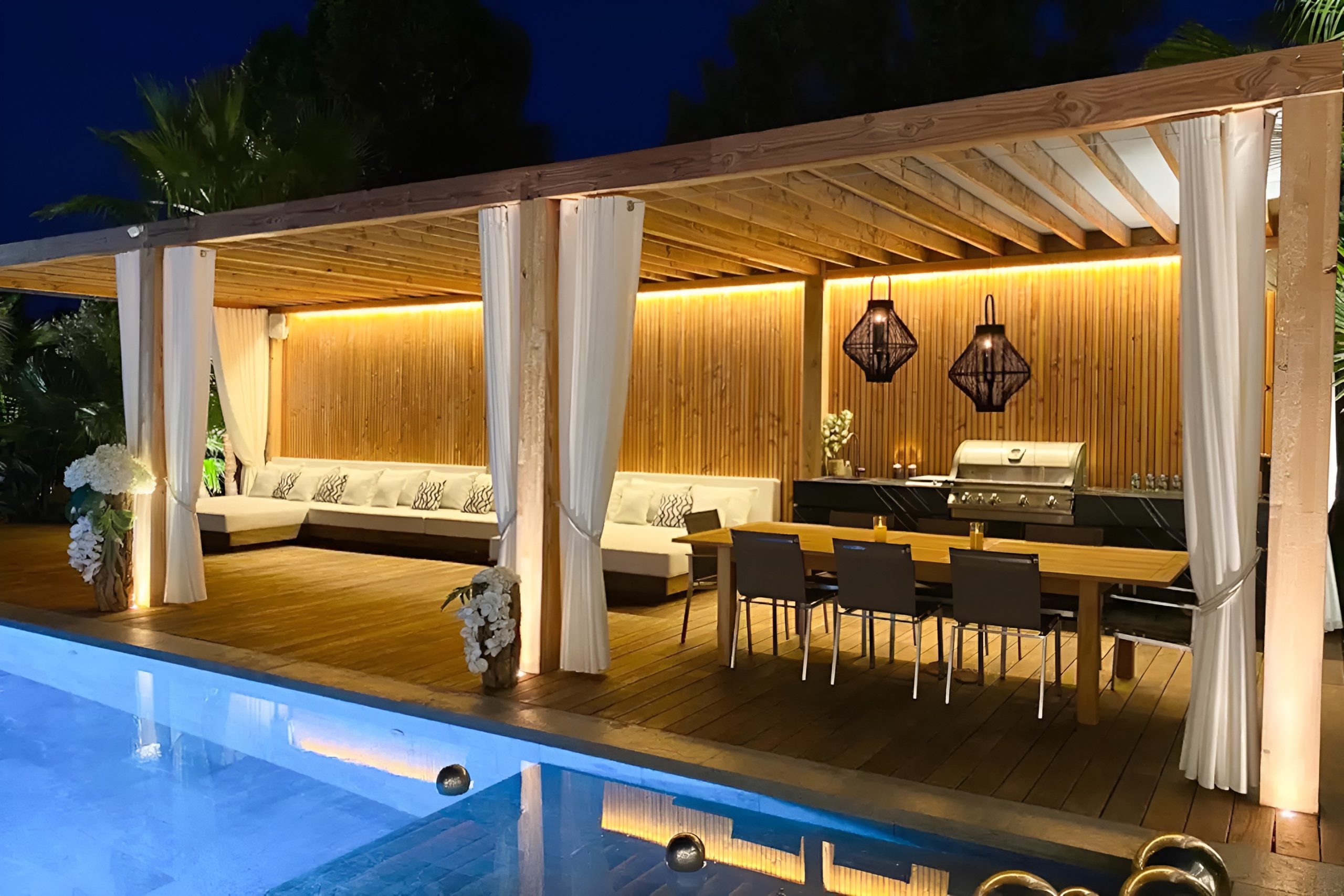 The villa is great, spacious and modernly furnished. It has everything you need, the pool and terrace are amazing. It also has a gym and a large garage that can fit several cars.