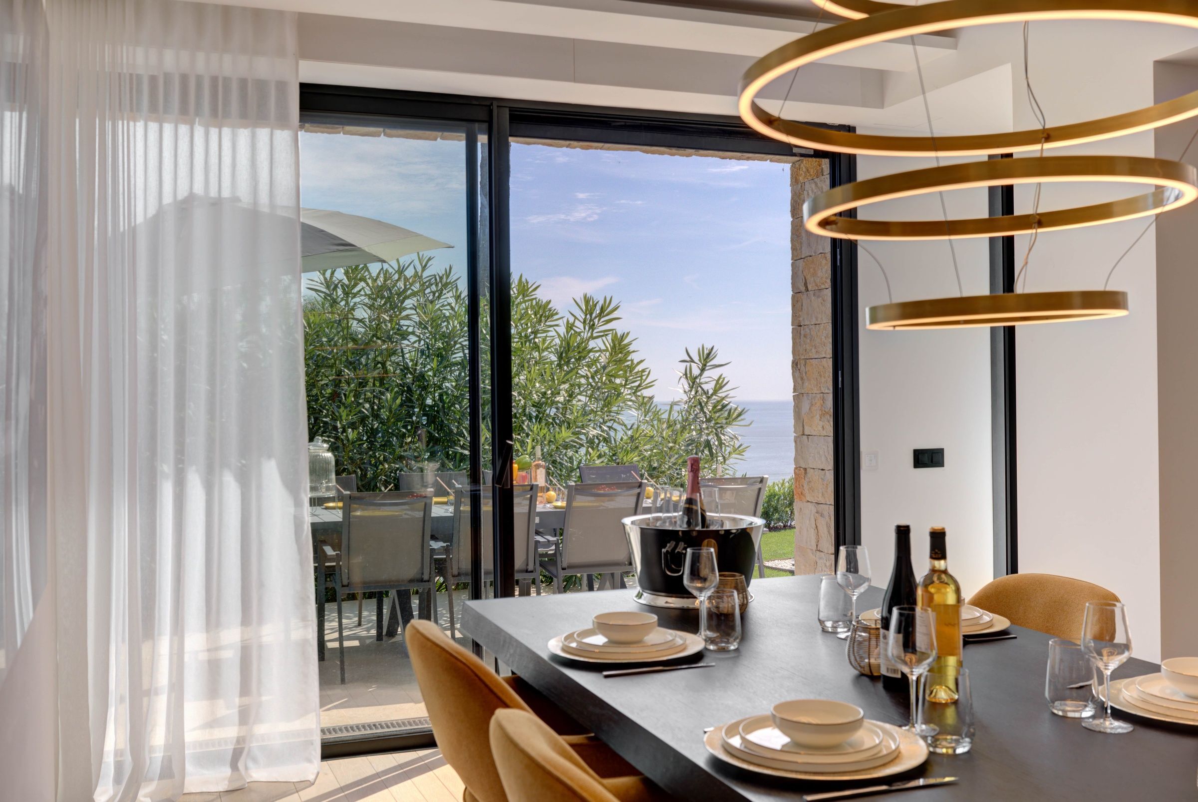The villa can accommodate ten guests in five bedrooms with large beds, en-suite bathrooms and wonderful sea views. The master bedroom also has a spacious terrace, a place where you can relax and quietly admire the view that this location has to offer.