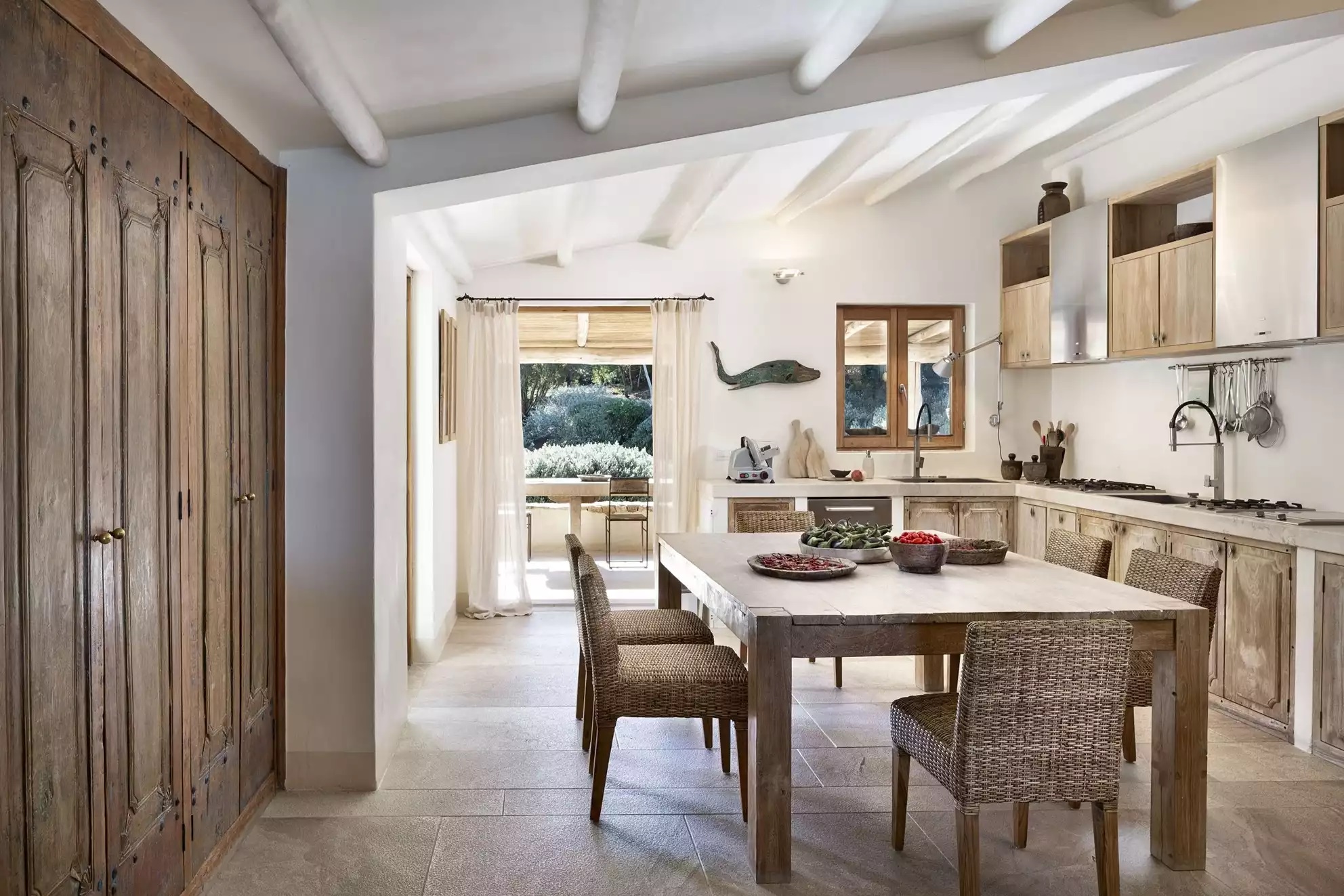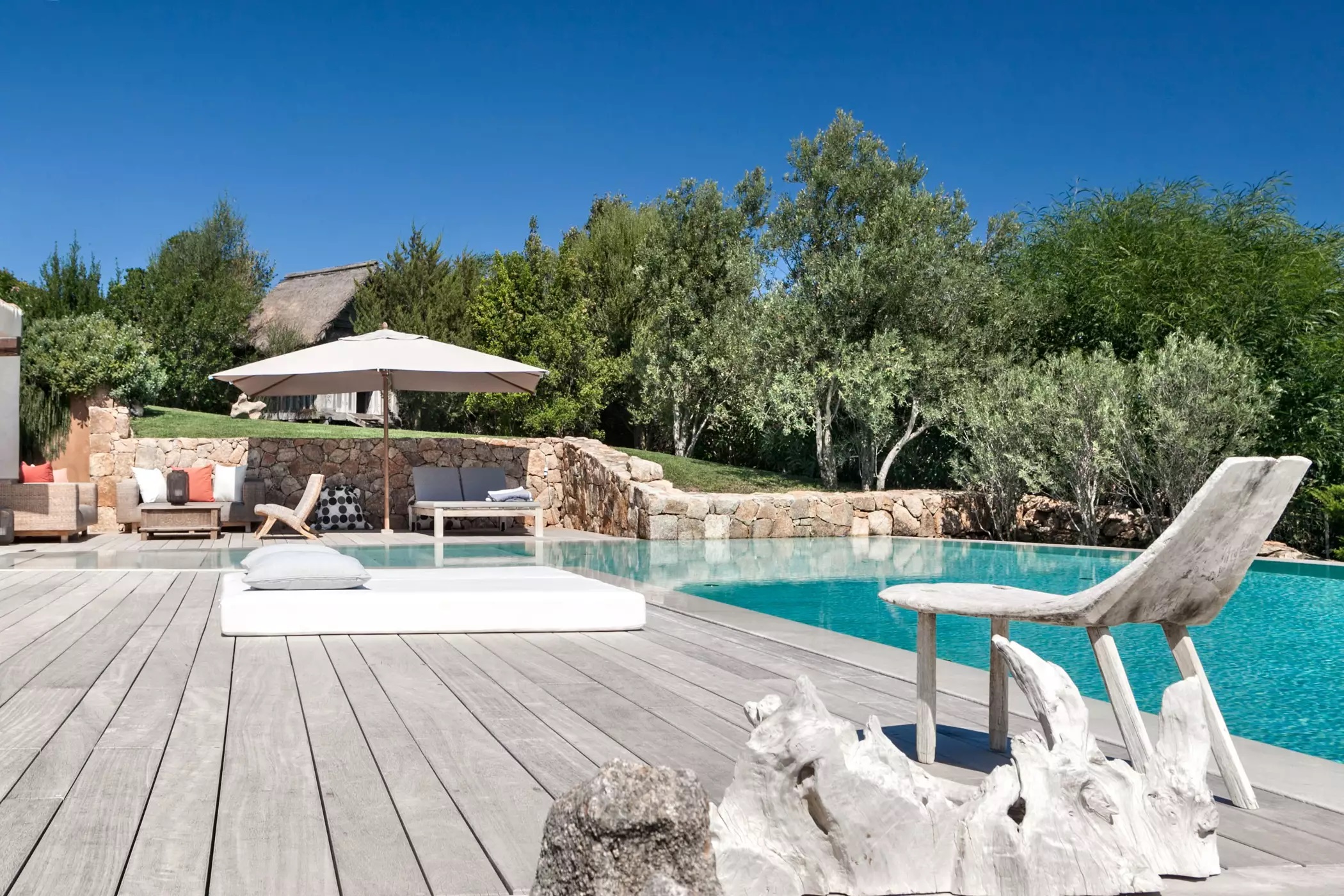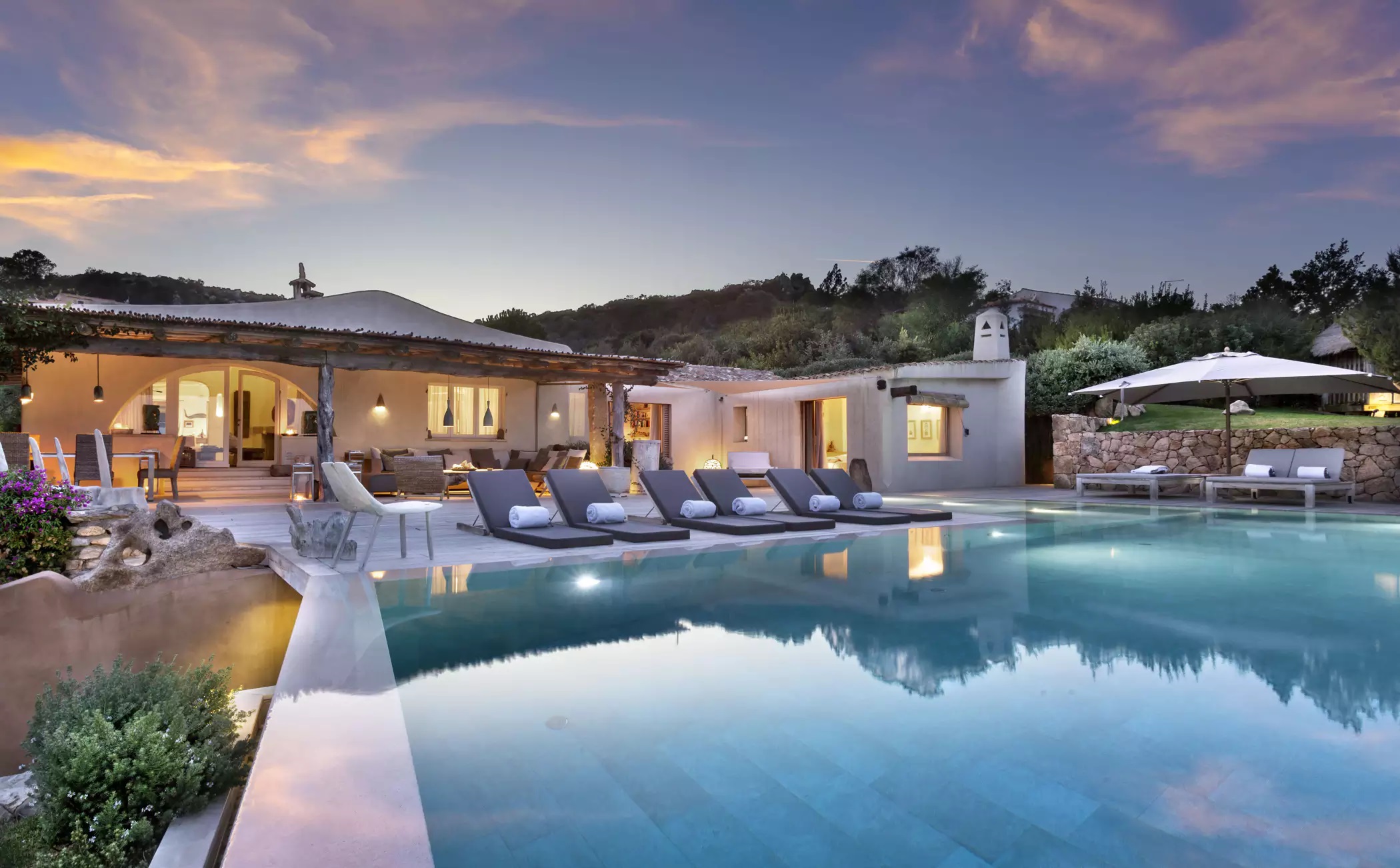 Luxury Villa Capri with Pool has a big living room and a large private terrace, furnished with tables and chairs from where you can admire a beautiful view of the sea. Here, you will also find an outdoor kitchen, well and fully equipped and an outdoor dining table. Around the garden, the owners have organized a private path, ideal for jogging or walks in the moonlight.