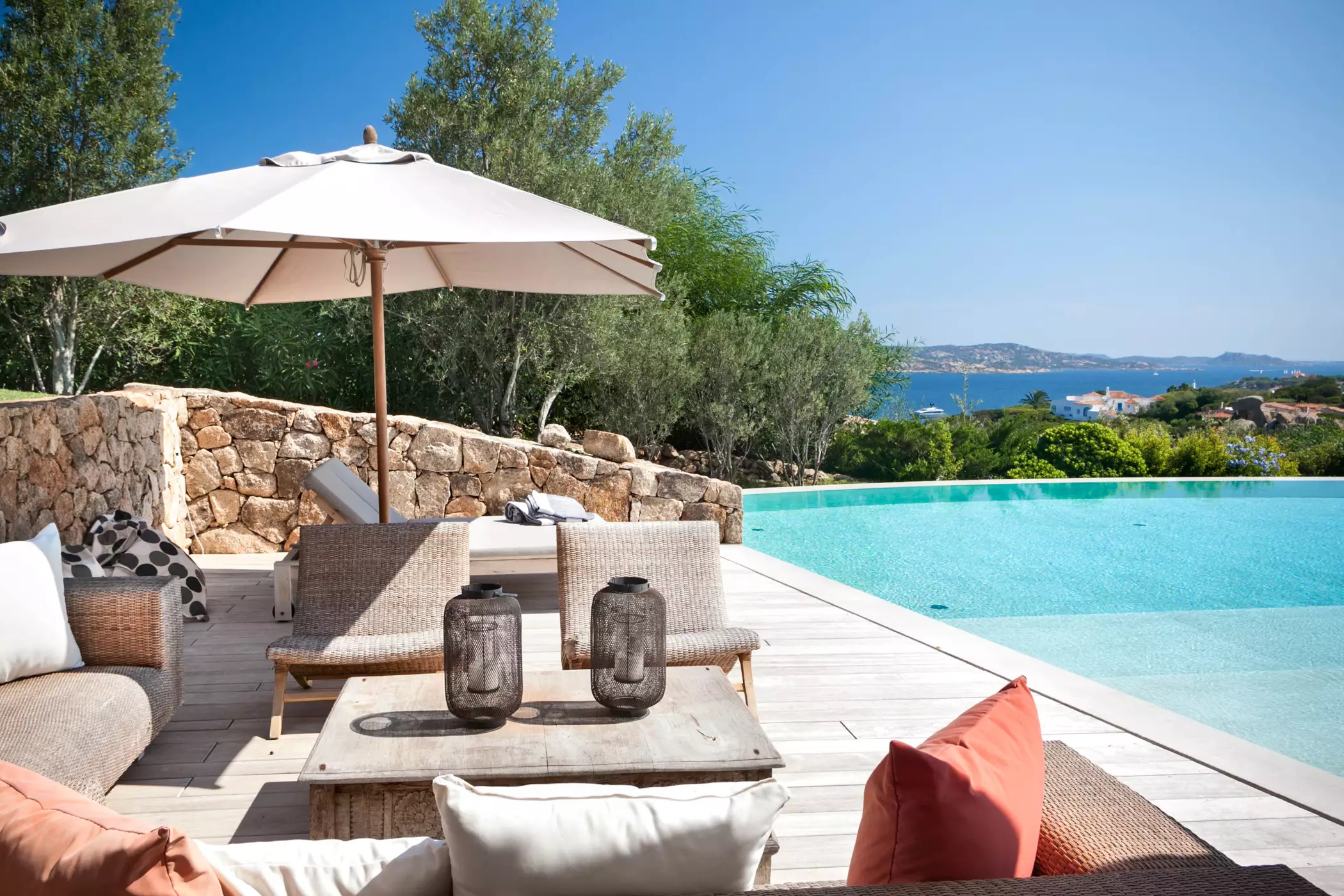 Luxury Villa Capri with Pool is a dreamy location, elegant and modern at the same time. Carefully and tastefully decorated, every thought has gone towards creating a functional luxurious space without being excessive. The trimmings and tricks the owners have used provide guests with an unforgettable stay from every aspect: from the comfortable privacy of the bedrooms, each with their private bathroom, to the bright and welcoming communal areas, refined with furnishings with soft lines and finally to the comfortable open areas with a breath taking view of the Capri island from the inside.