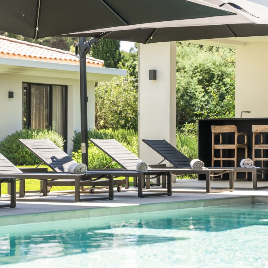 Hospitality here feels like second nature. The two main bedrooms upstairs open onto private terraces: a lounge chair, a book, the song of cicadas and the scent of jasmine floating in the air. Everything is there. A separate bedroom, just by the pool, welcomes guests seeking more seclusion.
