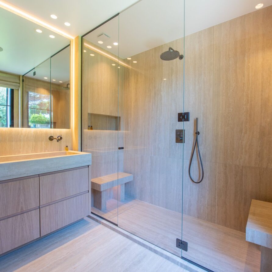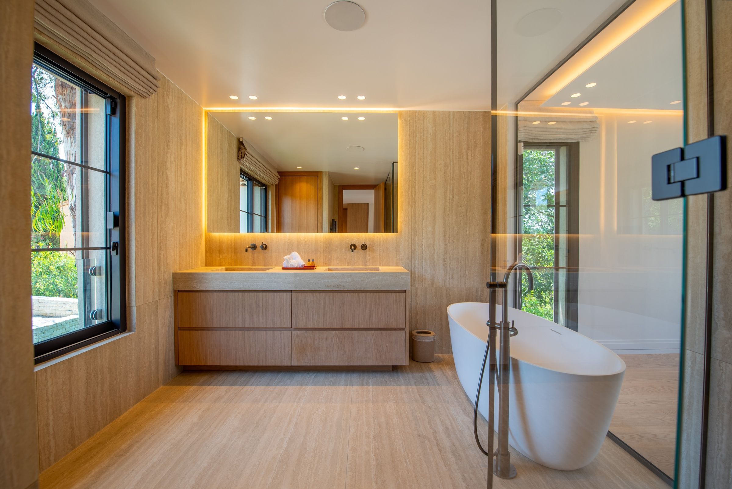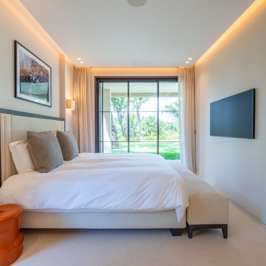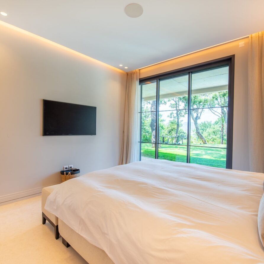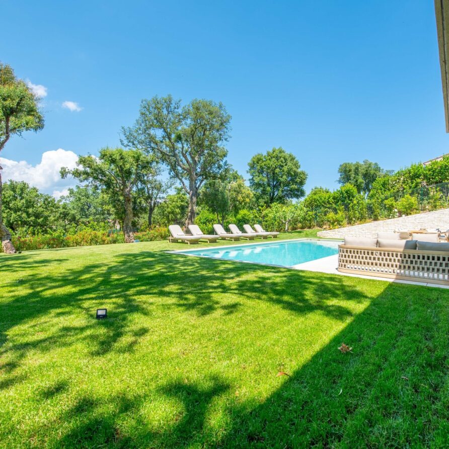 The property can comfortably accommodates 10 guests in five bedrooms, making it ideal for families or groups of friends seeking space, privacy, and elegance. The villa sits on a landscaped 2,000 m² plot, offering generous volumes, natural light, and seamless indoor-outdoor living. Clean architectural lines combined with noble materials create a warm and sophisticated Mediterranean atmosphere.