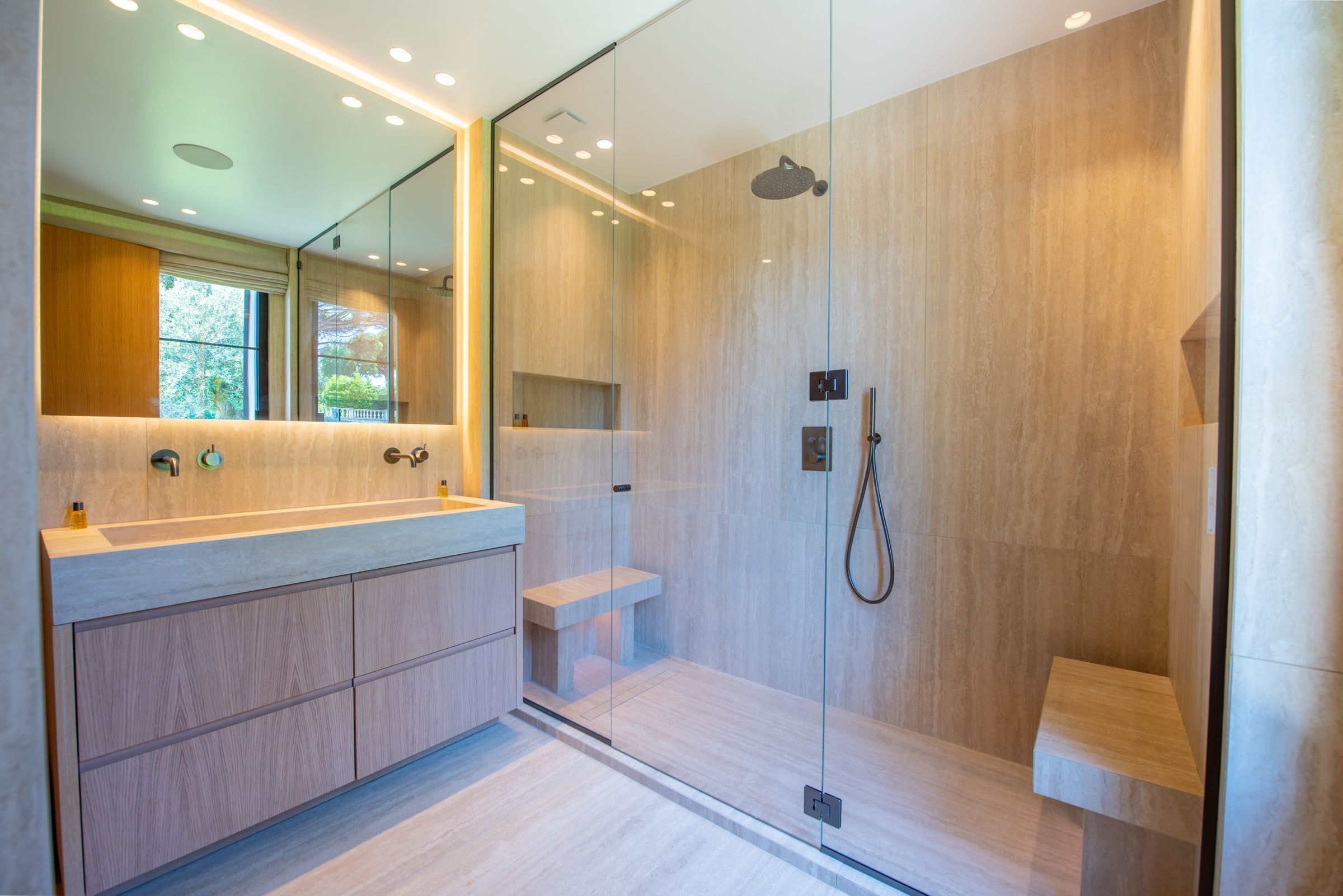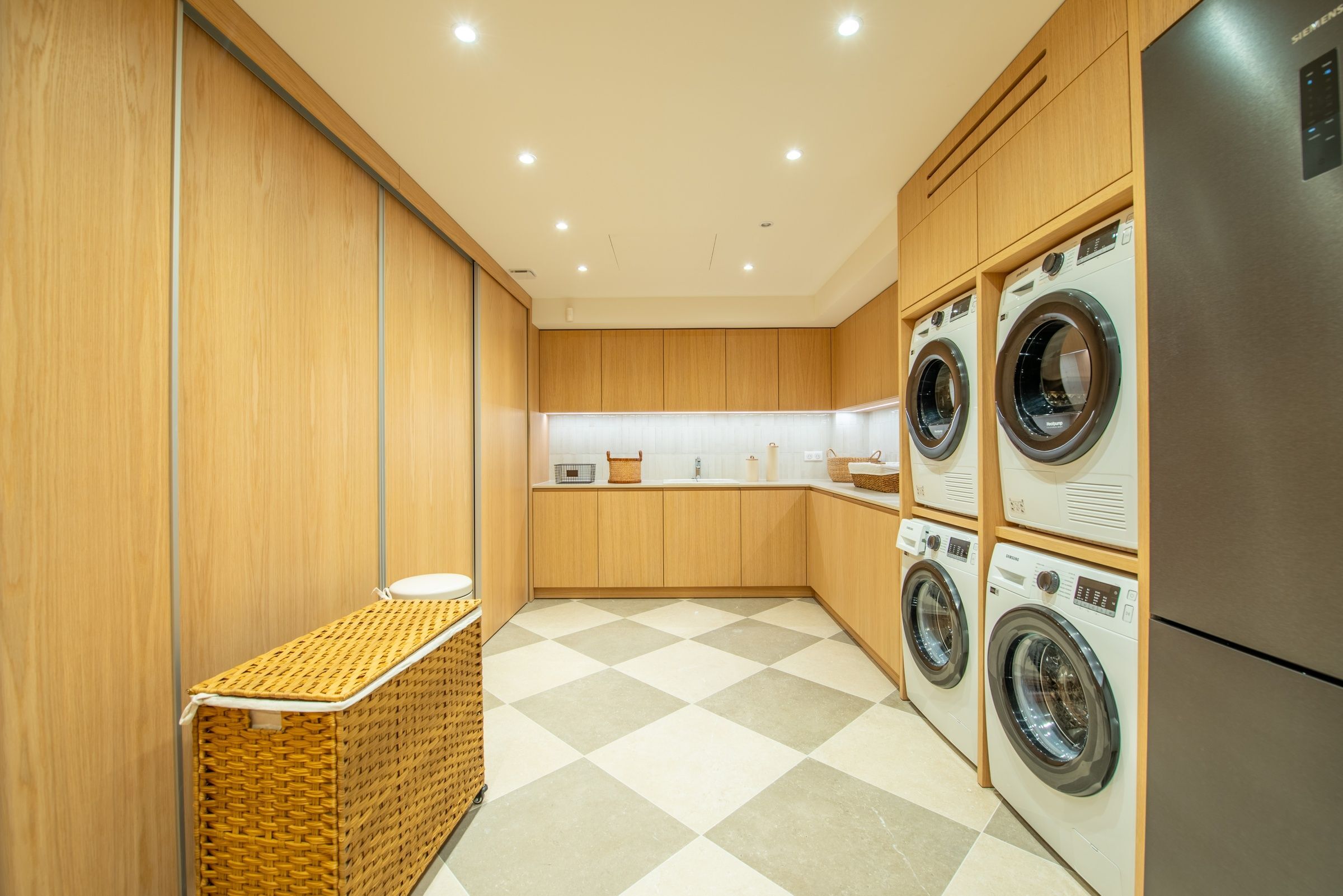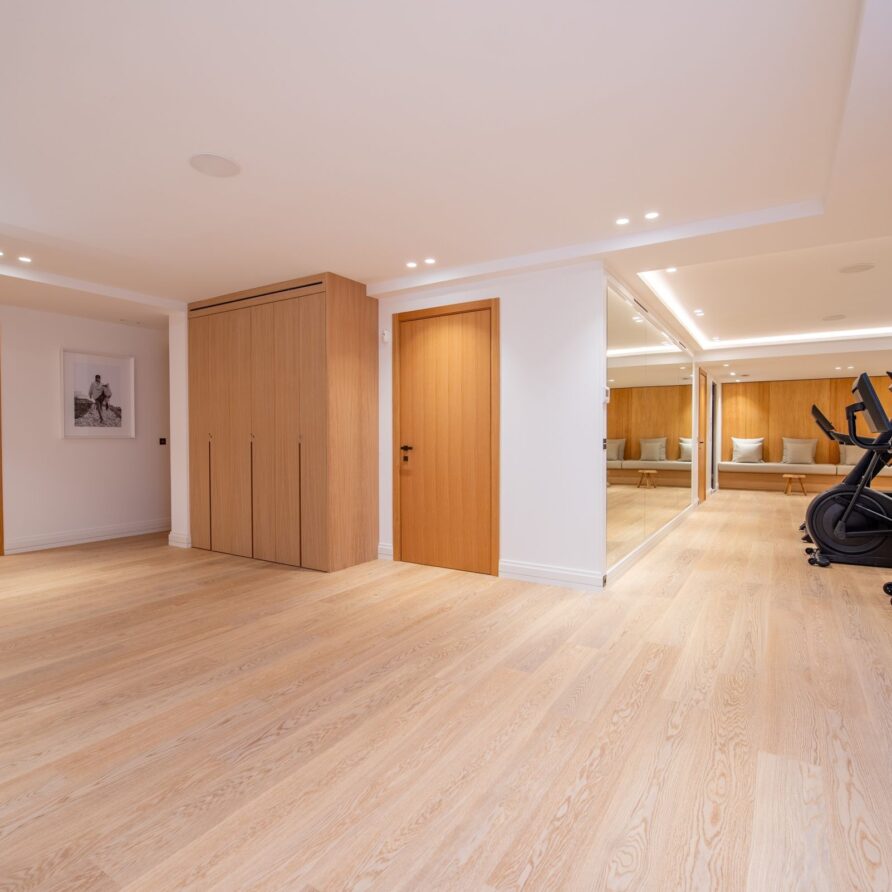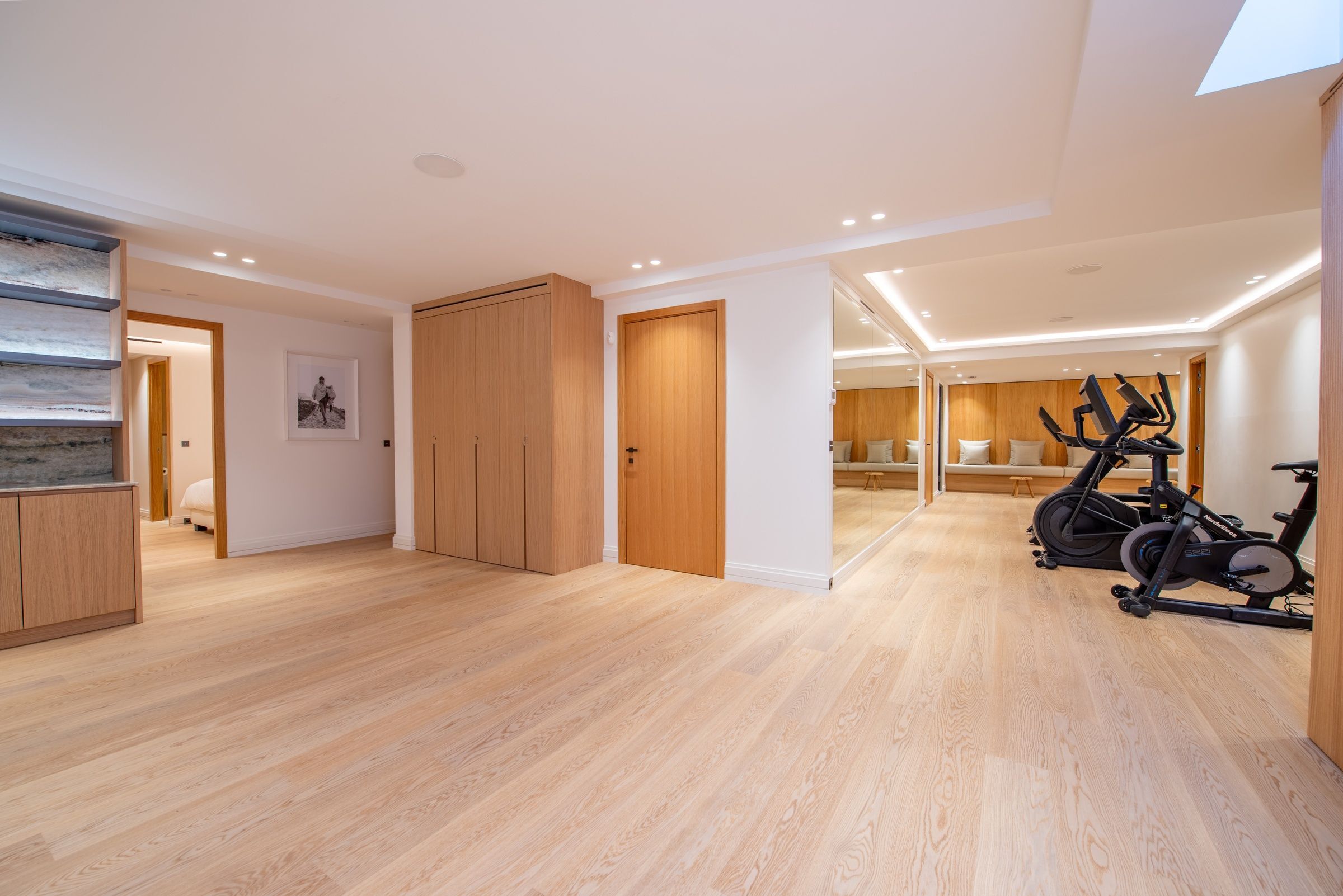 The lower Level has two elegant en-suite bedrooms with comfortable ceiling height, a semi-professional laundry room, a game and lounge area with bar, a fitness area with connected gym equipment, a complete wellness space including massage room, Hammam, relaxation area, a dedicated bathroom and a private cinema room with state-of-the-art audiovisual equipment and two large beds for a unique immersive experience.