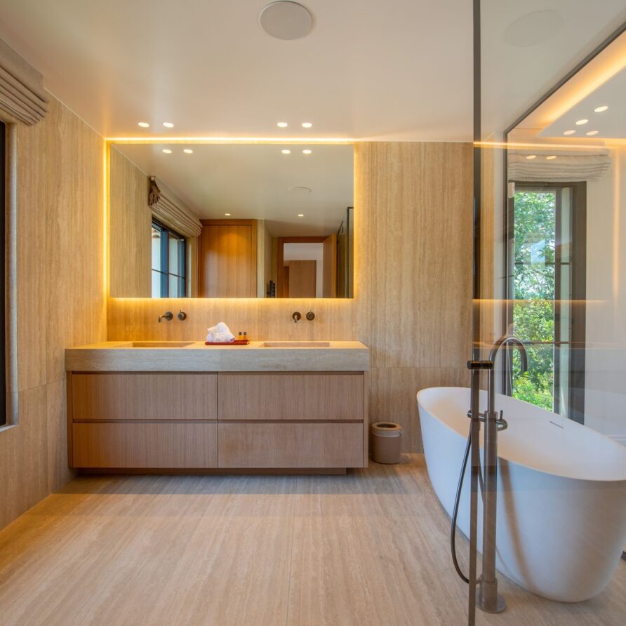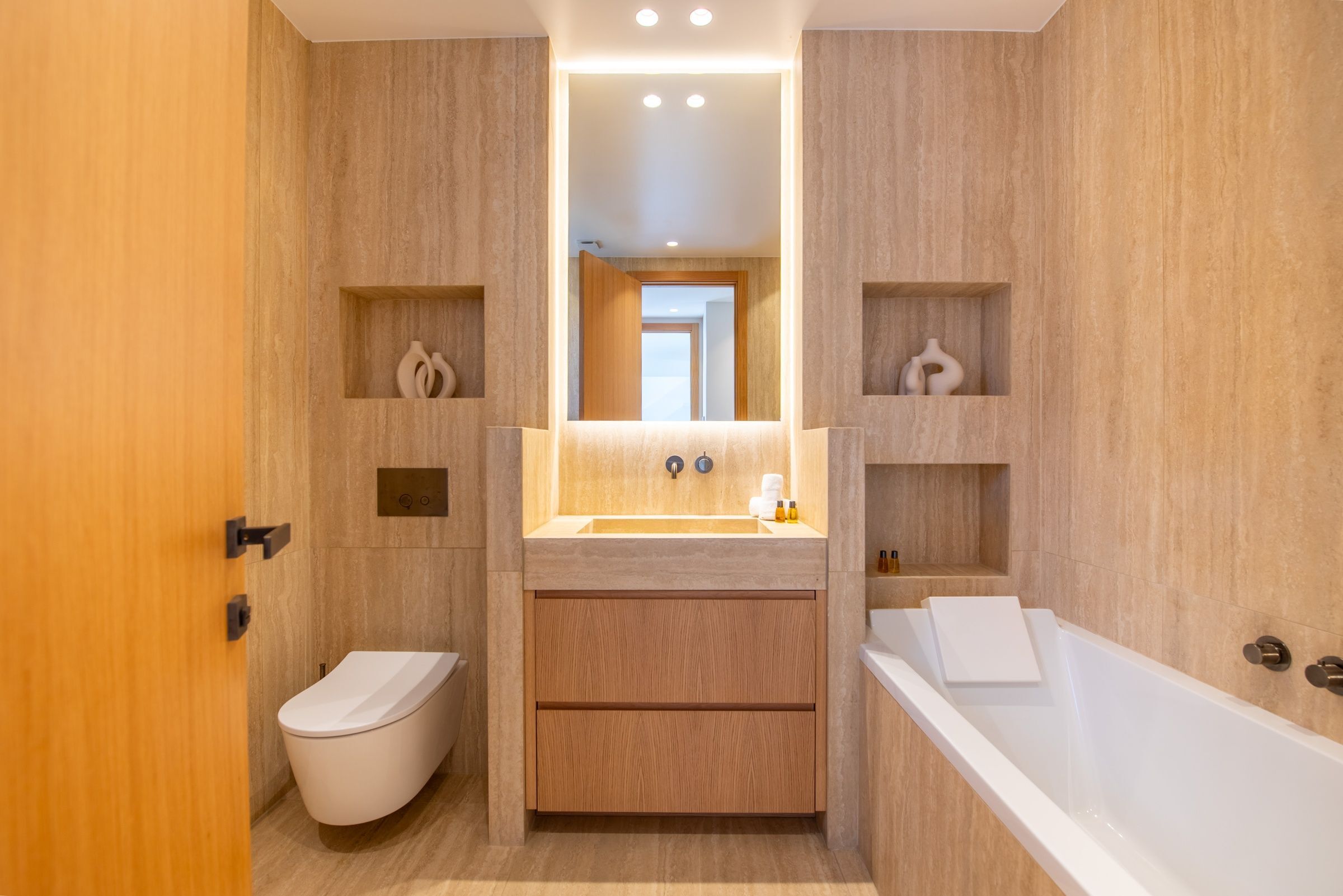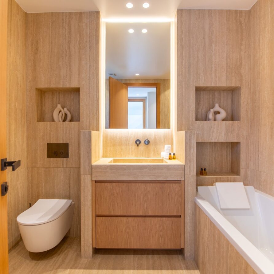 On the upper floor the Villa has two exceptional Master Bedrooms with stunning sea views and each suite features a private bathroom, WC, and dressing room, ensuring comfort, privacy, and serenity.