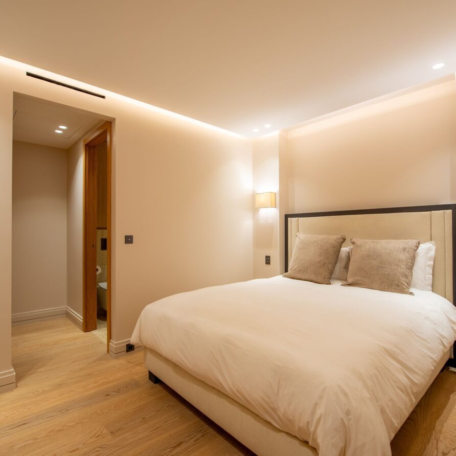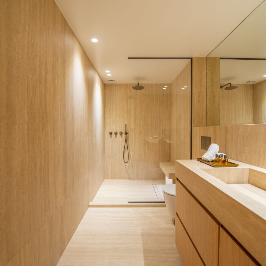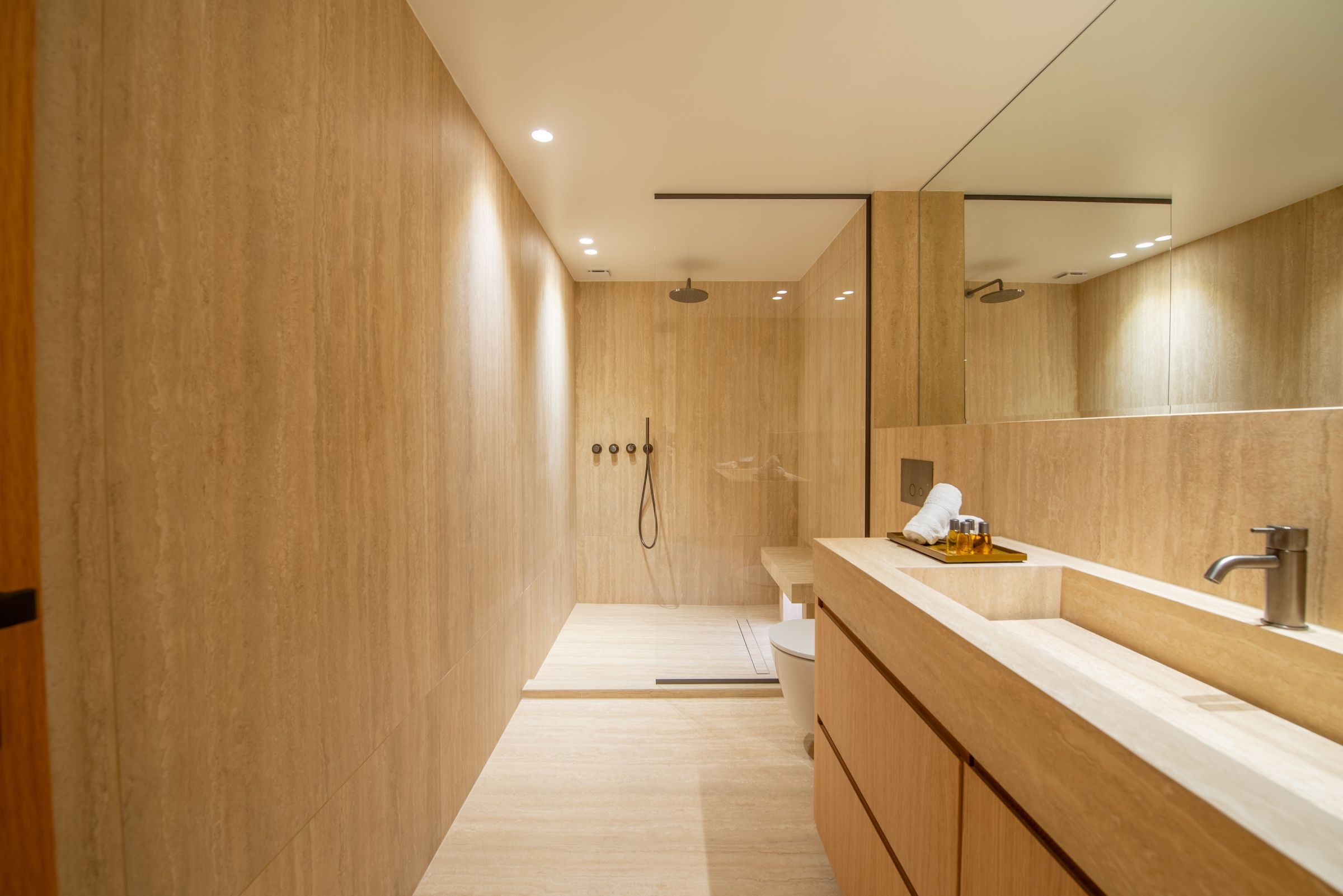 At the same level you will find two en-suite bedrooms, each with direct access to the pool, private bathroom, WC, and dressing room.