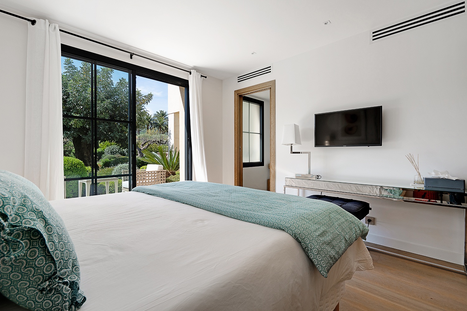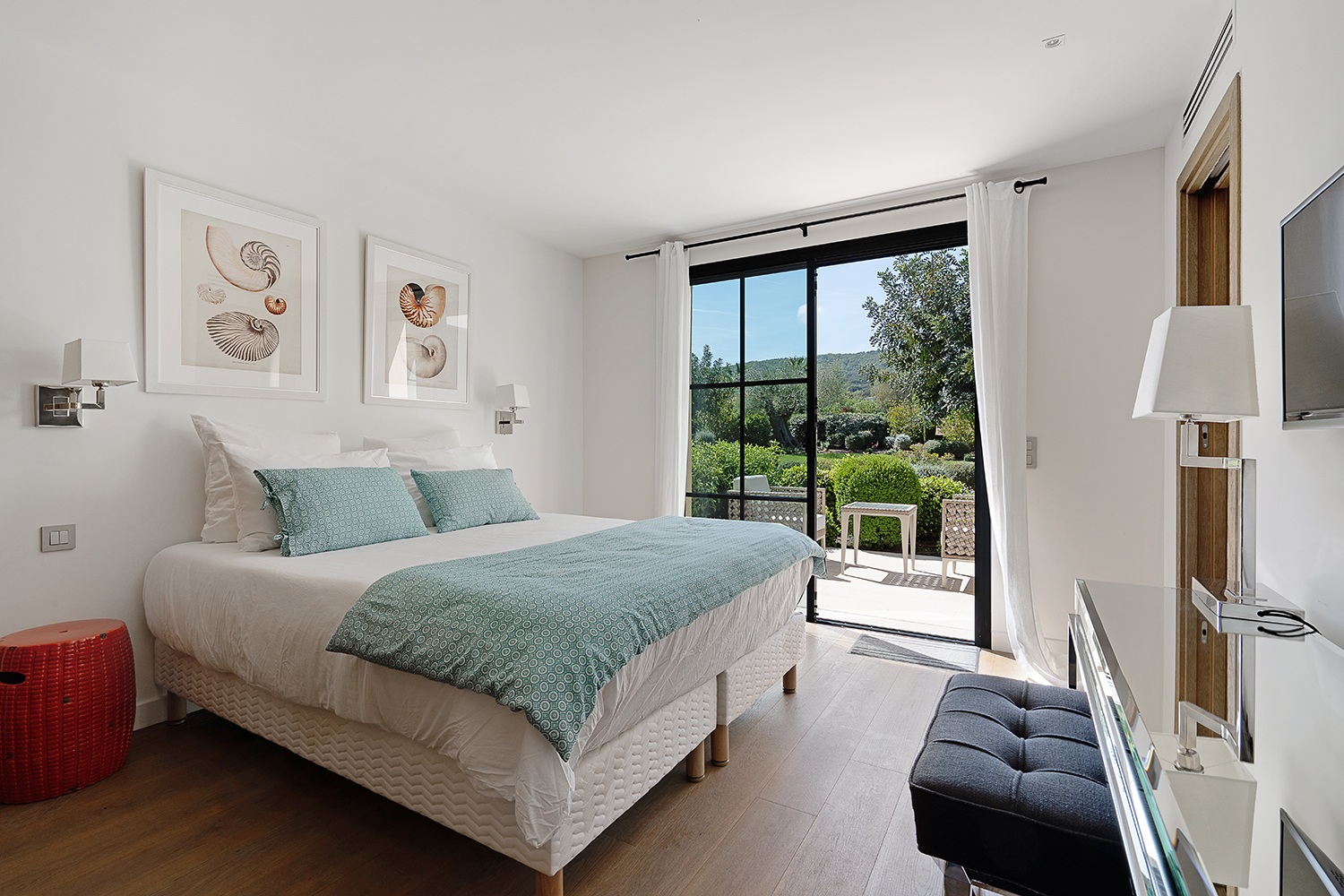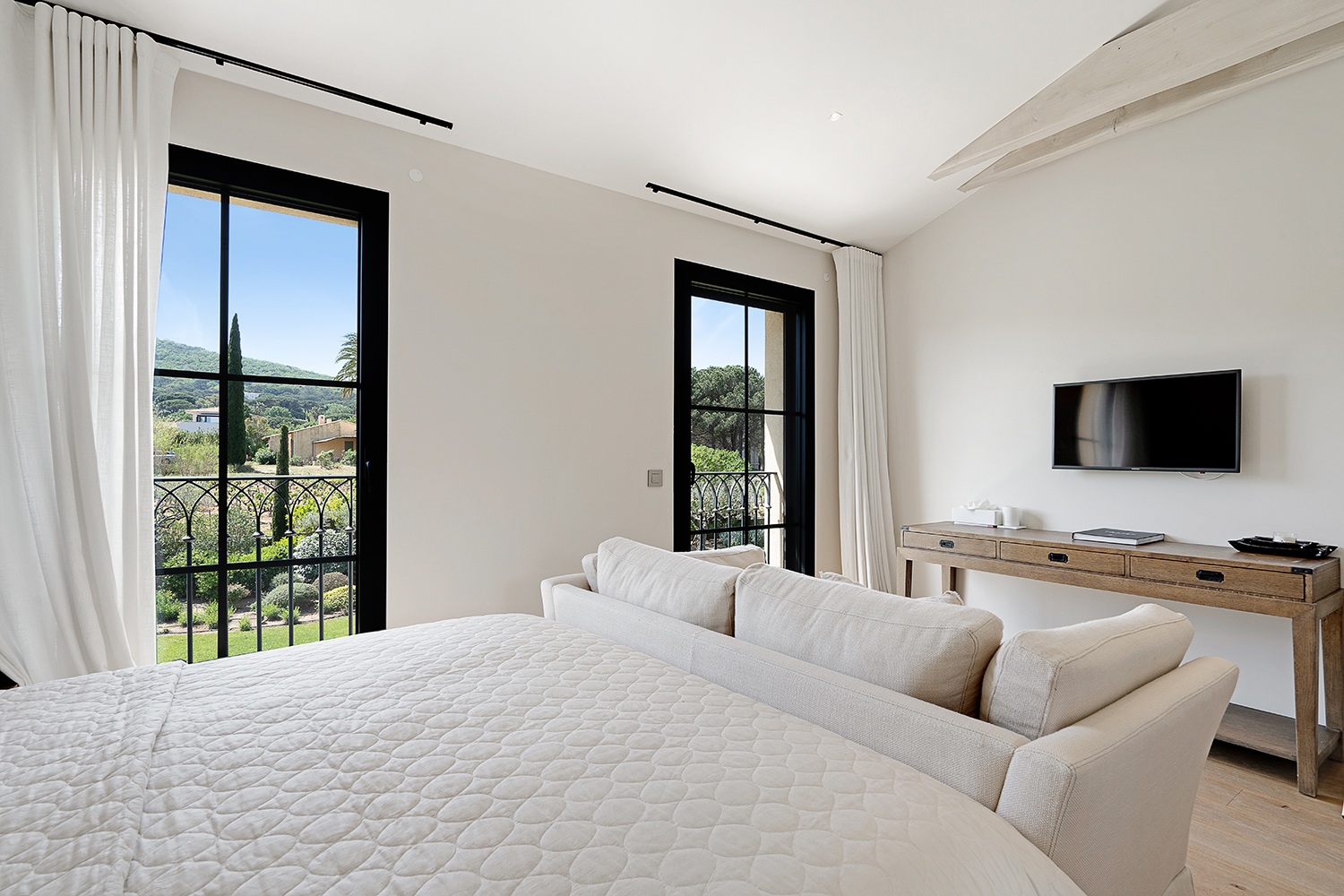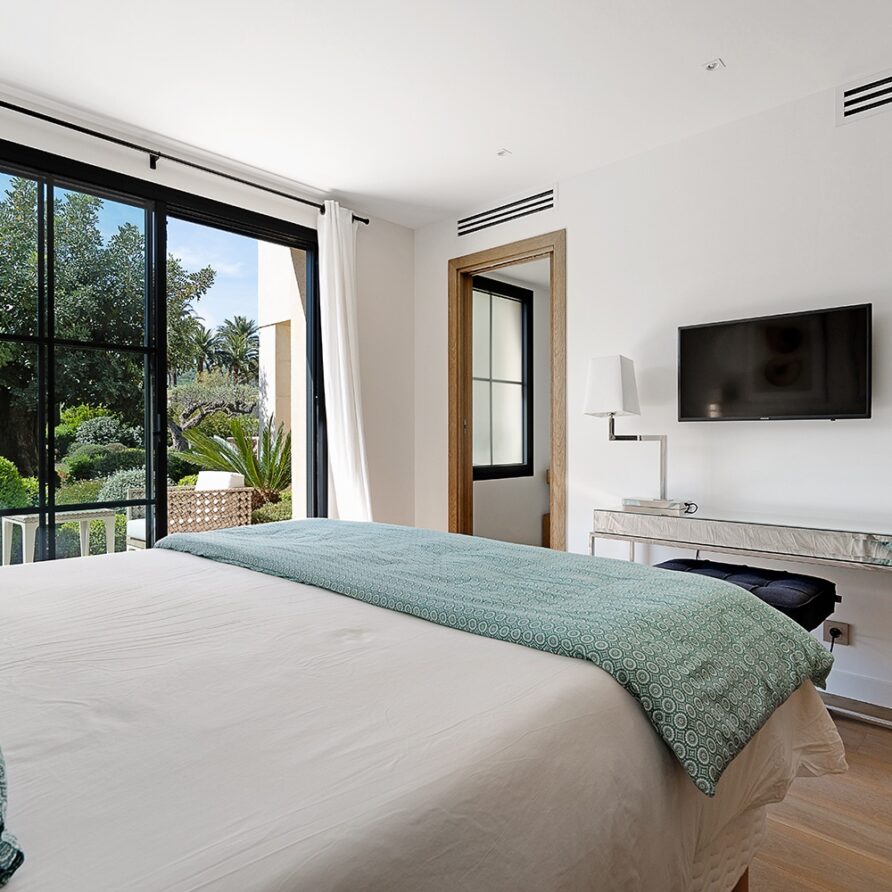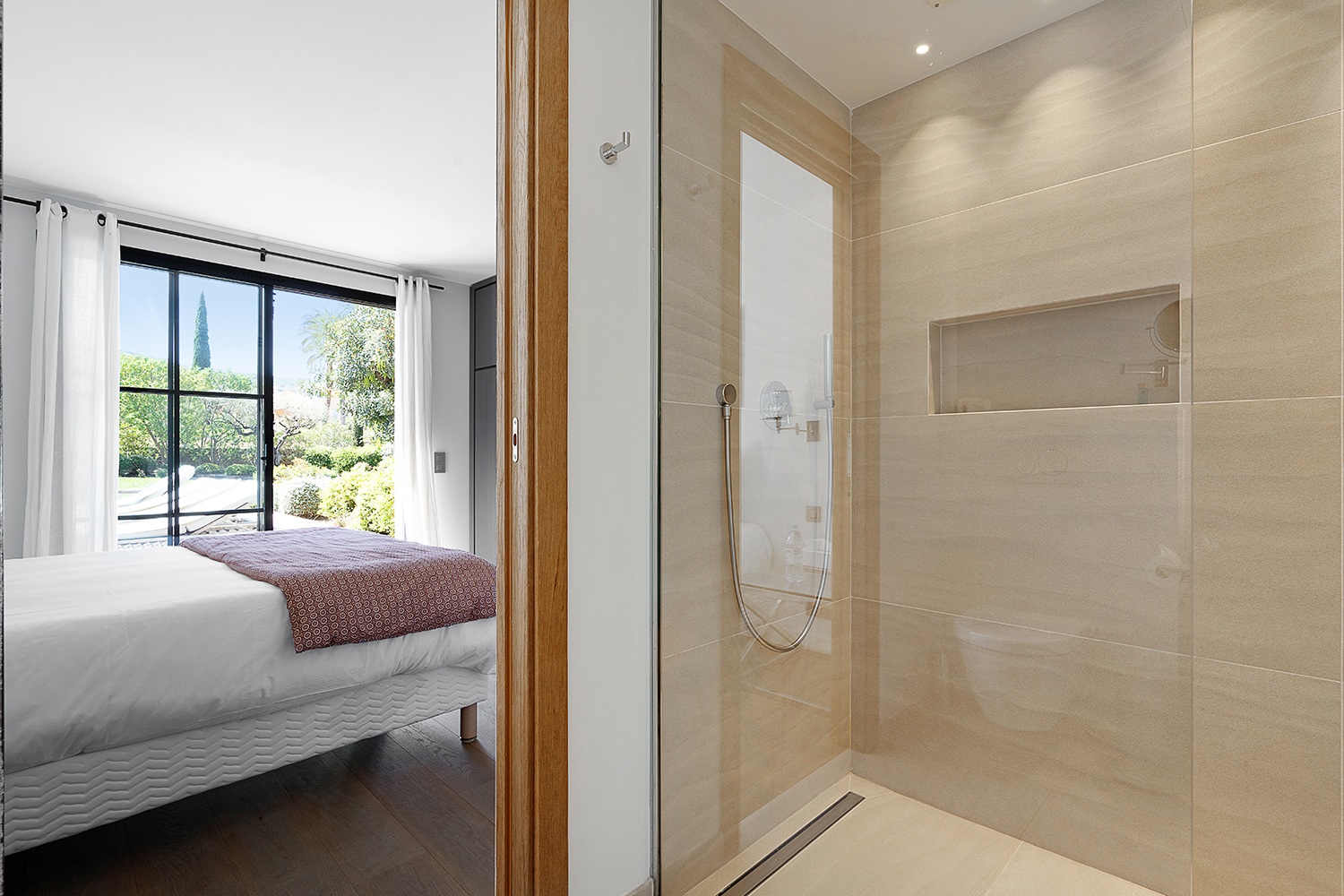Inside, the spacious open kitchen with its traditional piano could become a real place of transmission. The lounges and their fireplace will offer places of conviviality before joining the outside by the broad openings. The landscaped garden, heated swimming pool, barbecue and pool house will undoubtedly keep you at the villa for hours. Between two trips to the sea, the young and not so young will be able to challenge themselves to a game of football or ping pong or sip a cocktail at the water’s edge. The more athletic will be amazed to discover the house’s large gym, which will allow them to keep up the pace even on holiday.