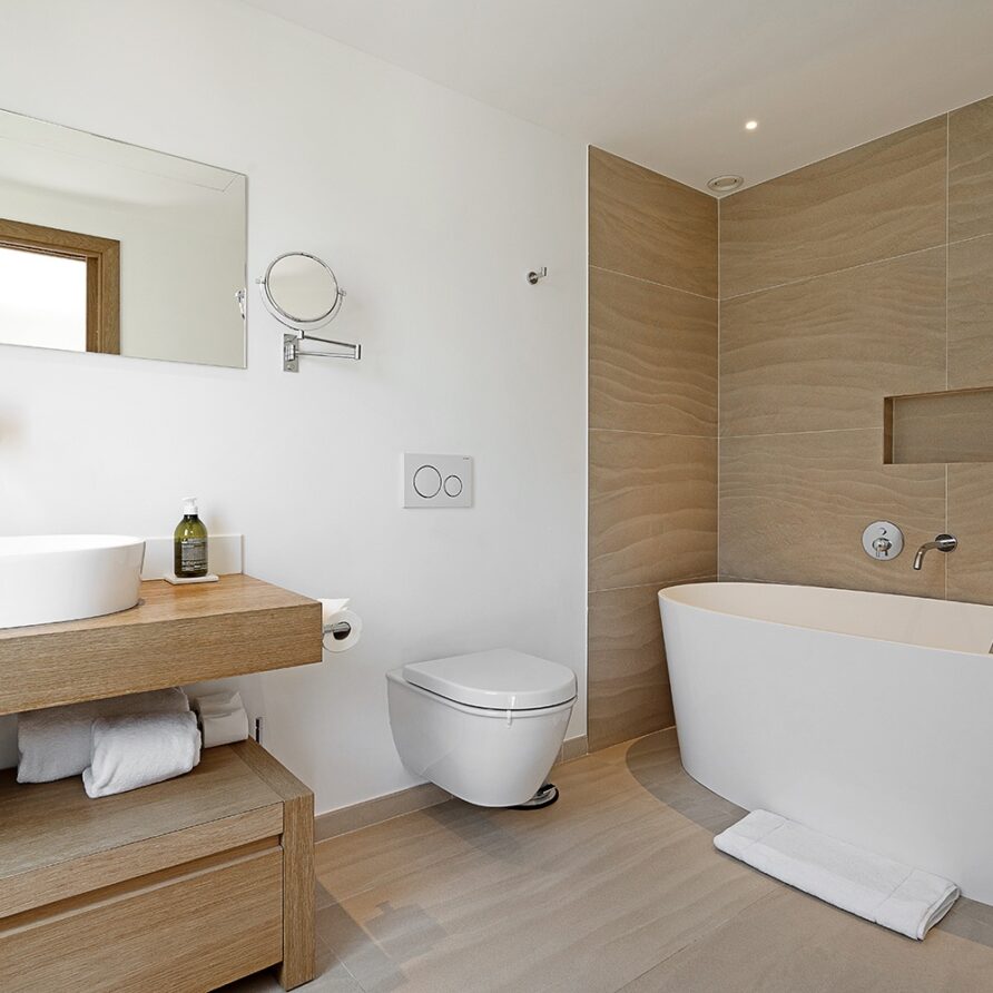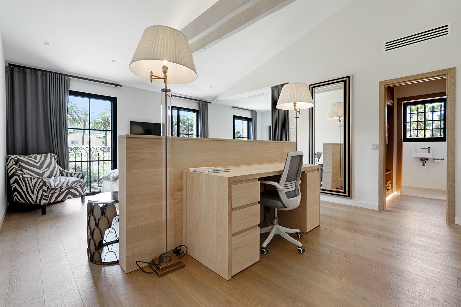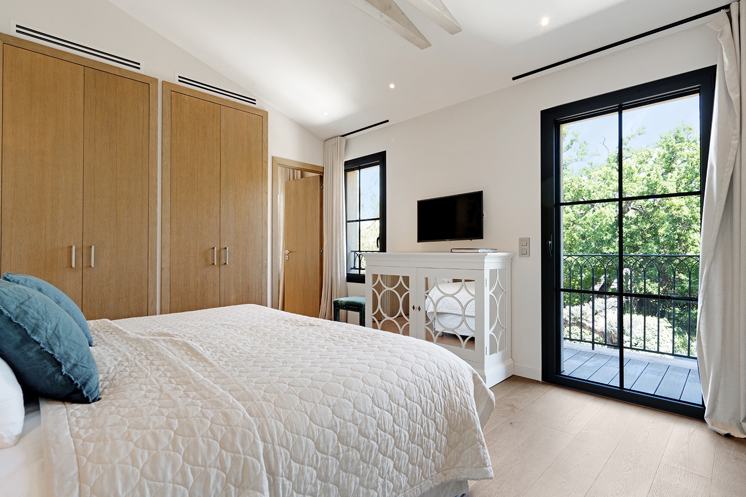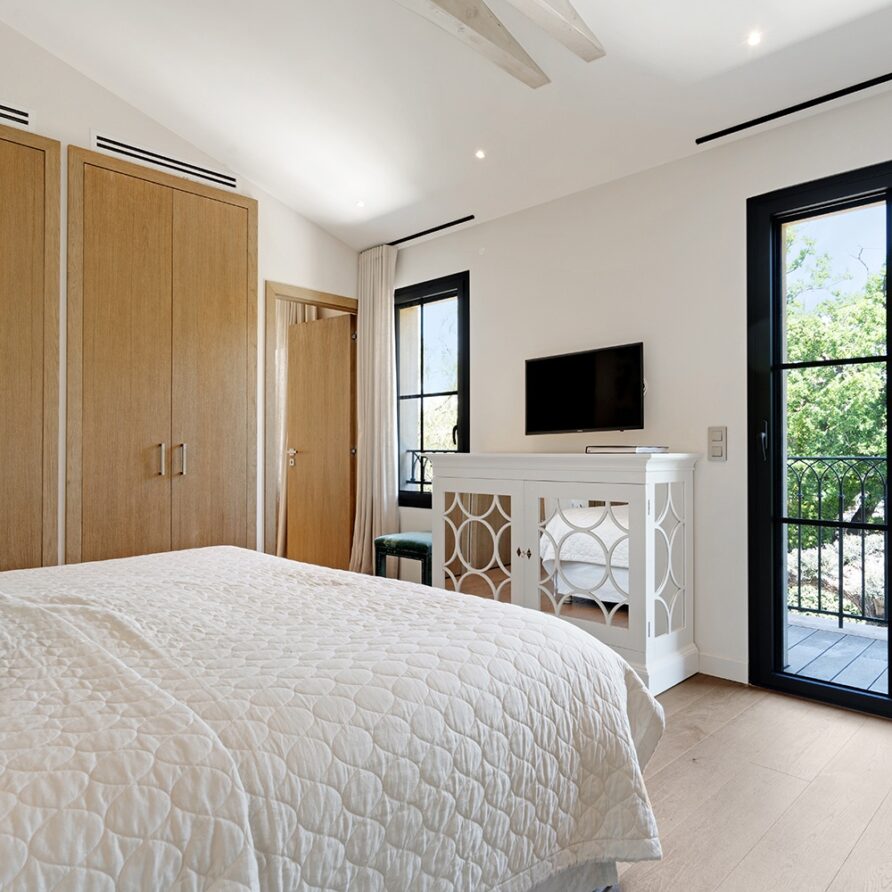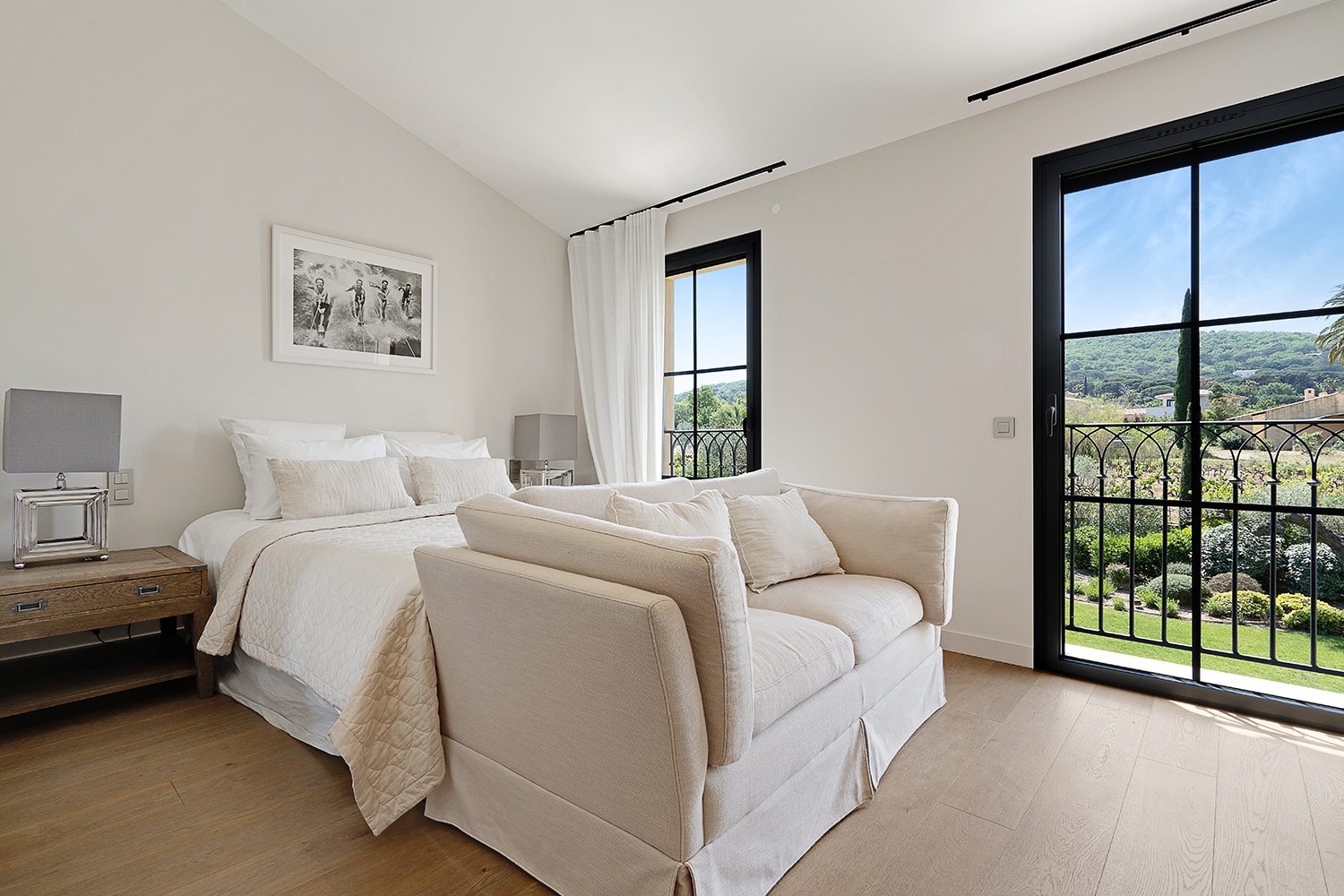 Inside, the spacious open kitchen with its traditional piano could become a real place of transmission. The lounges and their fireplace will offer places of conviviality before joining the outside by the broad openings. The landscaped garden, heated swimming pool, barbecue and pool house will undoubtedly keep you at the villa for hours. Between two trips to the sea, the young and not so young will be able to challenge themselves to a game of football or ping pong or sip a cocktail at the water’s edge. The more athletic will be amazed to discover the house’s large gym, which will allow them to keep up the pace even on holiday.