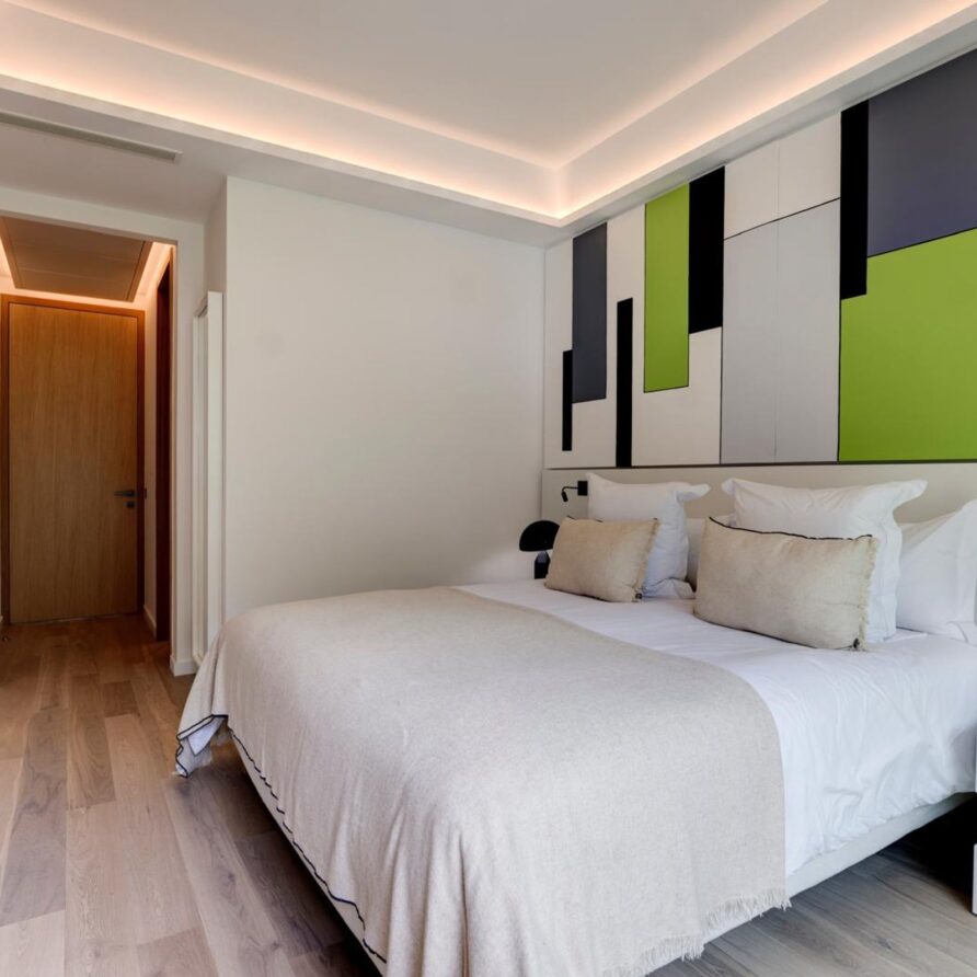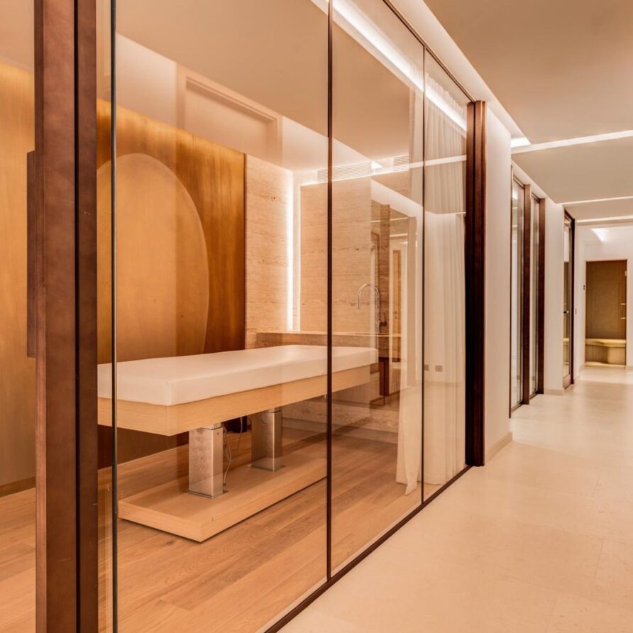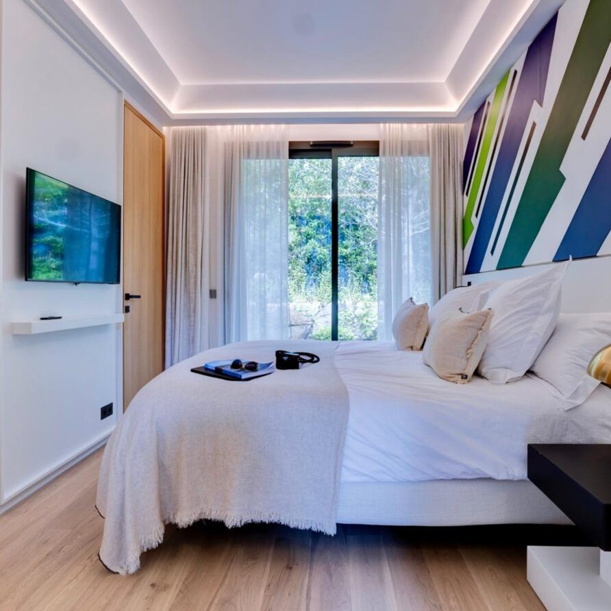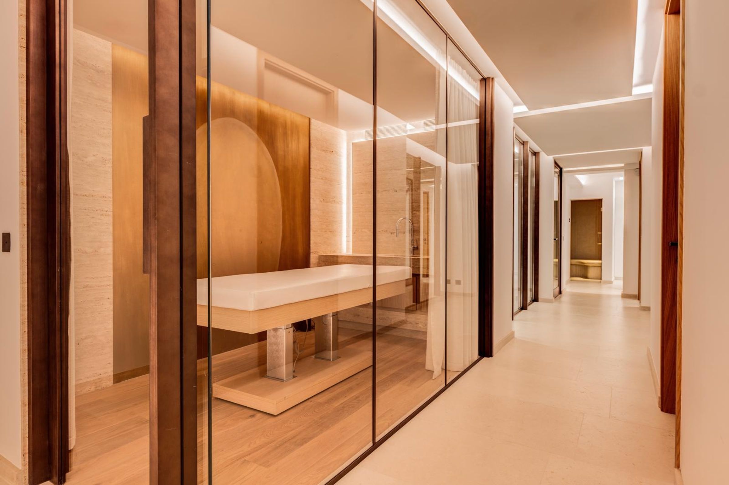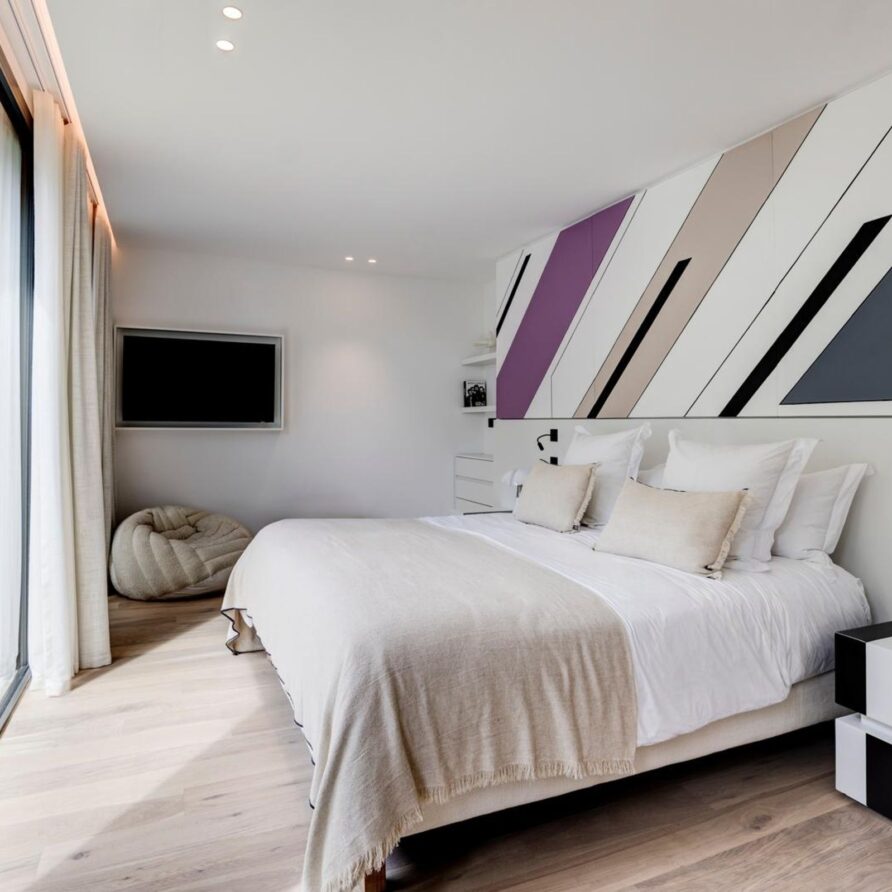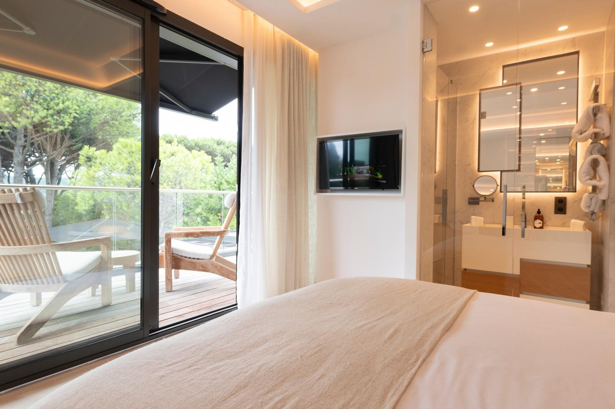 Accommodating up to 14 guests, the villa features seven spacious bedrooms, with a modern design that invites you to peace and quiet at the same time. Each bedroom is arranged to provide privacy, all with their own bathroom, the master bedroom also featuring a spacious dressing room.
