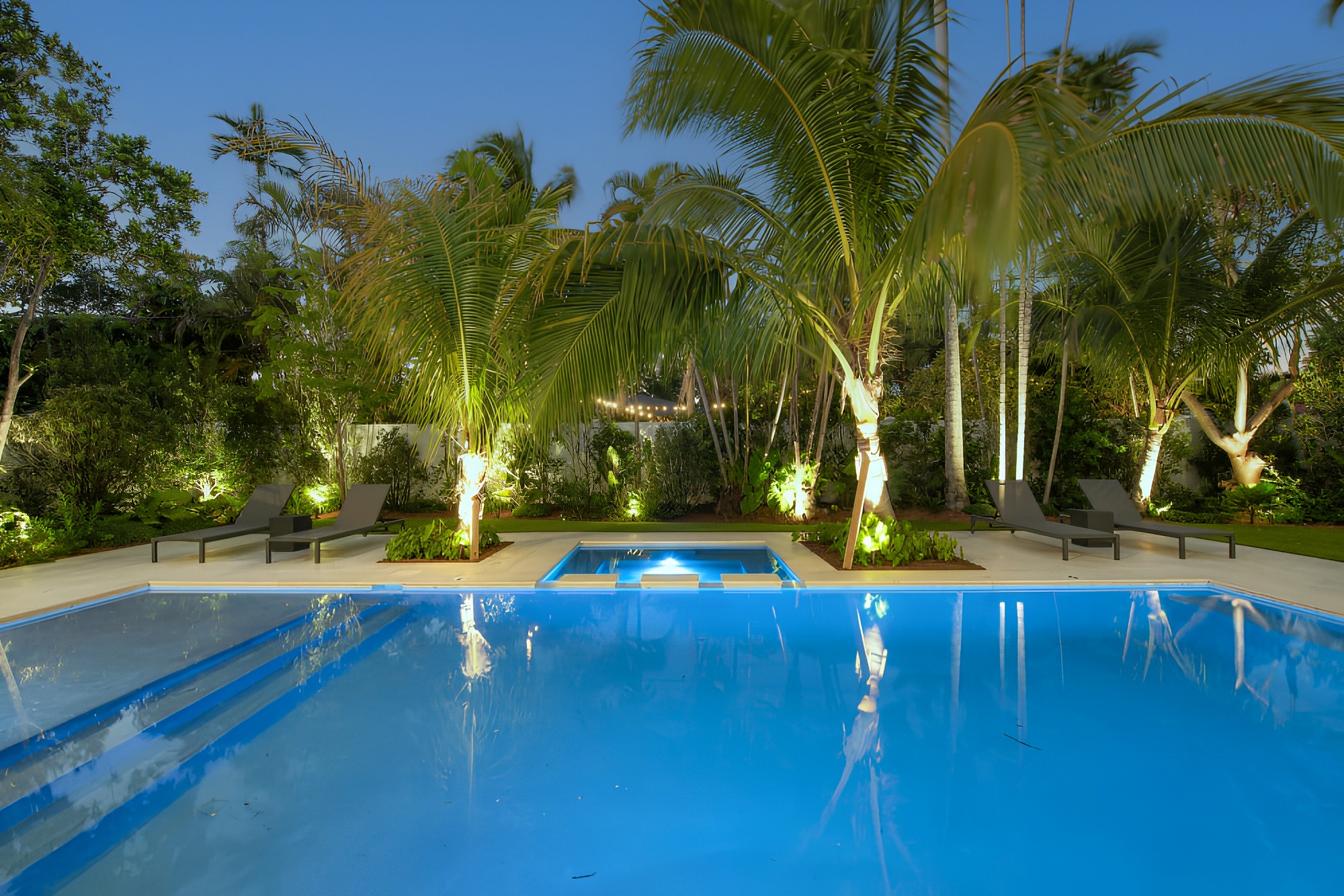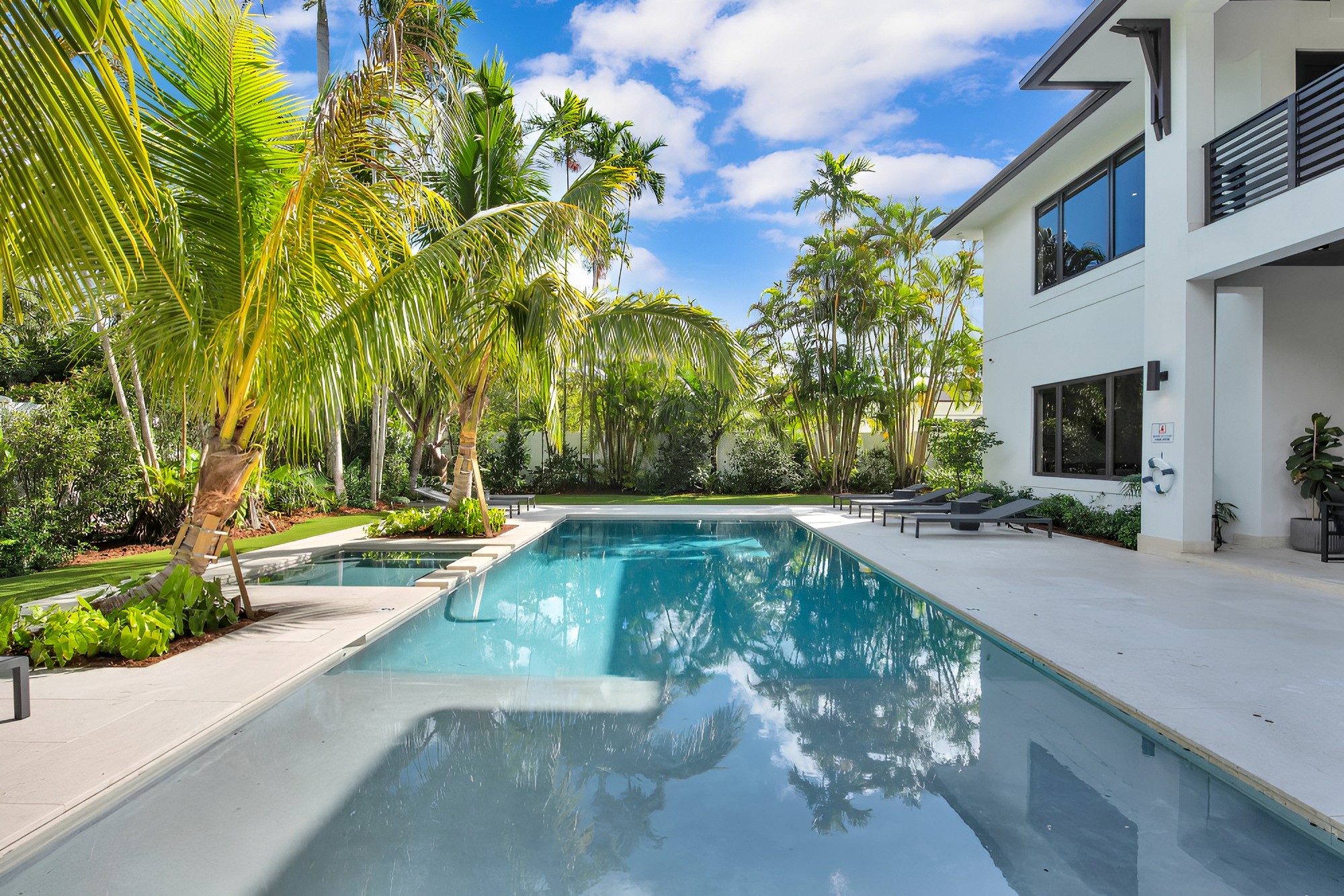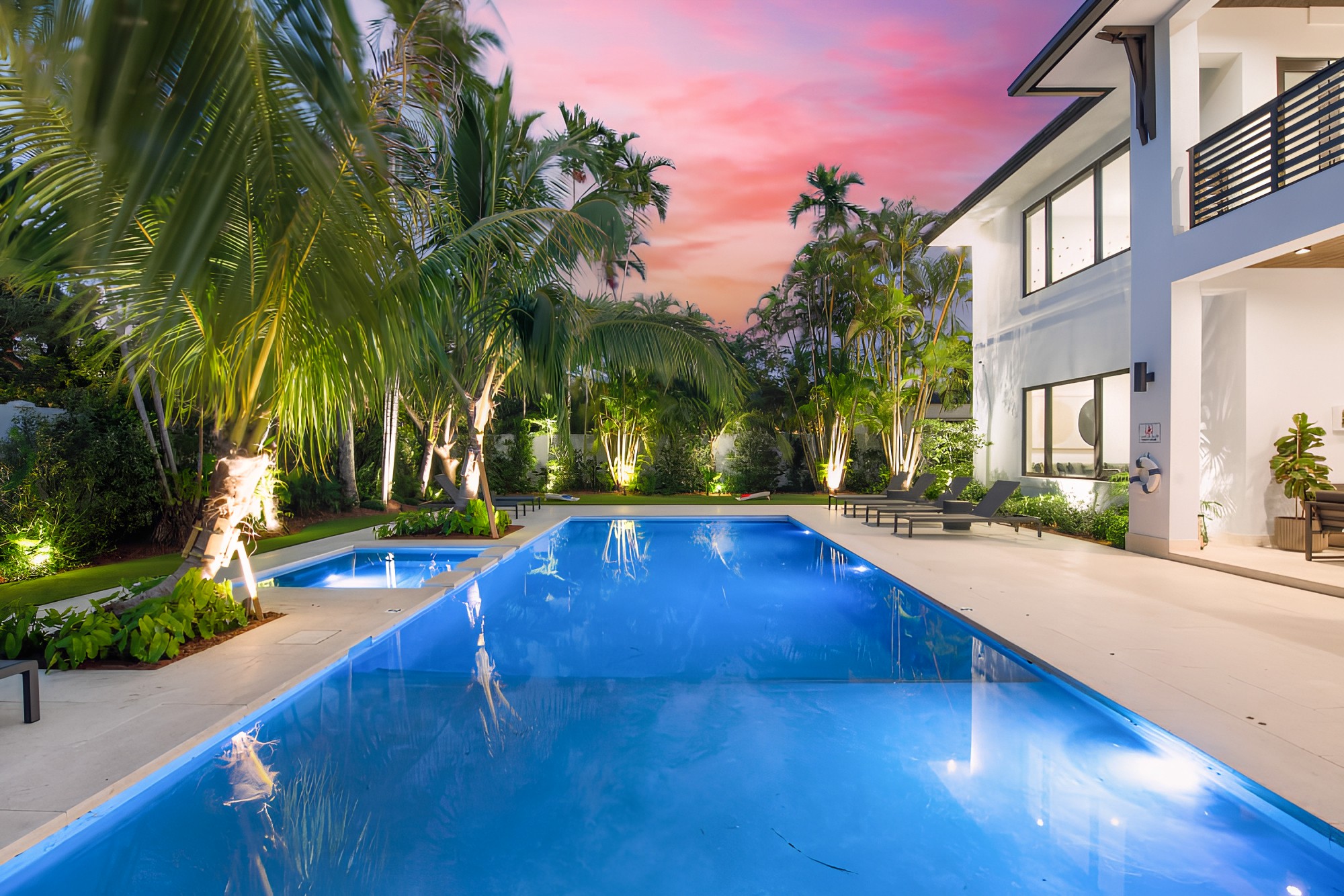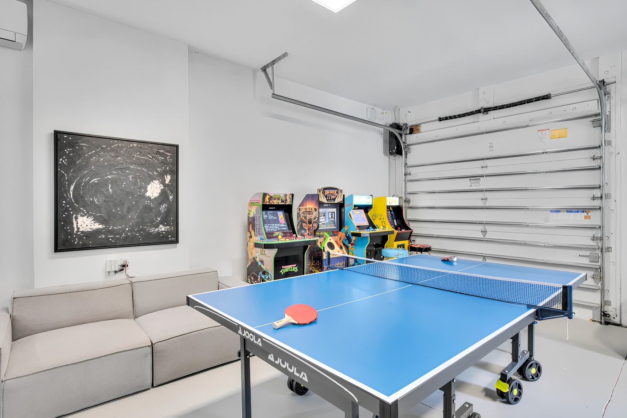 The pool area is a quintessential paradise, featuring coral stone floors along the pool deck and accent walls. A fully equipped summer kitchen invites endless outdoor enjoyment, while the resort-style pool and Jacuzzi complete the picture. The entertainment extends indoors to the Game Room, where billiards, ping-pong, arcades, and relaxation converge for a perfect blend of leisure and fun.
