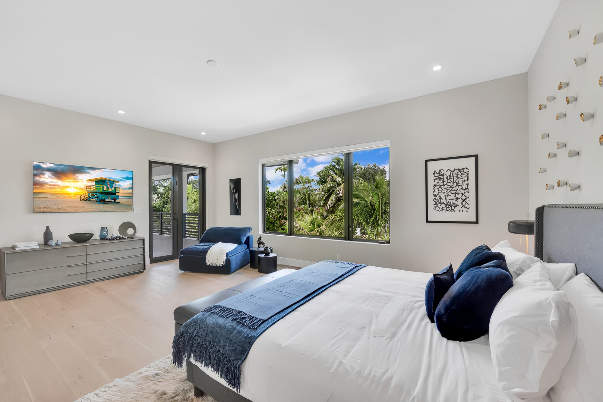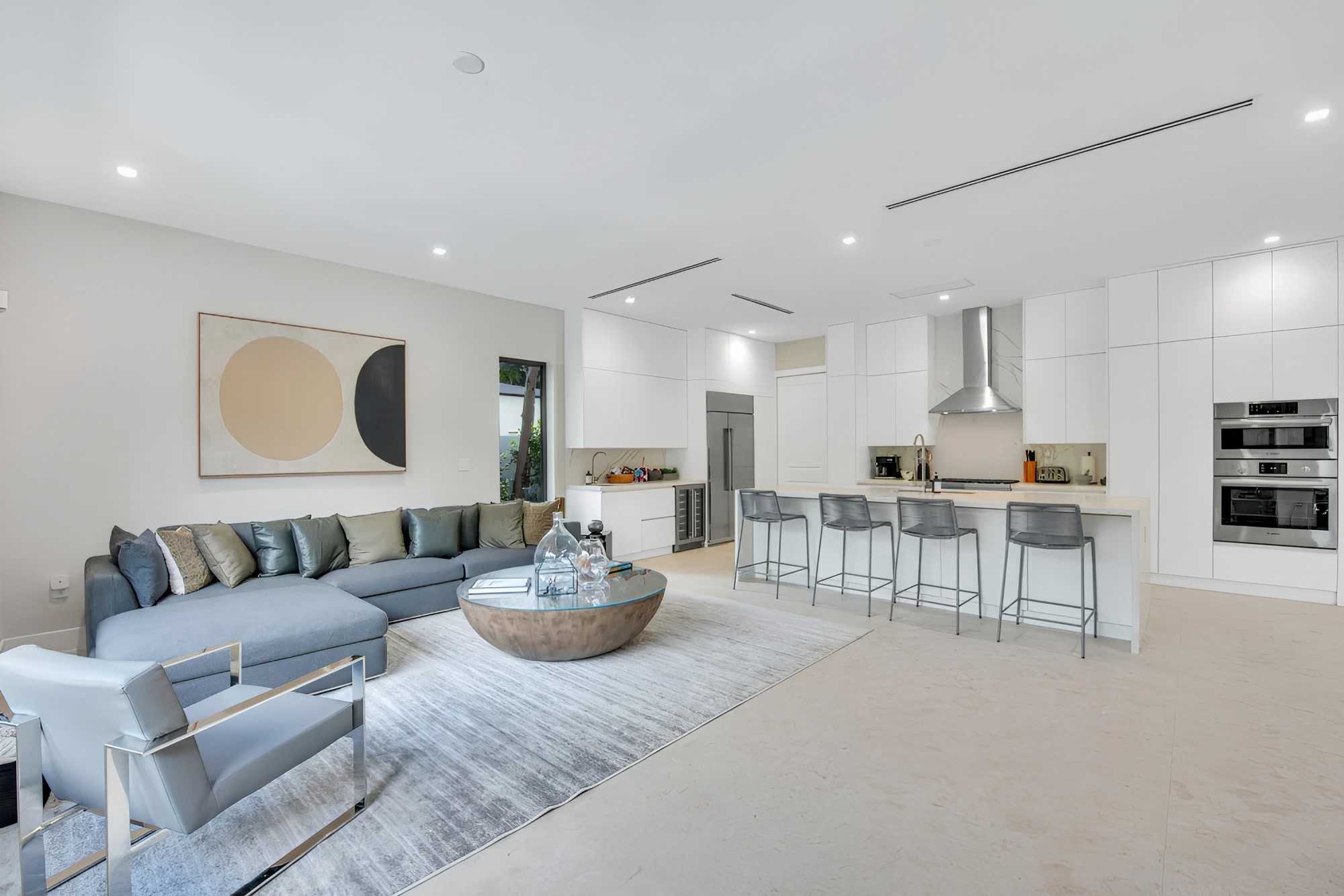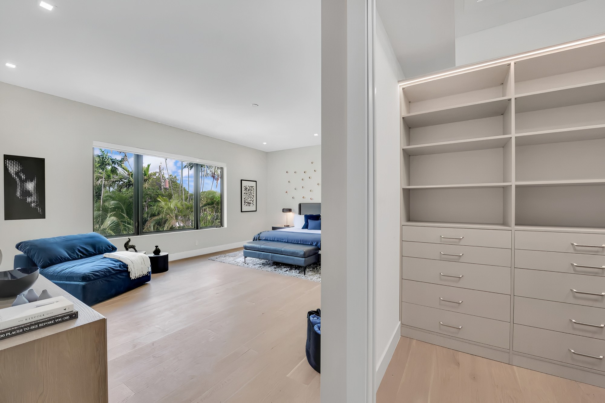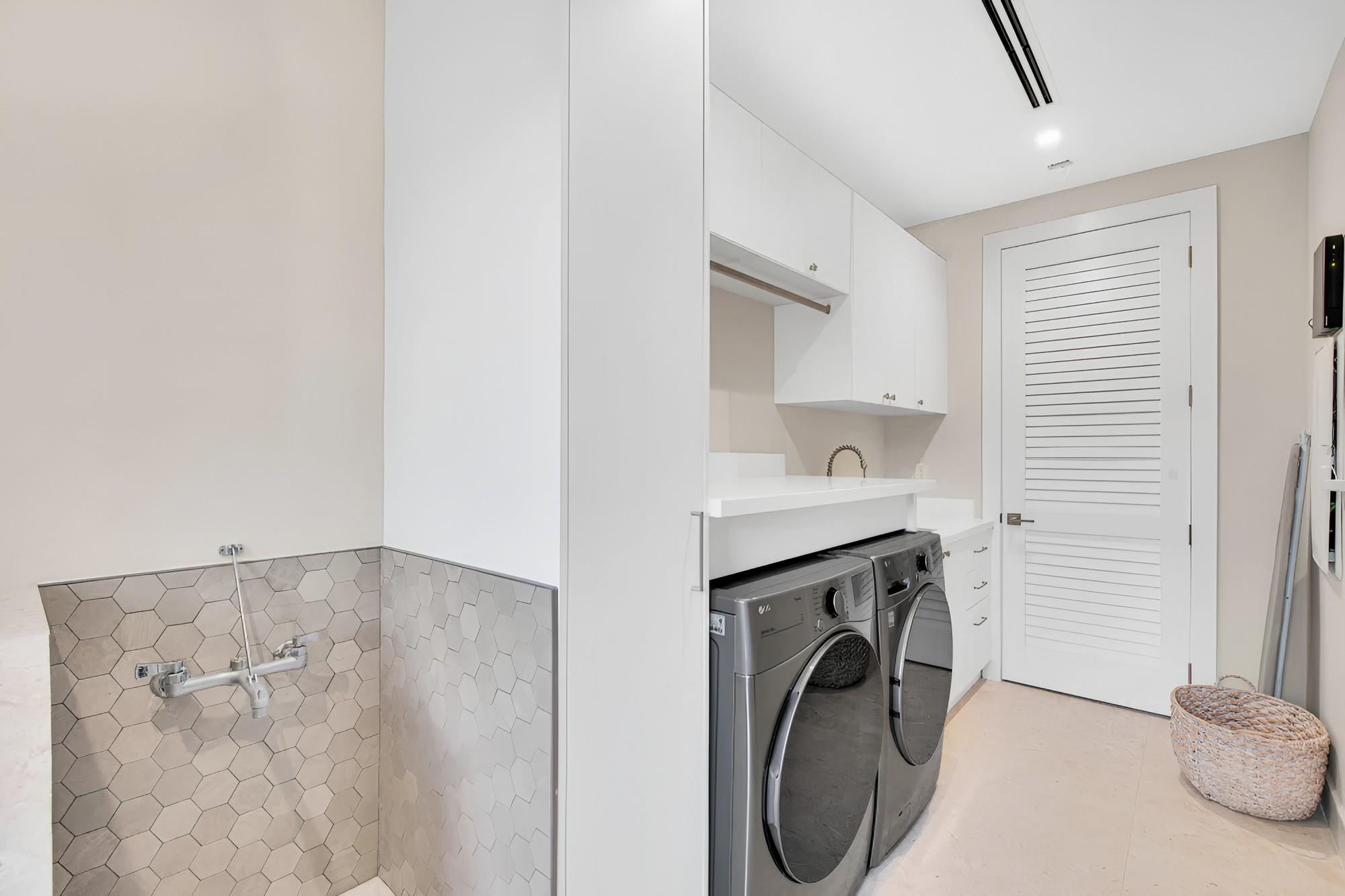 Inside, wood plank limestone tiles grace the floors, enhancing the modern and welcoming ambiance. The stunning custom kitchen boasts 12’ kitchen island quartz countertops with a waterfall finish, complemented by high-end stainless steel appliances. From built-in micro/oven combos to cook-tops, wall hoods, and wine coolers, this kitchen is a culinary haven, perfect for hosting private chef dinners.