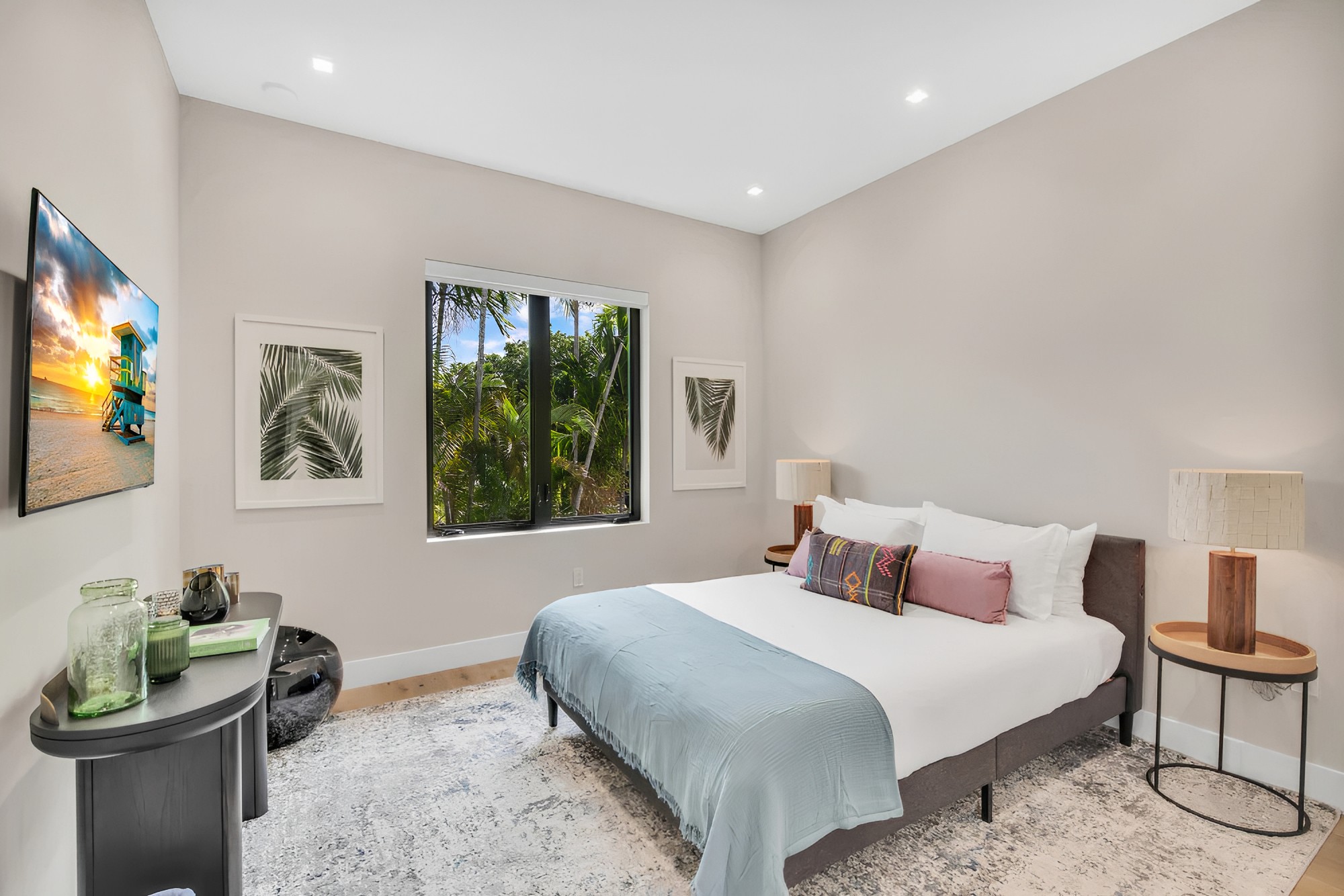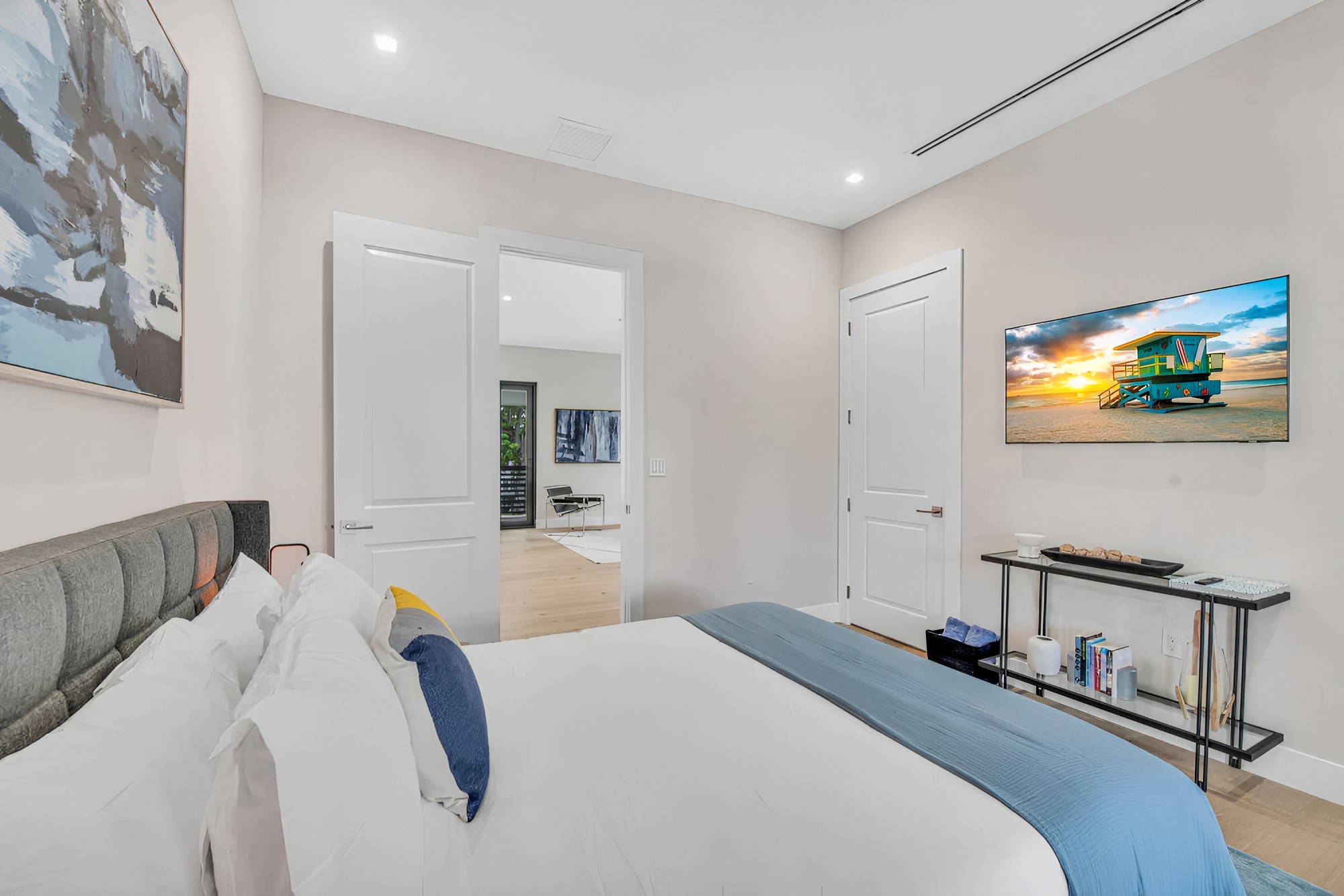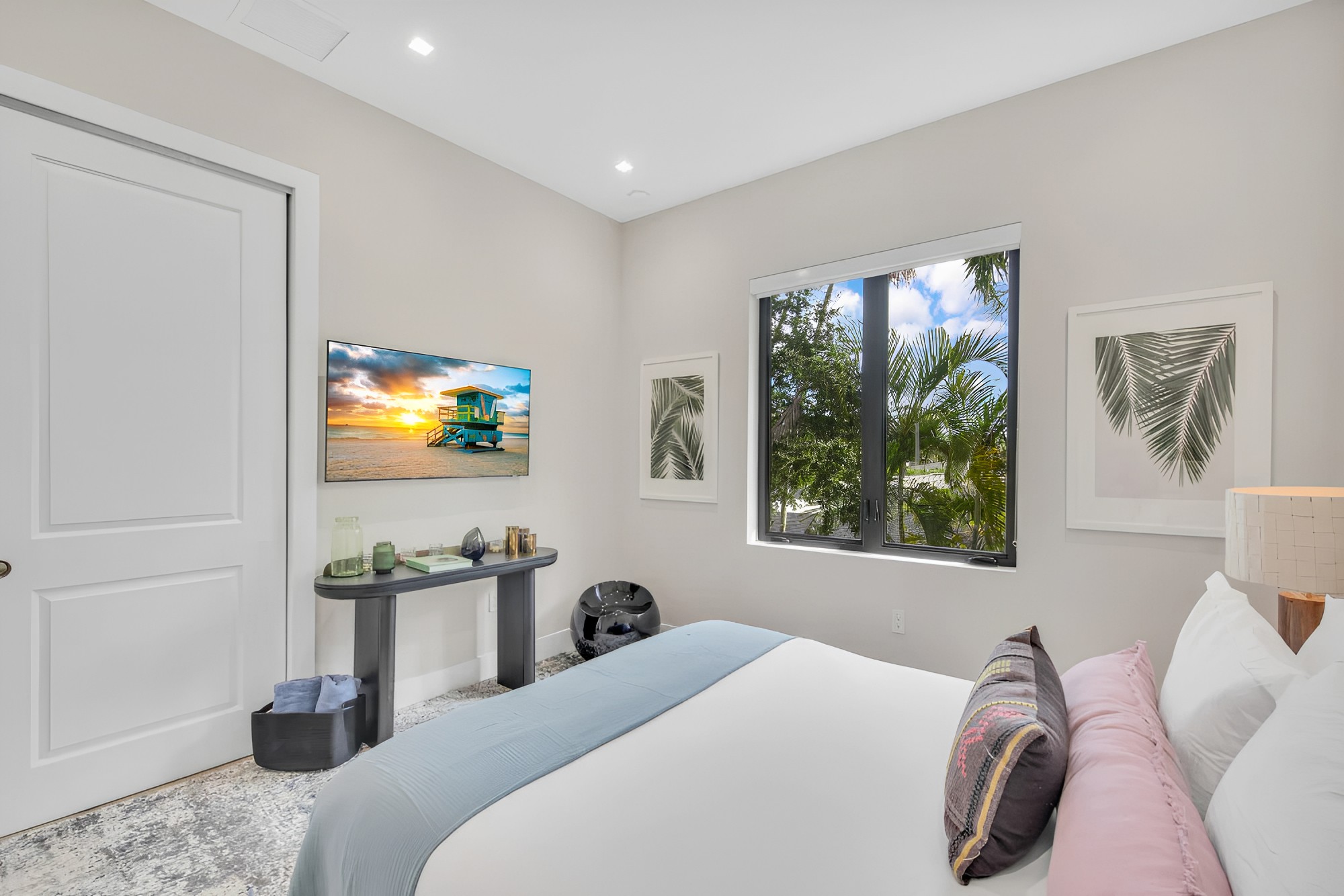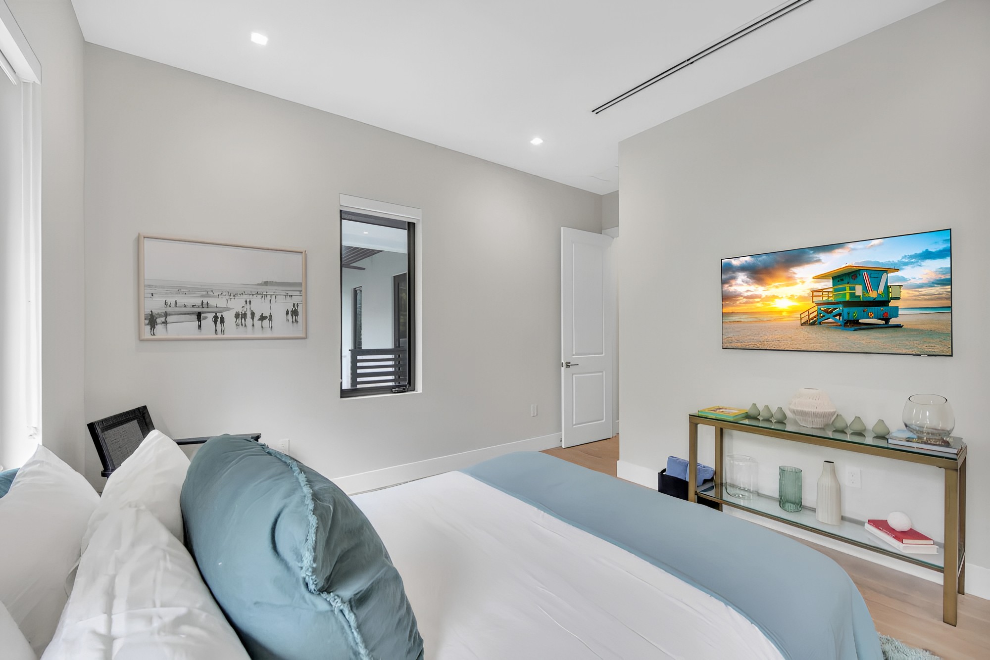 Inside, wood plank limestone tiles grace the floors, enhancing the modern and welcoming ambiance. The stunning custom kitchen boasts 12’ kitchen island quartz countertops with a waterfall finish, complemented by high-end stainless steel appliances. From built-in micro/oven combos to cook-tops, wall hoods, and wine coolers, this kitchen is a culinary haven, perfect for hosting private chef dinners.