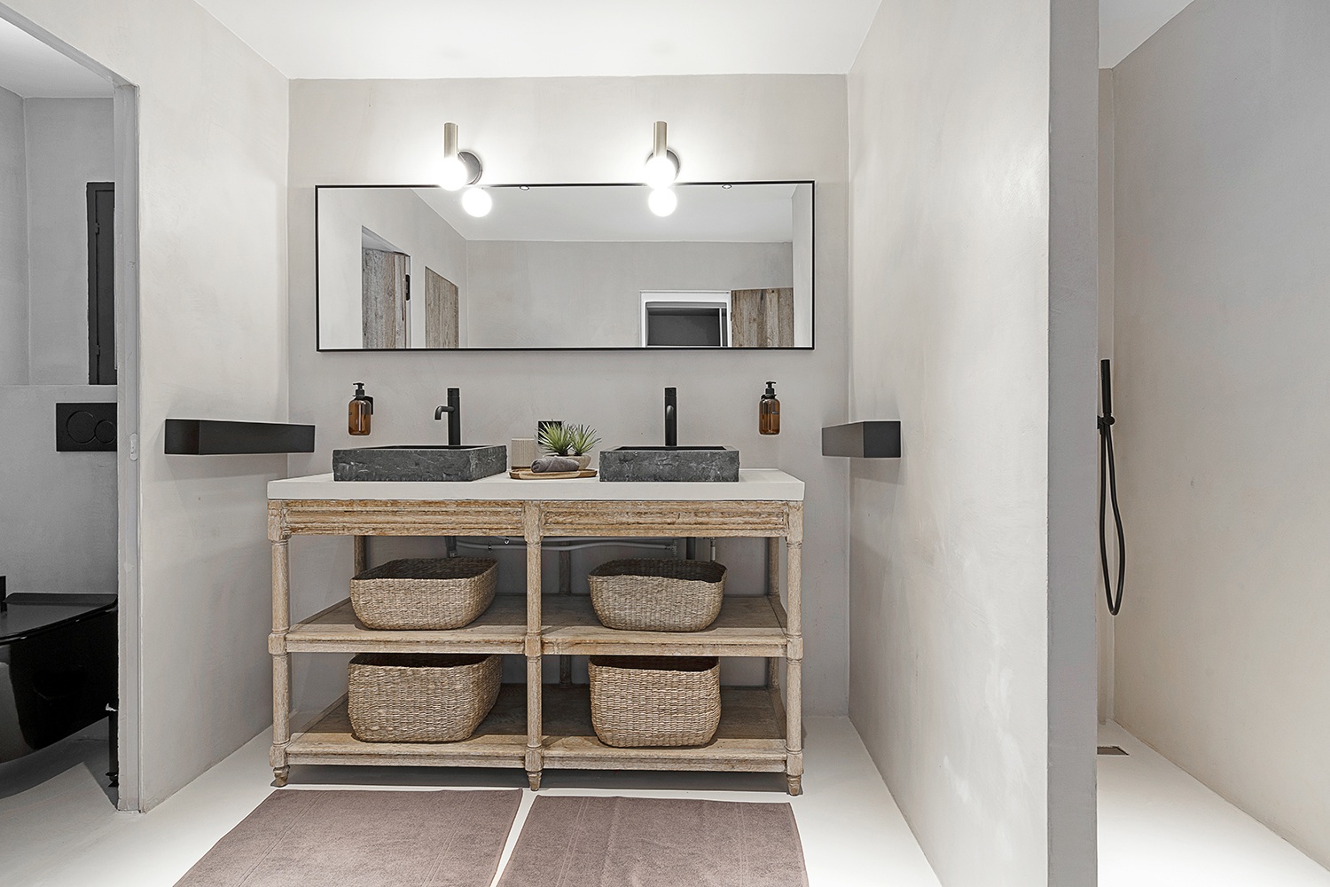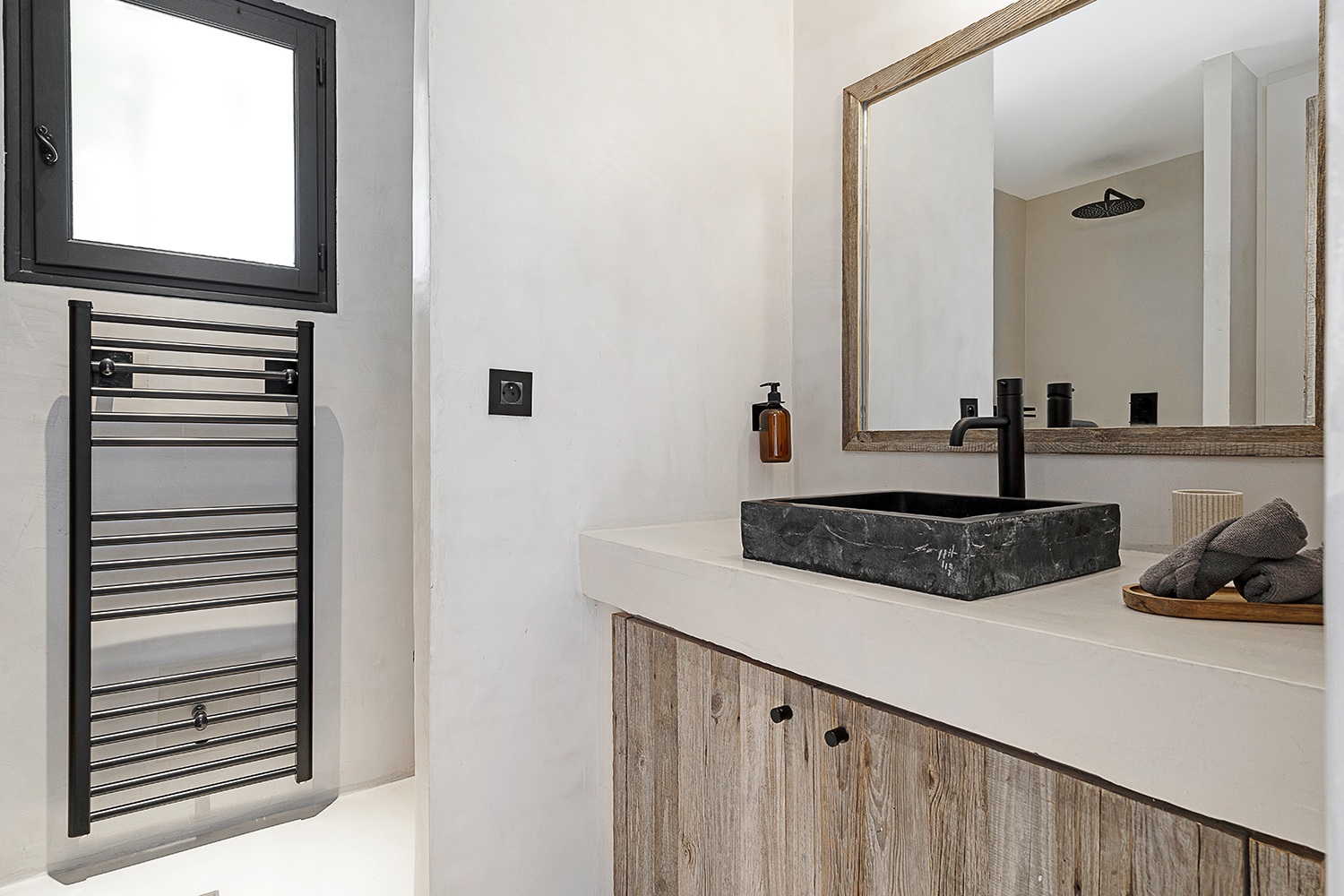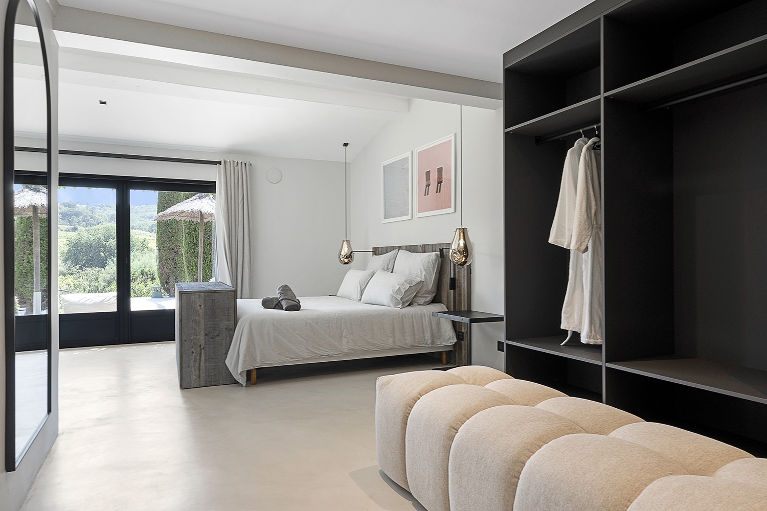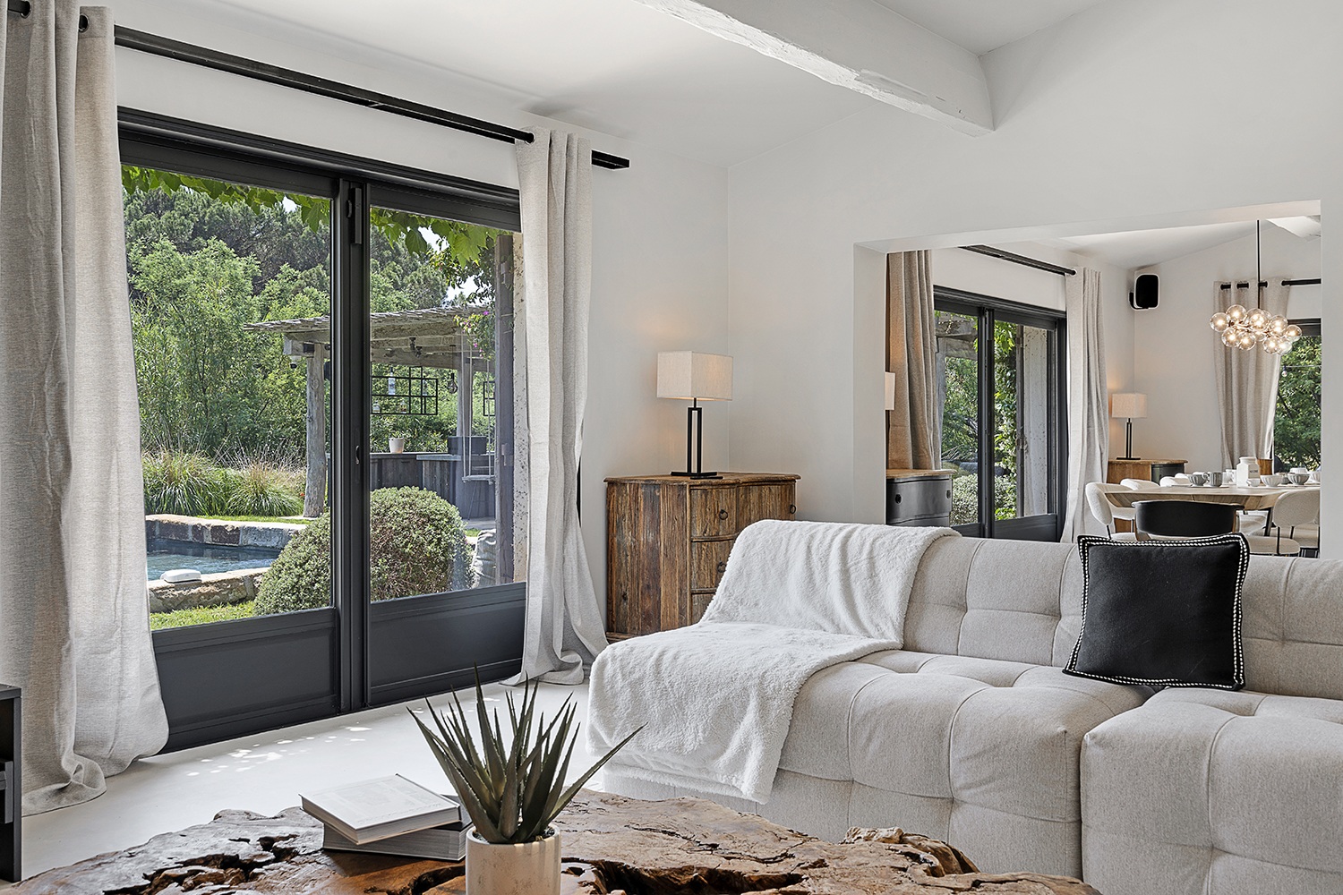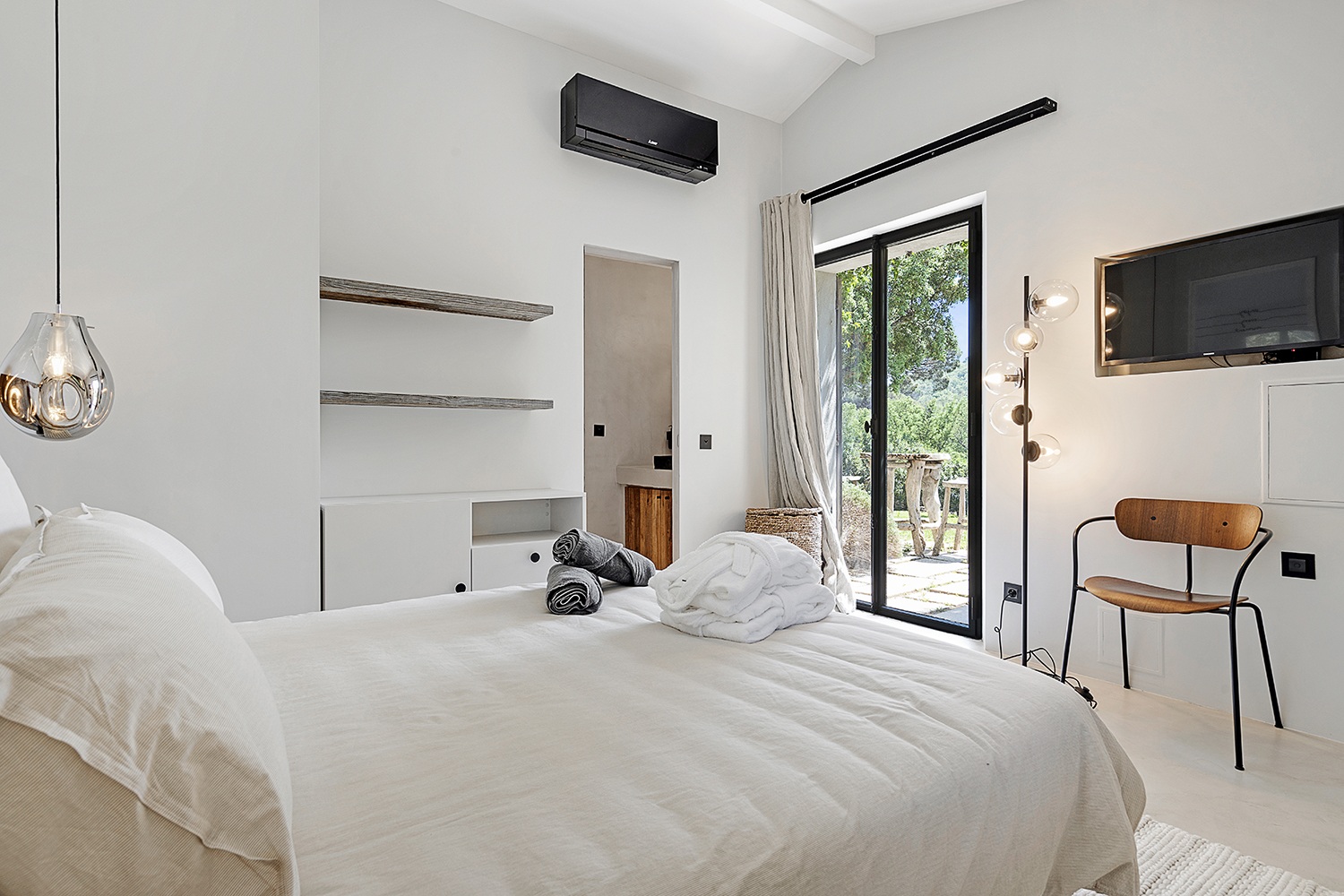 This villa is set in peaceful surroundings where birdsong reigns supreme. Here, Virginia creeper, bougainvillea and jasmine lick the exterior walls, offering a gentle pace of life all year round. Outside, fun and sharing are always the order of the day. In the pool house, with its natural materials, the bar, table, lounge and two swings are set out in the shade of the canisses. The pool house is the focal point of the villa, contributing to the pleasure of days spent around the heated swimming pool and extending the evenings in a warm atmosphere.