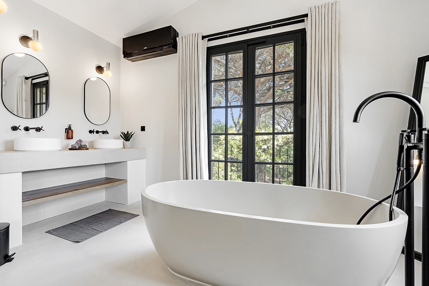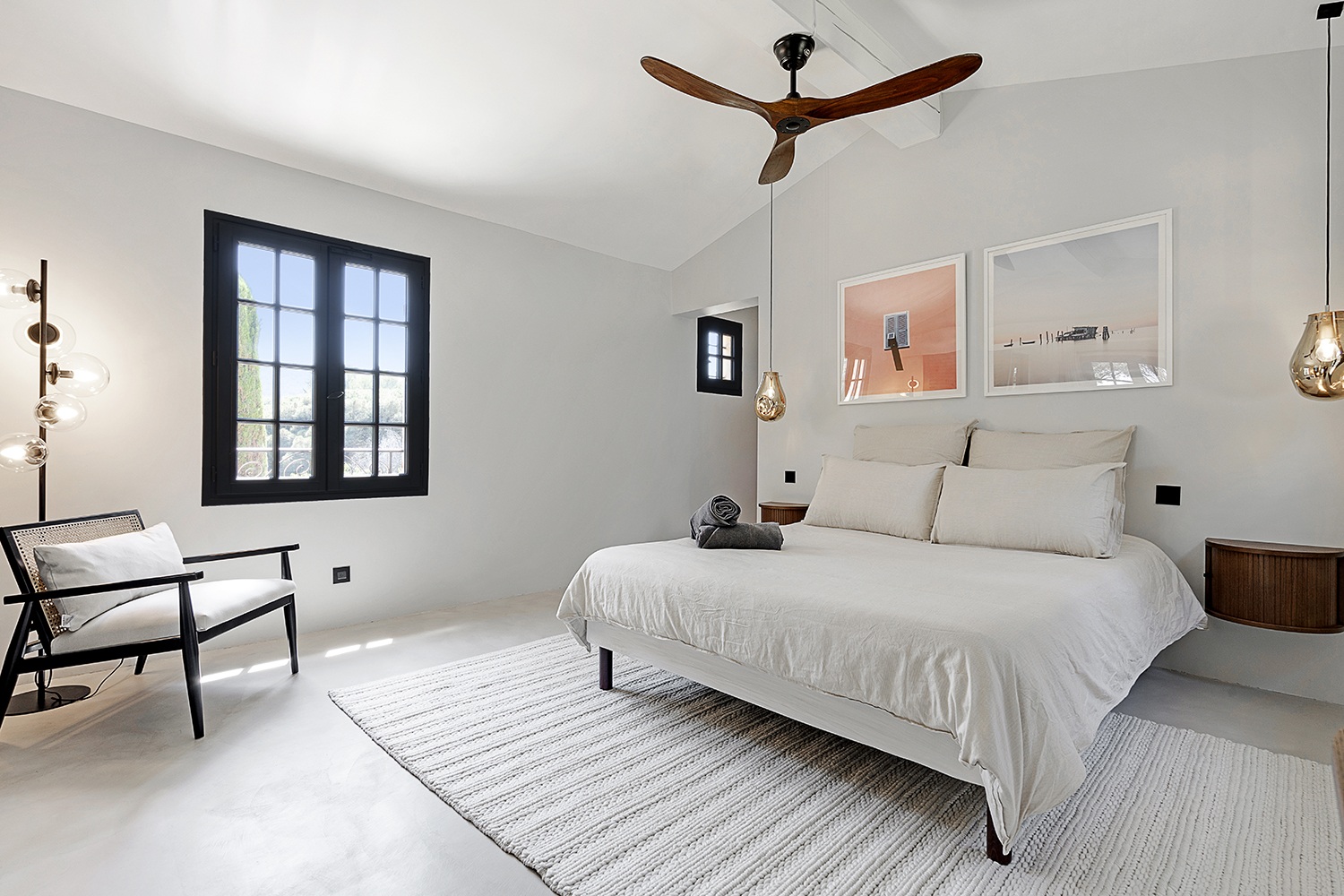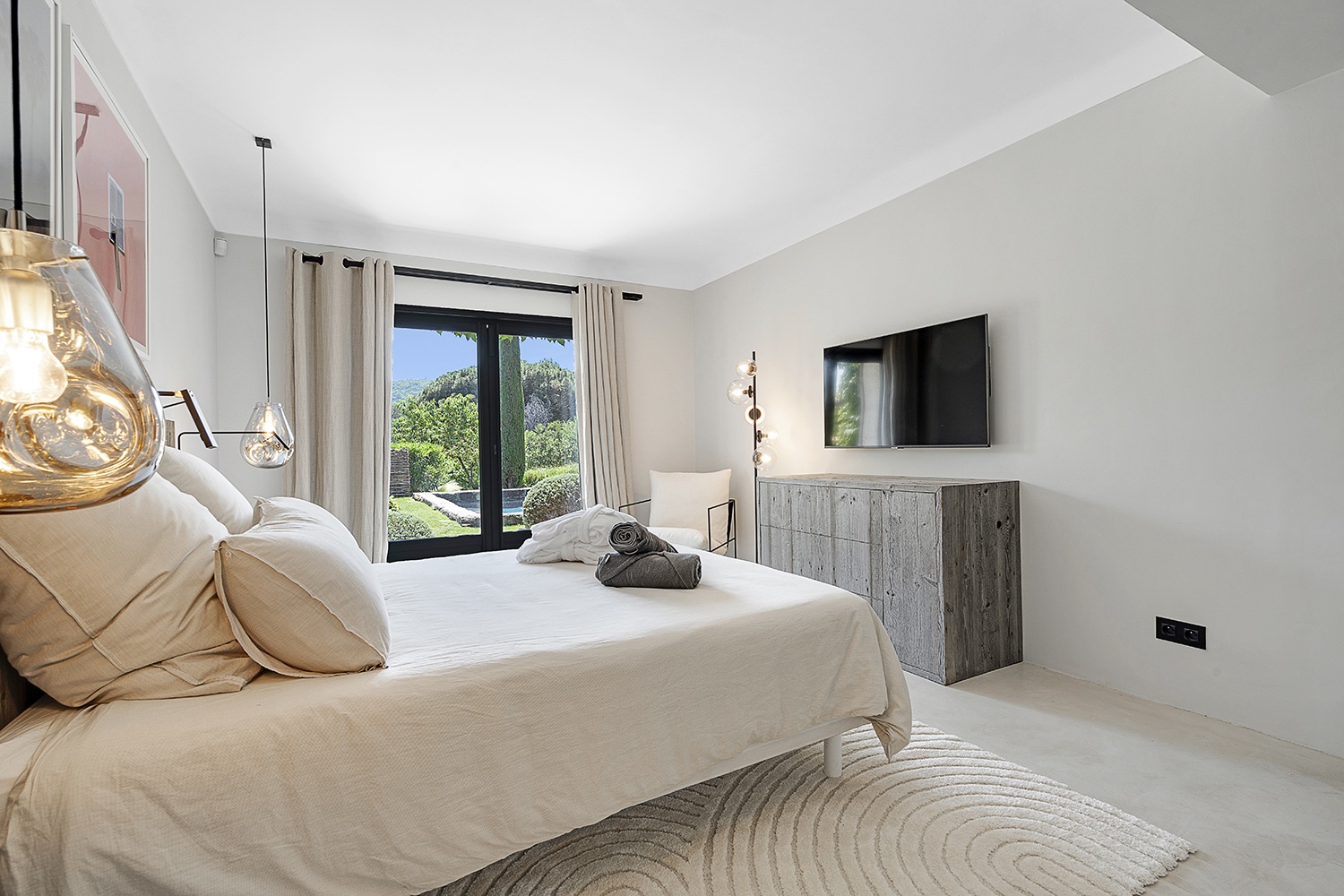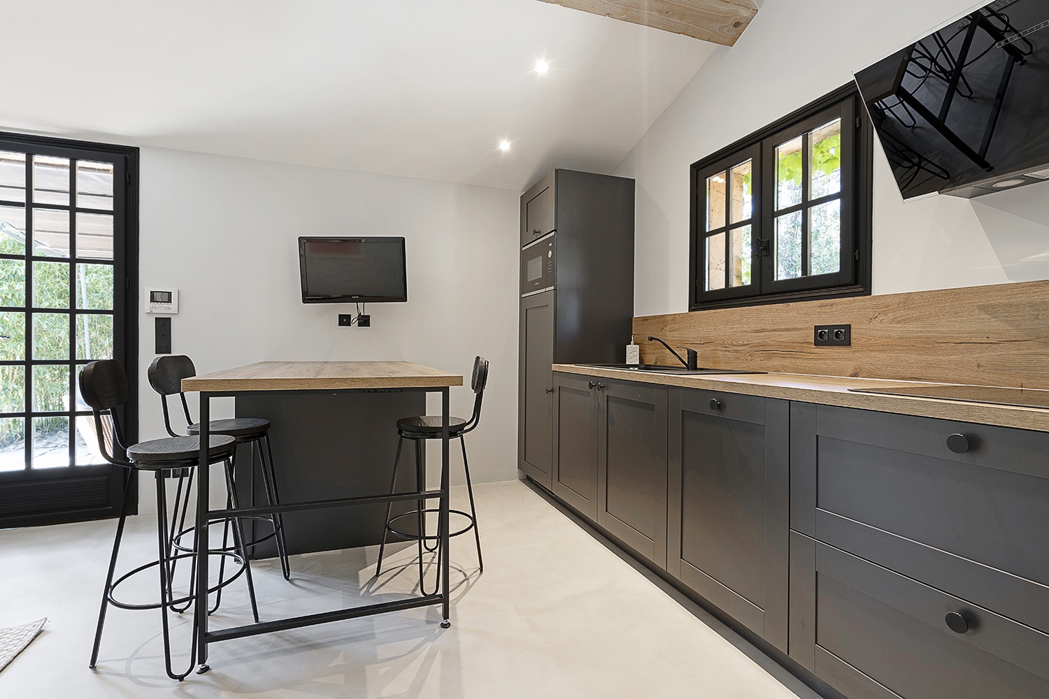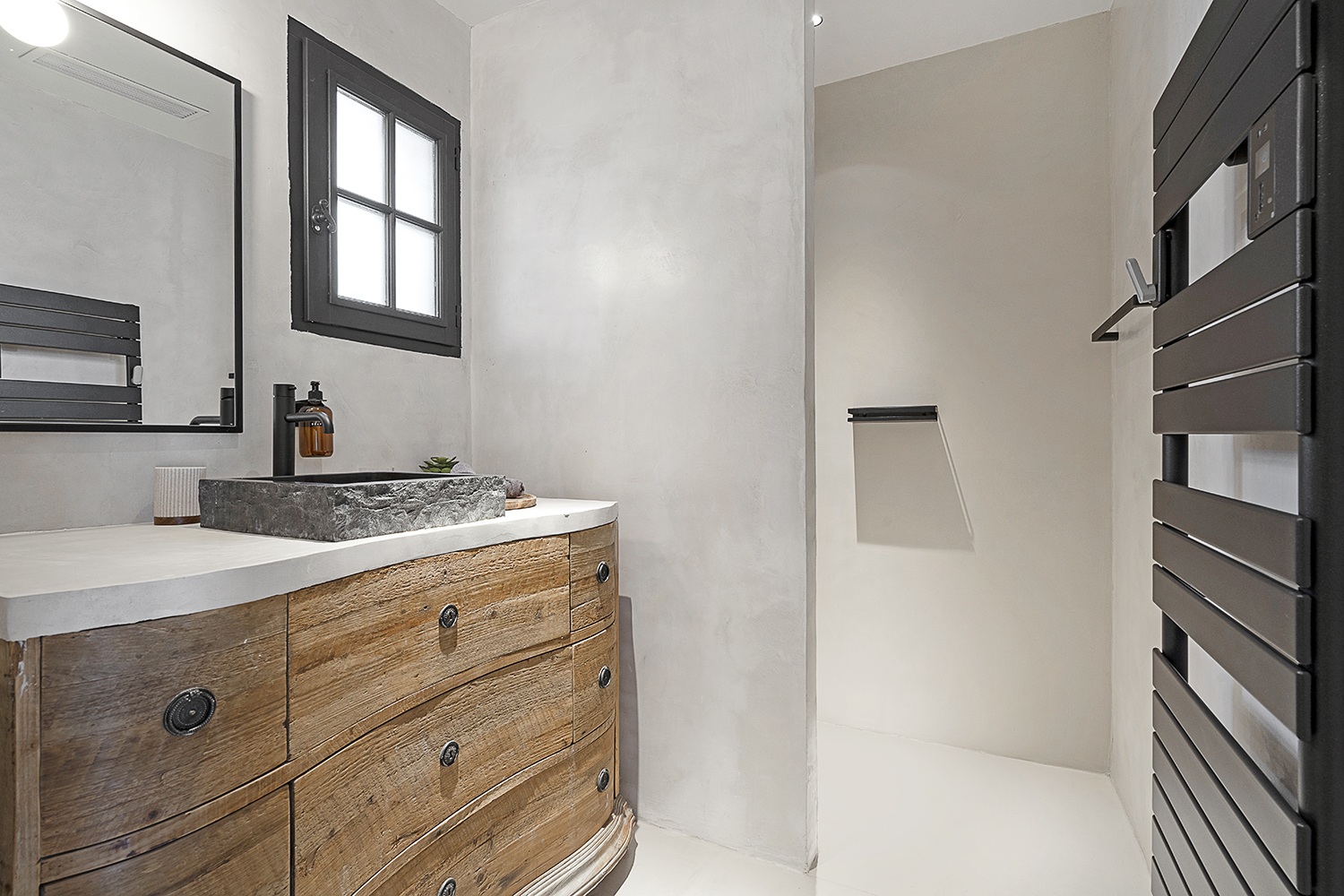 This villa is set in peaceful surroundings where birdsong reigns supreme. Here, Virginia creeper, bougainvillea and jasmine lick the exterior walls, offering a gentle pace of life all year round. Outside, fun and sharing are always the order of the day. In the pool house, with its natural materials, the bar, table, lounge and two swings are set out in the shade of the canisses. The pool house is the focal point of the villa, contributing to the pleasure of days spent around the heated swimming pool and extending the evenings in a warm atmosphere.