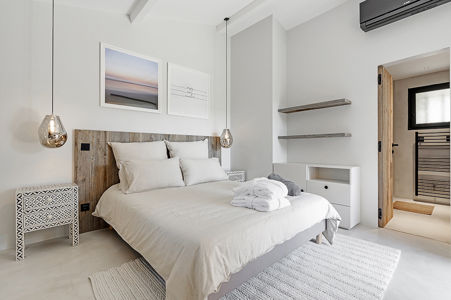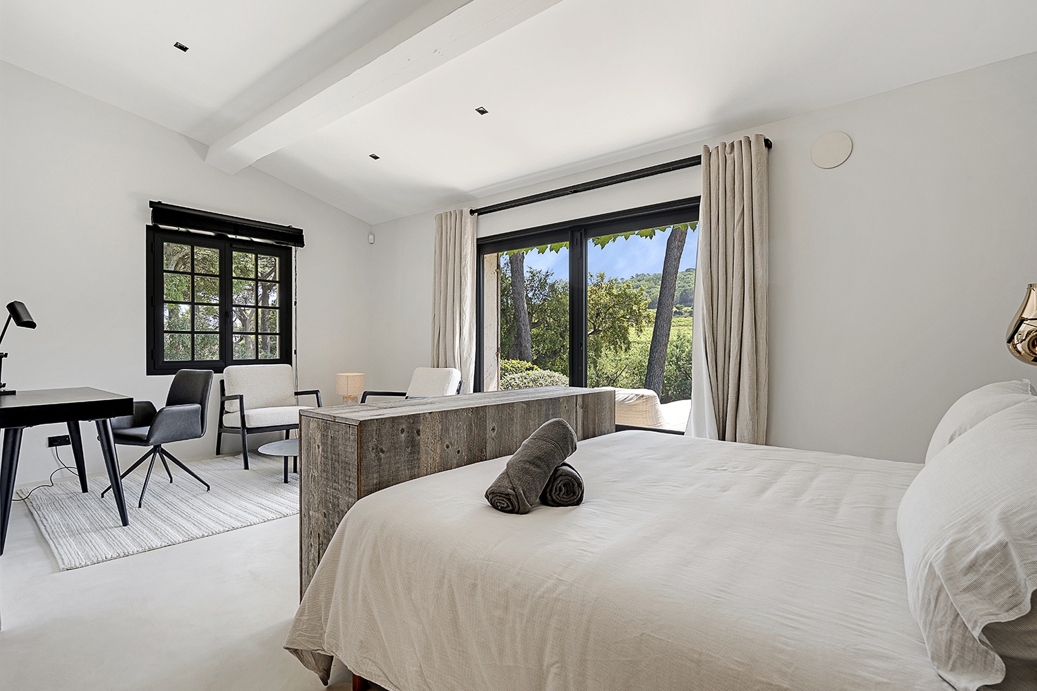 Inside, wood is omnipresent, lending a cozy ambience to every room. The rooms are bathed in light. Five en suite bedrooms are complemented by an independent apartment. An ideal configuration for a stay with friends or family. The living room and bedrooms are spacious and decorated in a contemporary, uncluttered style.